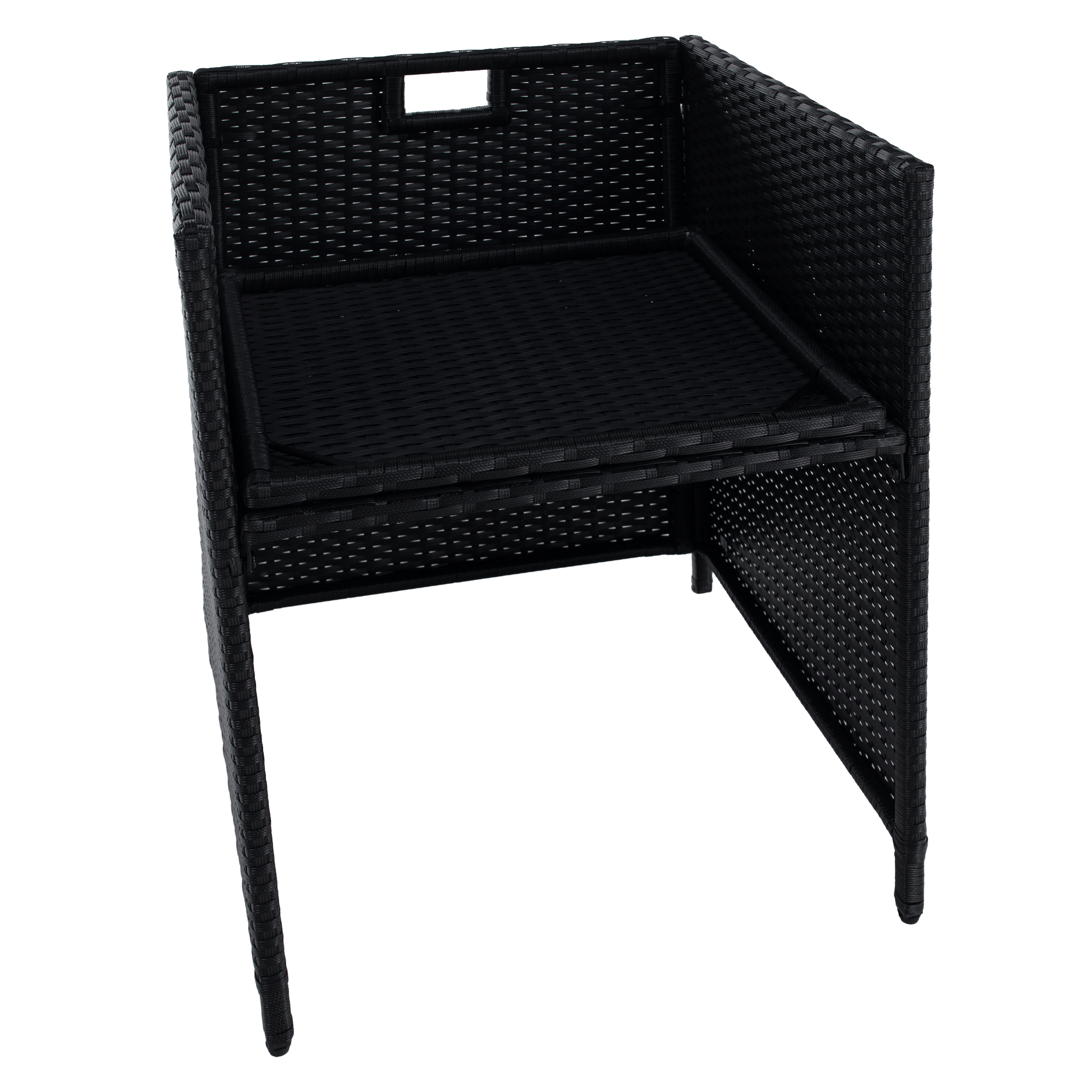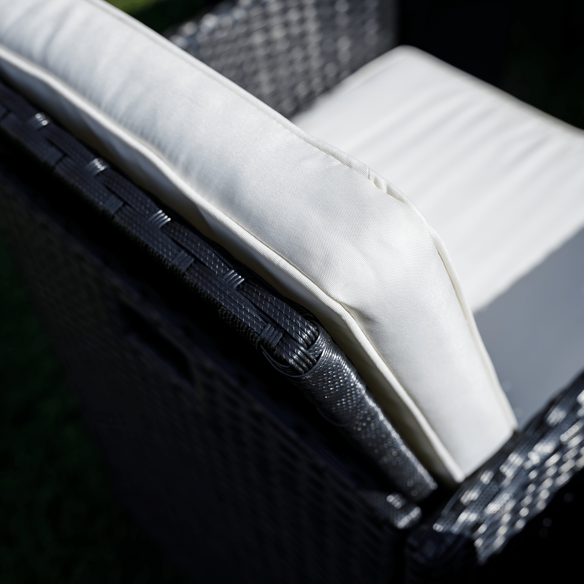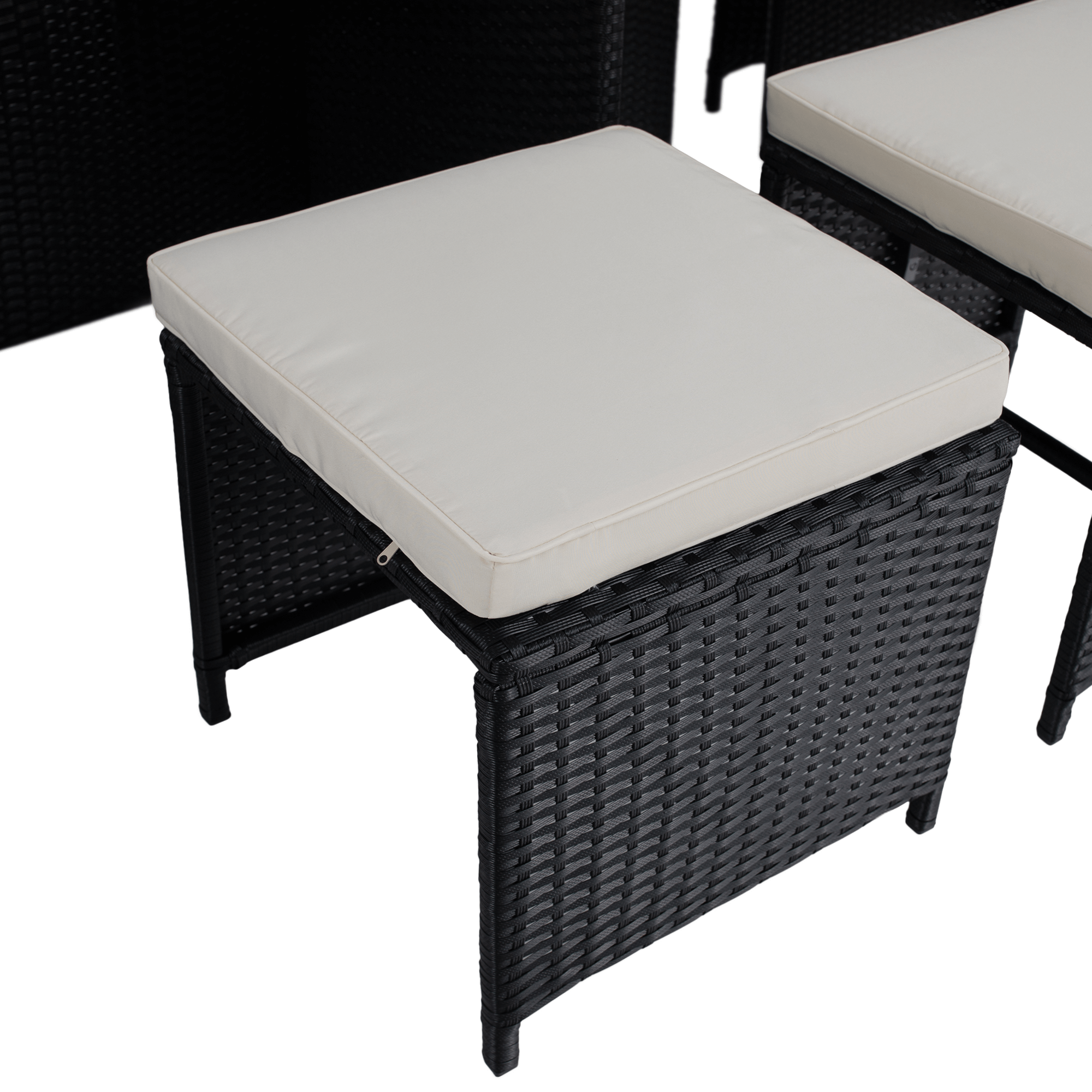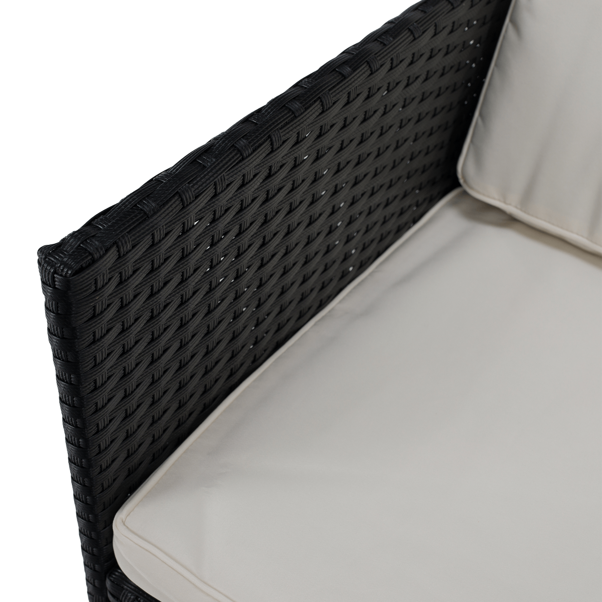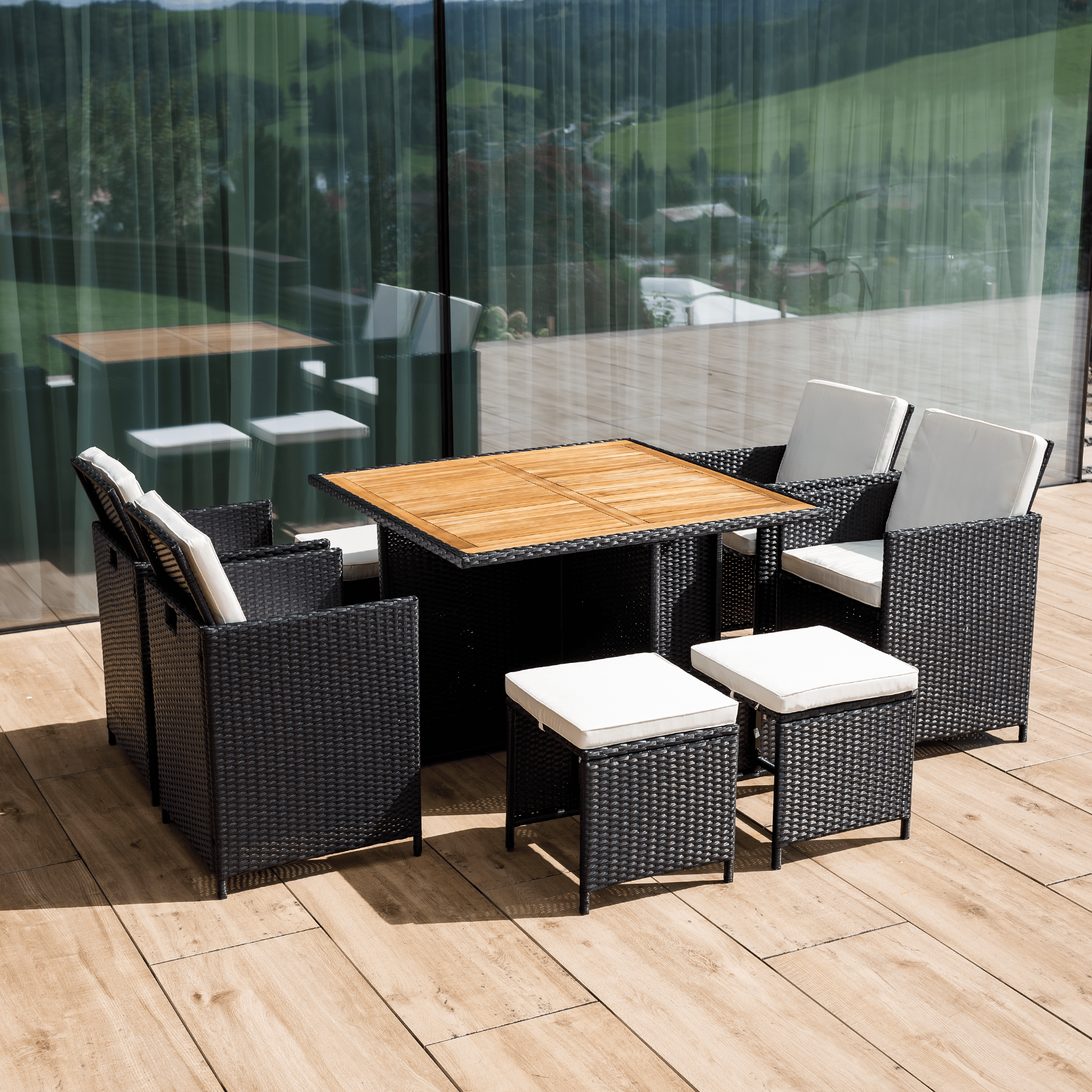Záhradný ratanový set, akáciové drevo, čierna/krémová/prírodná, MELFORD