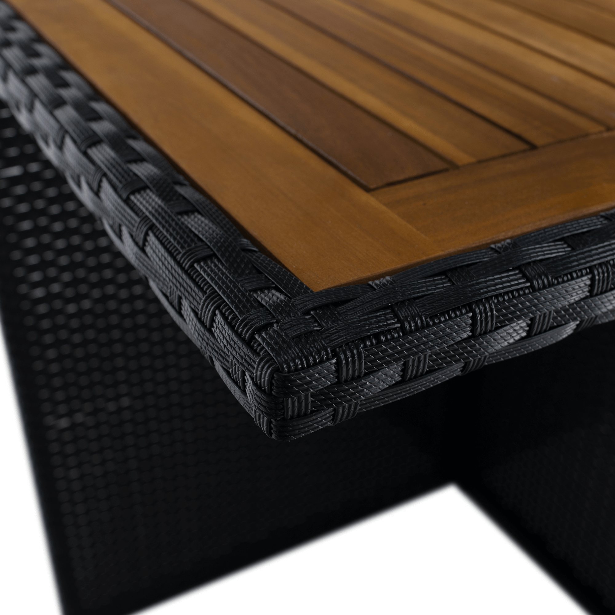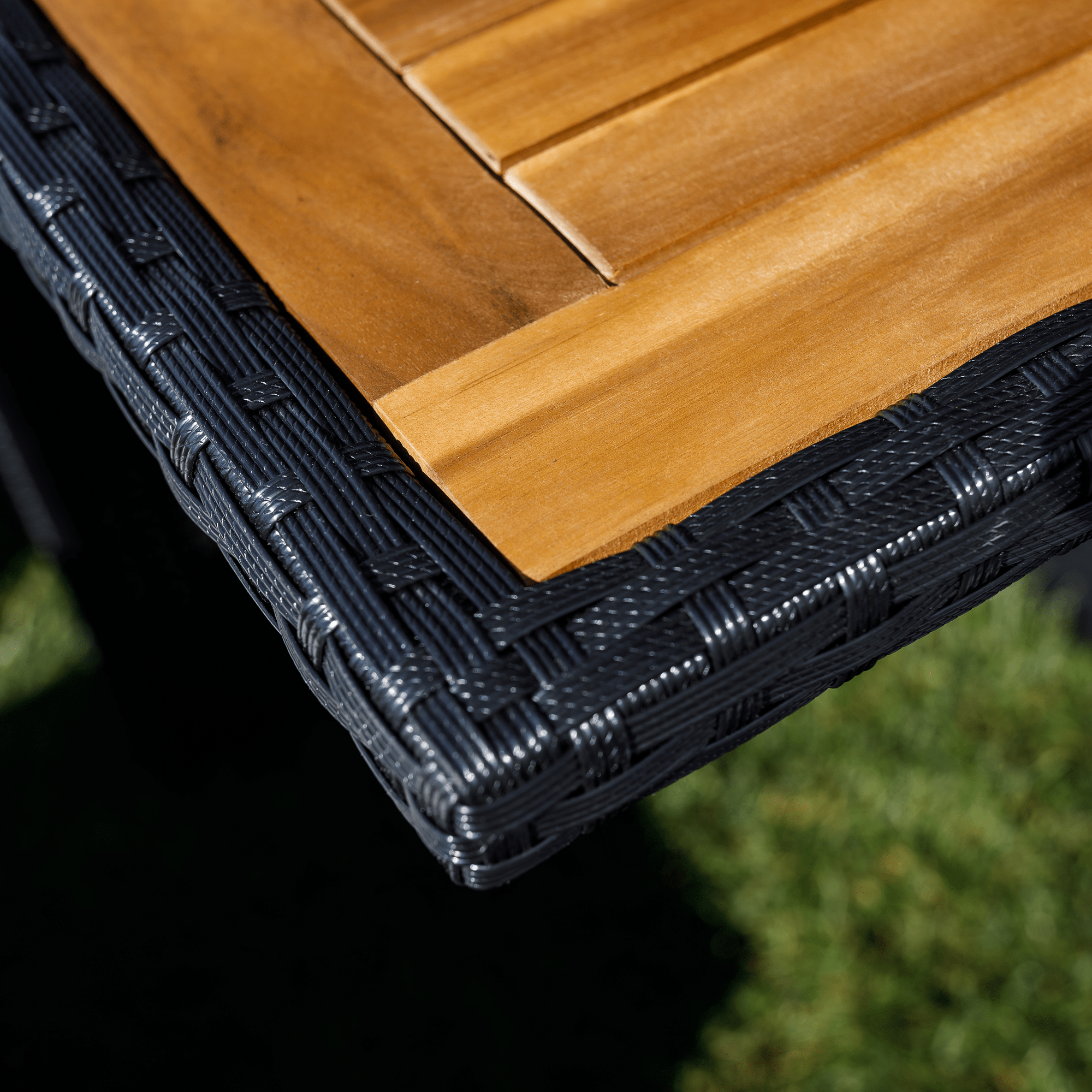 Materiál: technický ratan/oceľ/látka/masívne akáciové drevo