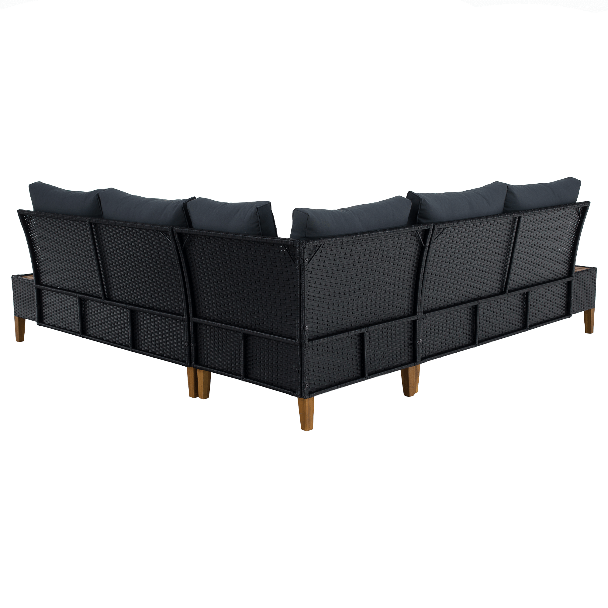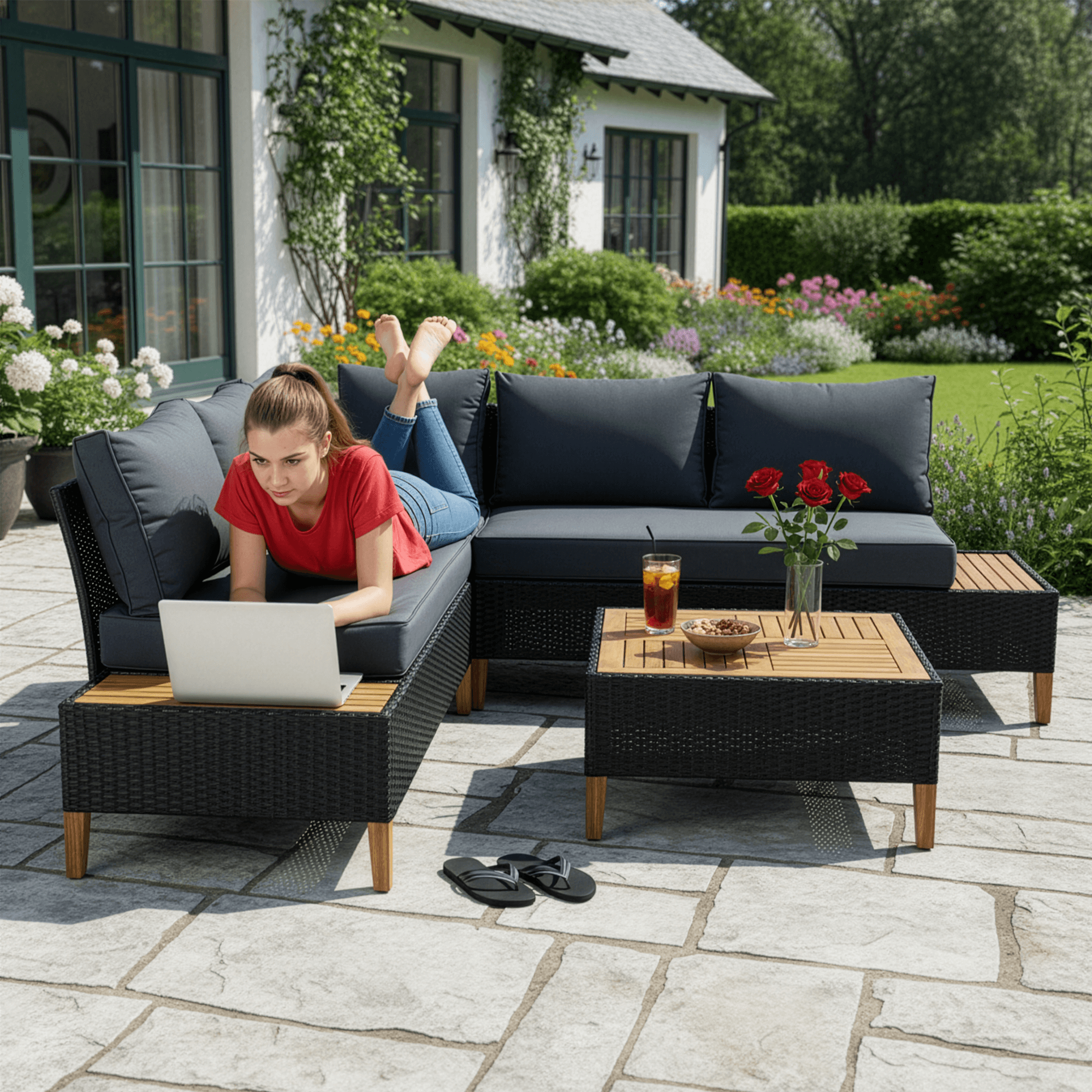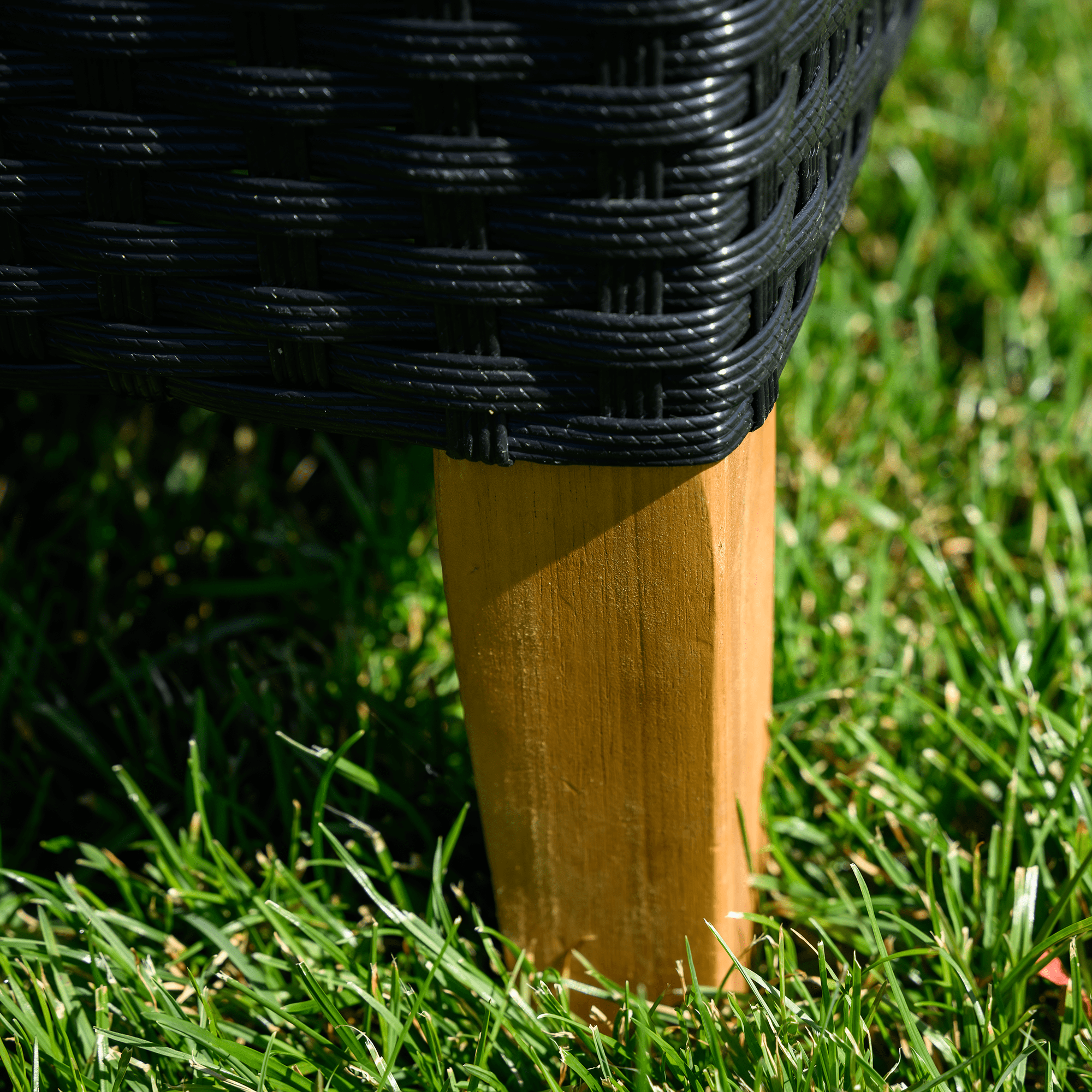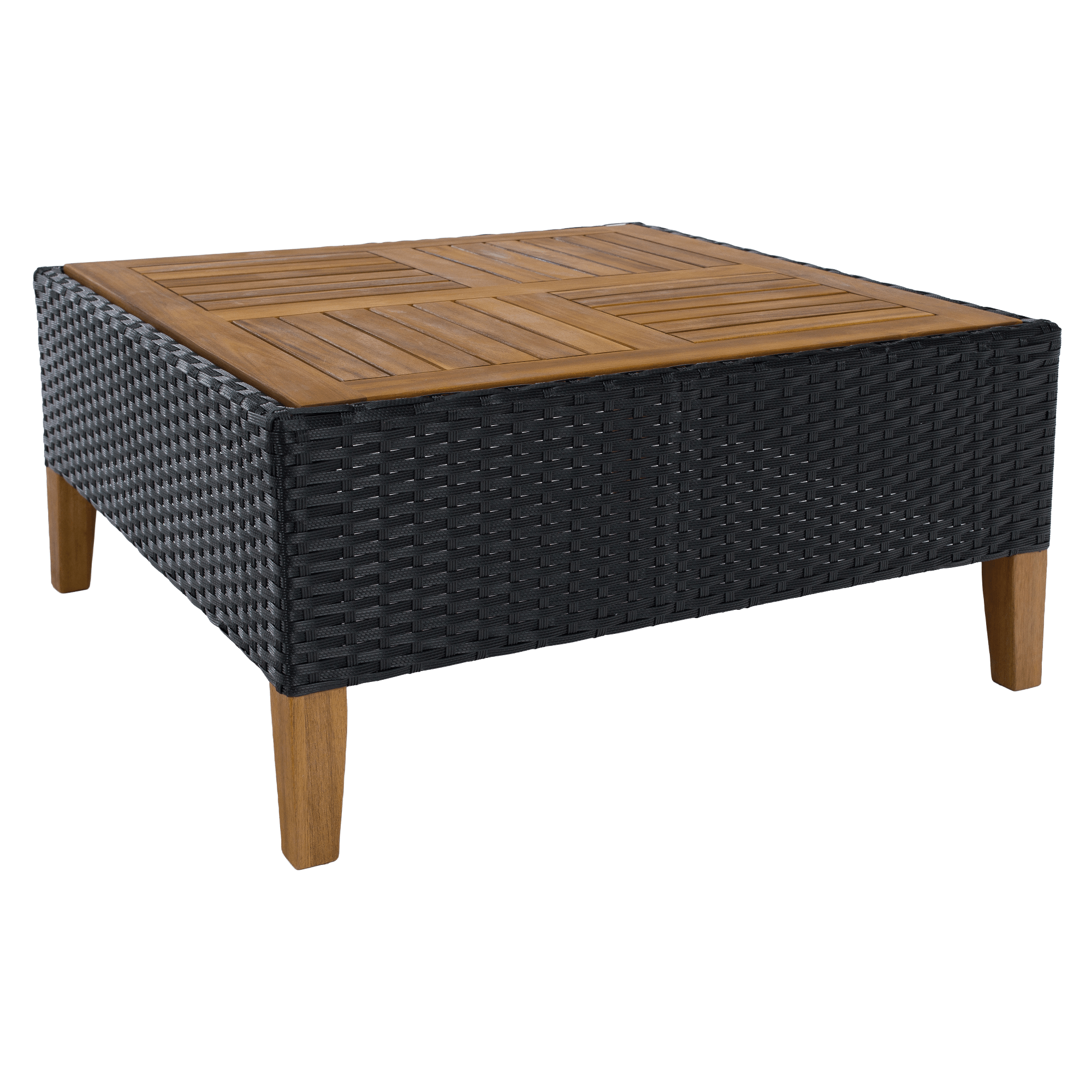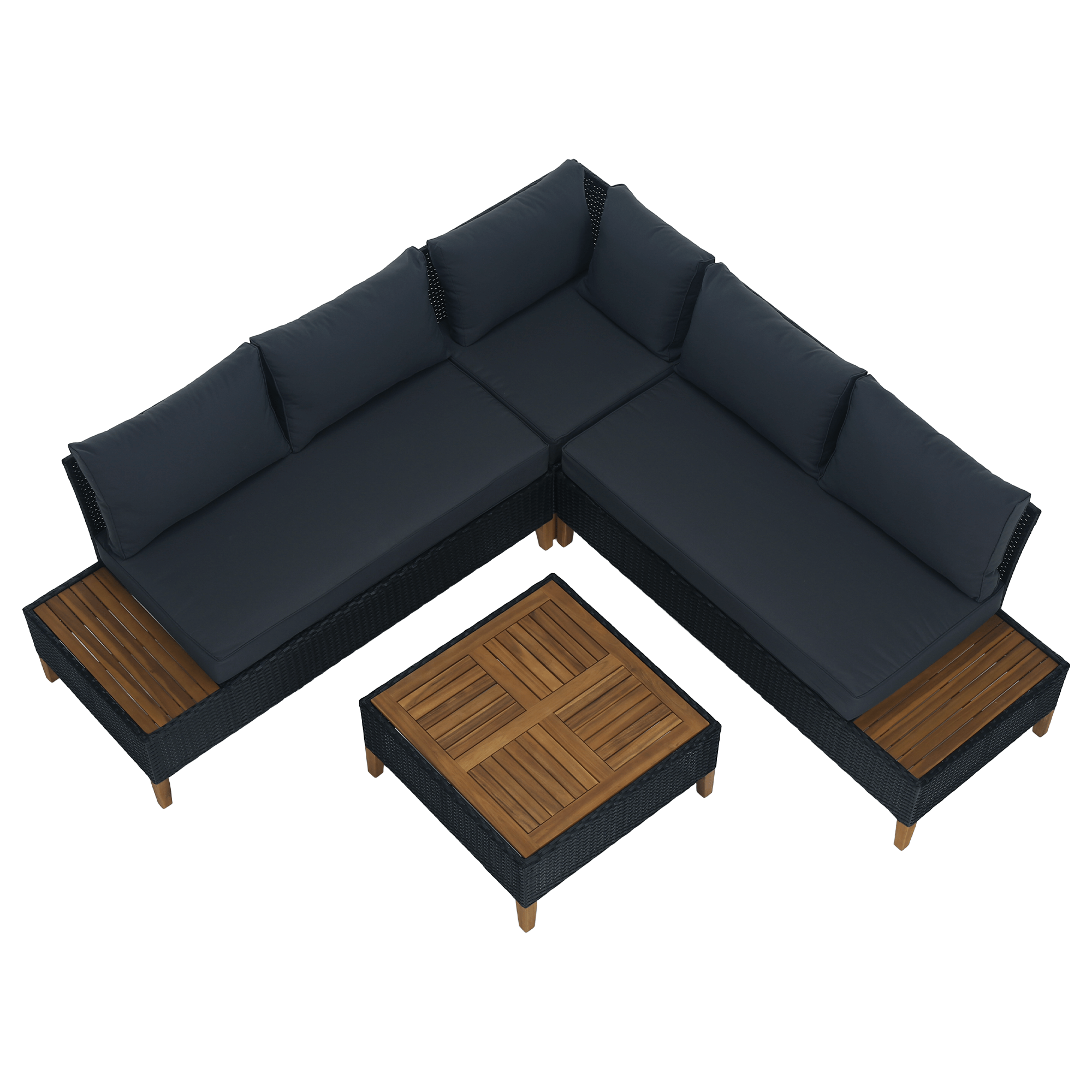 Záhradný ratanový set, akáciové drevo, čierna/sivá/prírodná, MALKOM