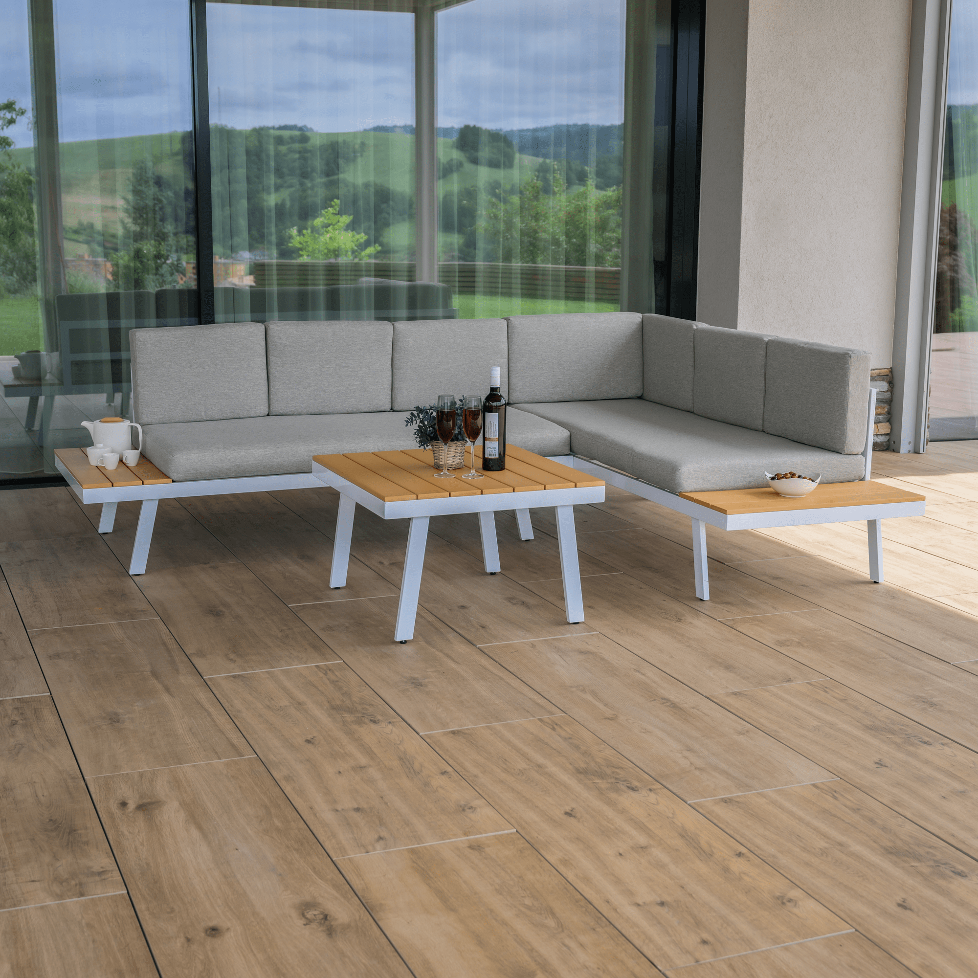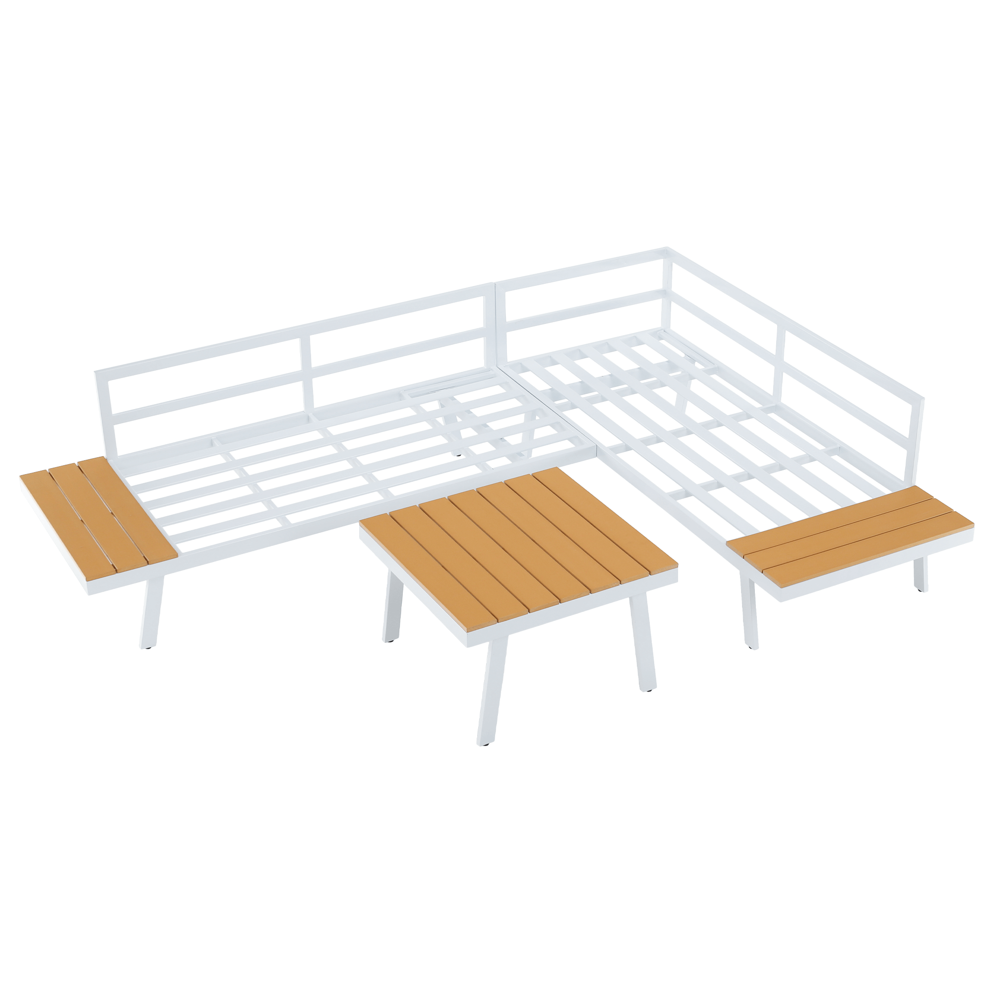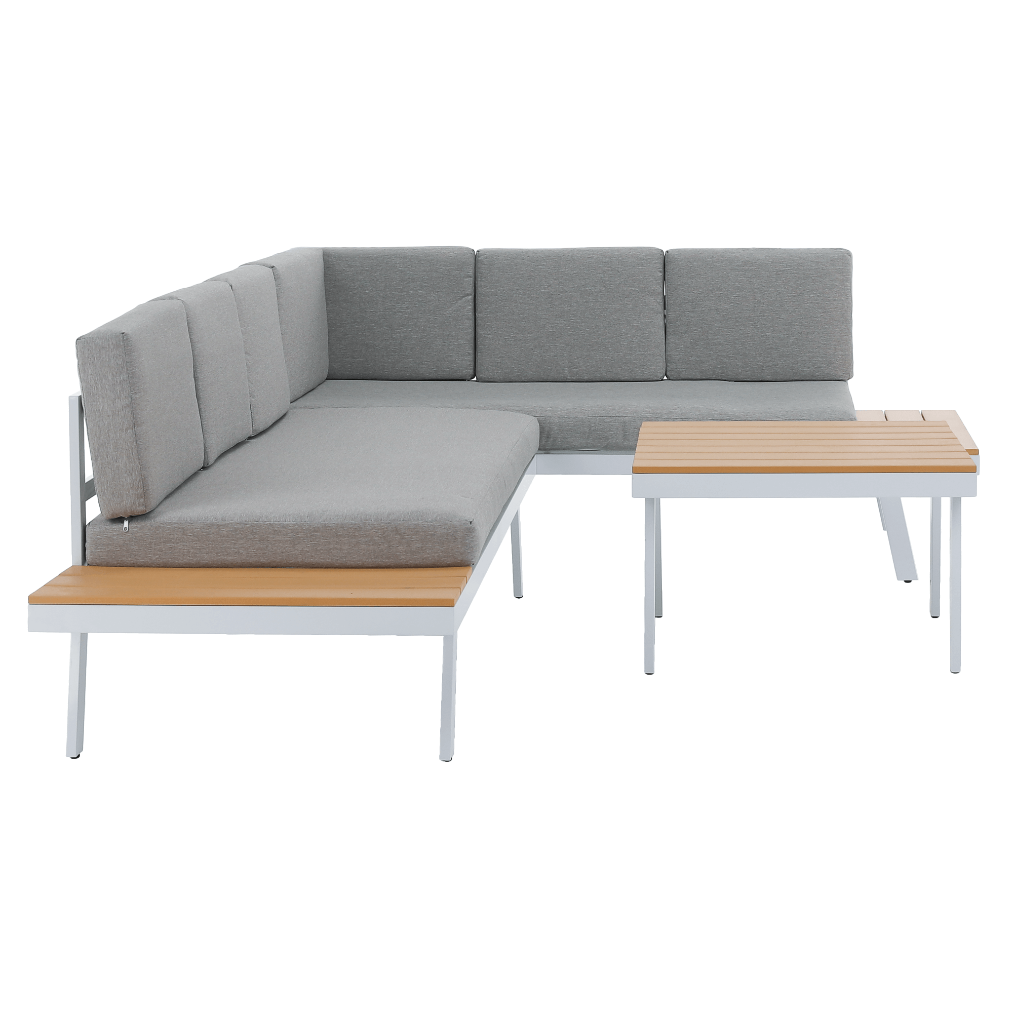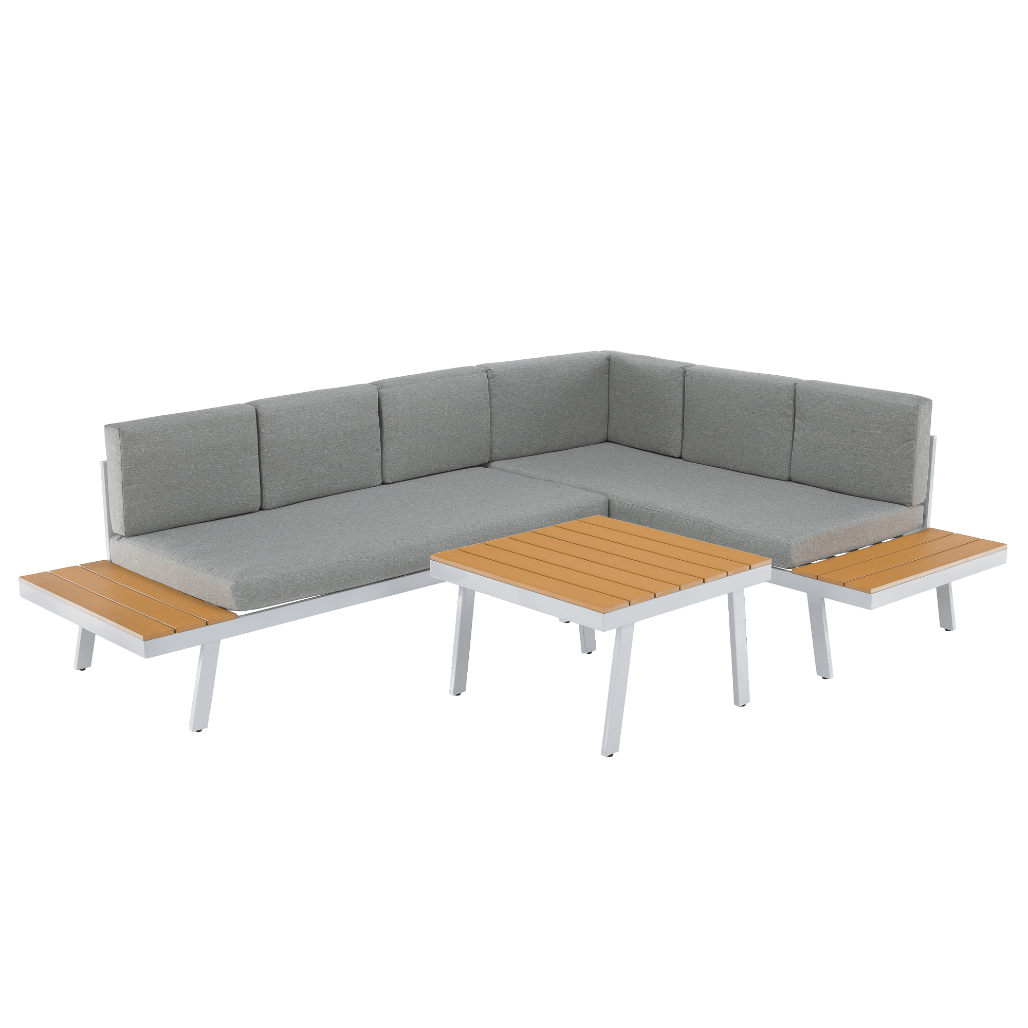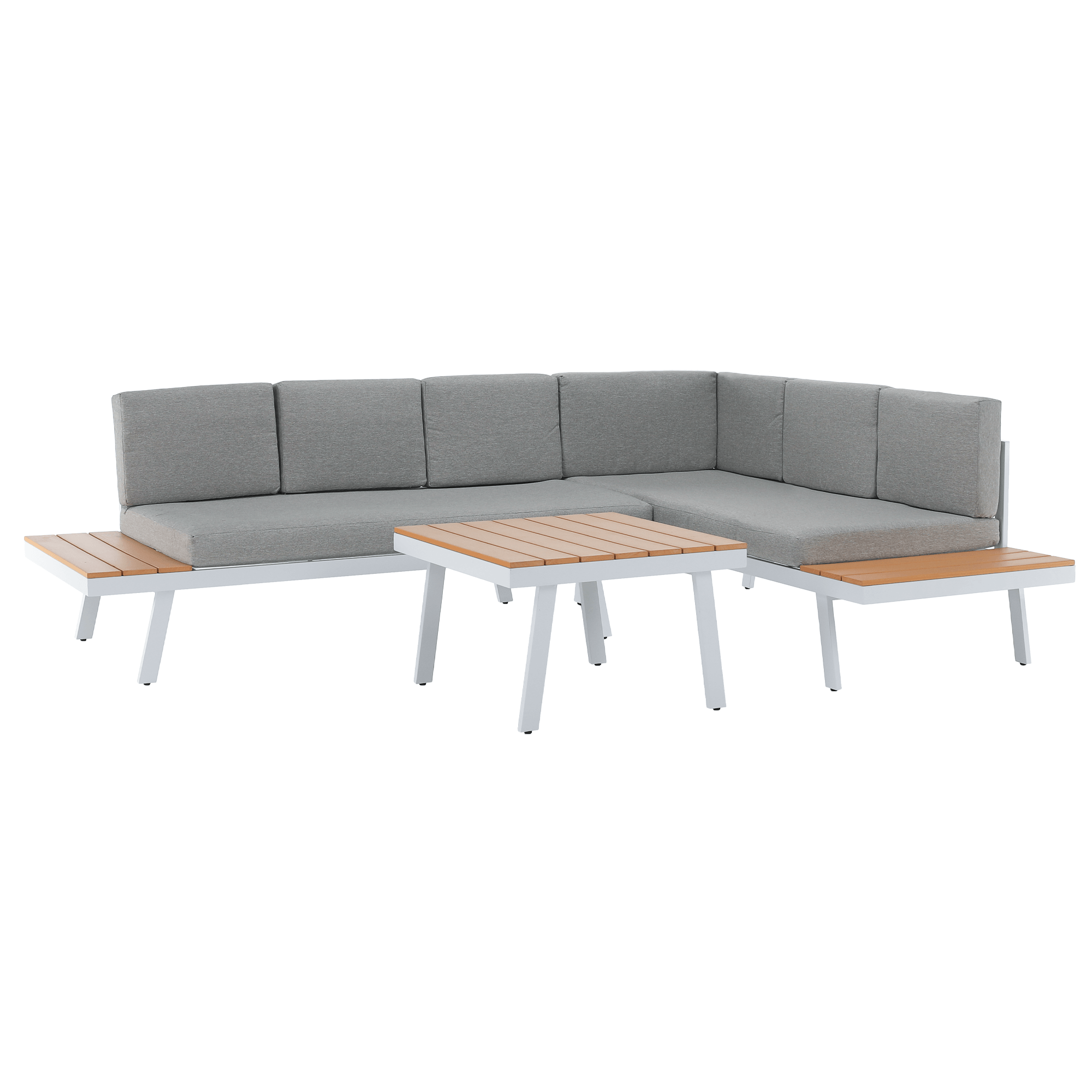 Záhradný set, biela oceľ/dub/svetlosivá, PELOR