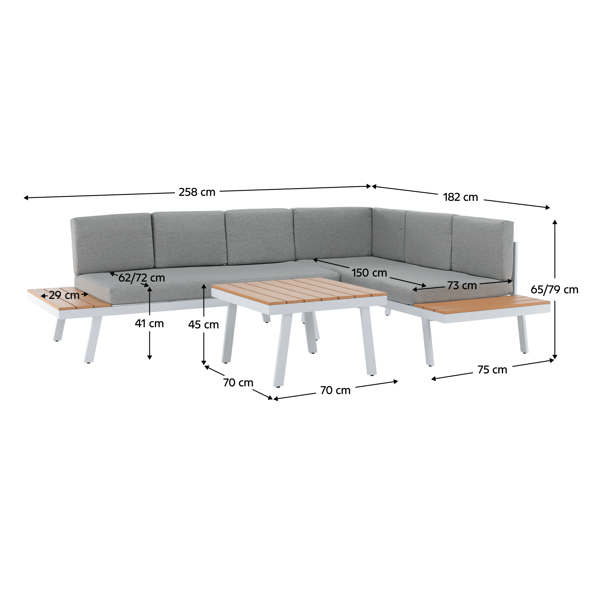 Rozmery roh (ŠxHxV): 258/182x75x65/79 cm