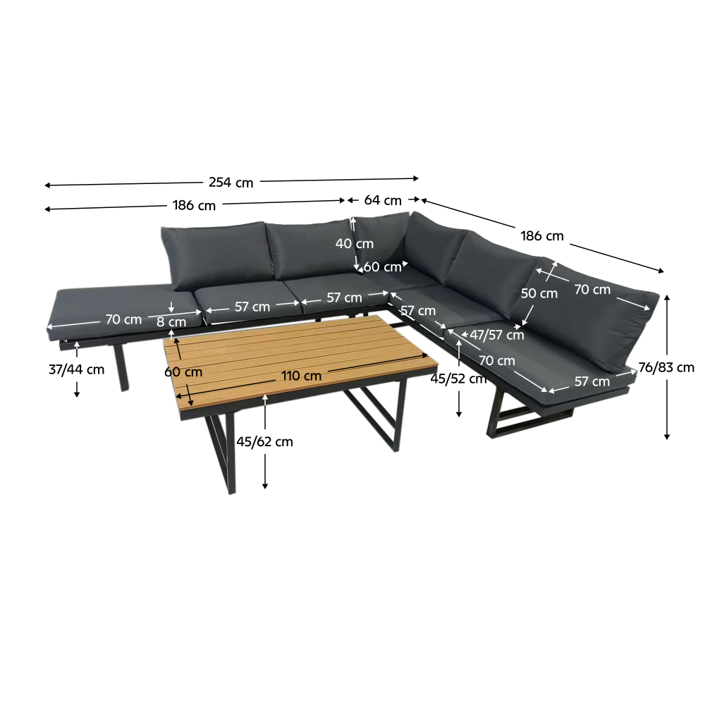Rozmery pohovka (ŠxHxV): 254x186x76-83 cm