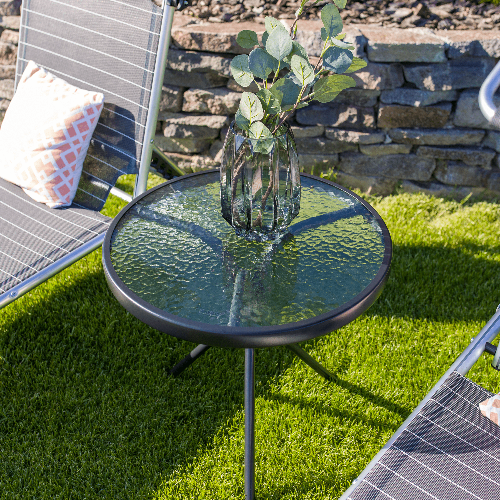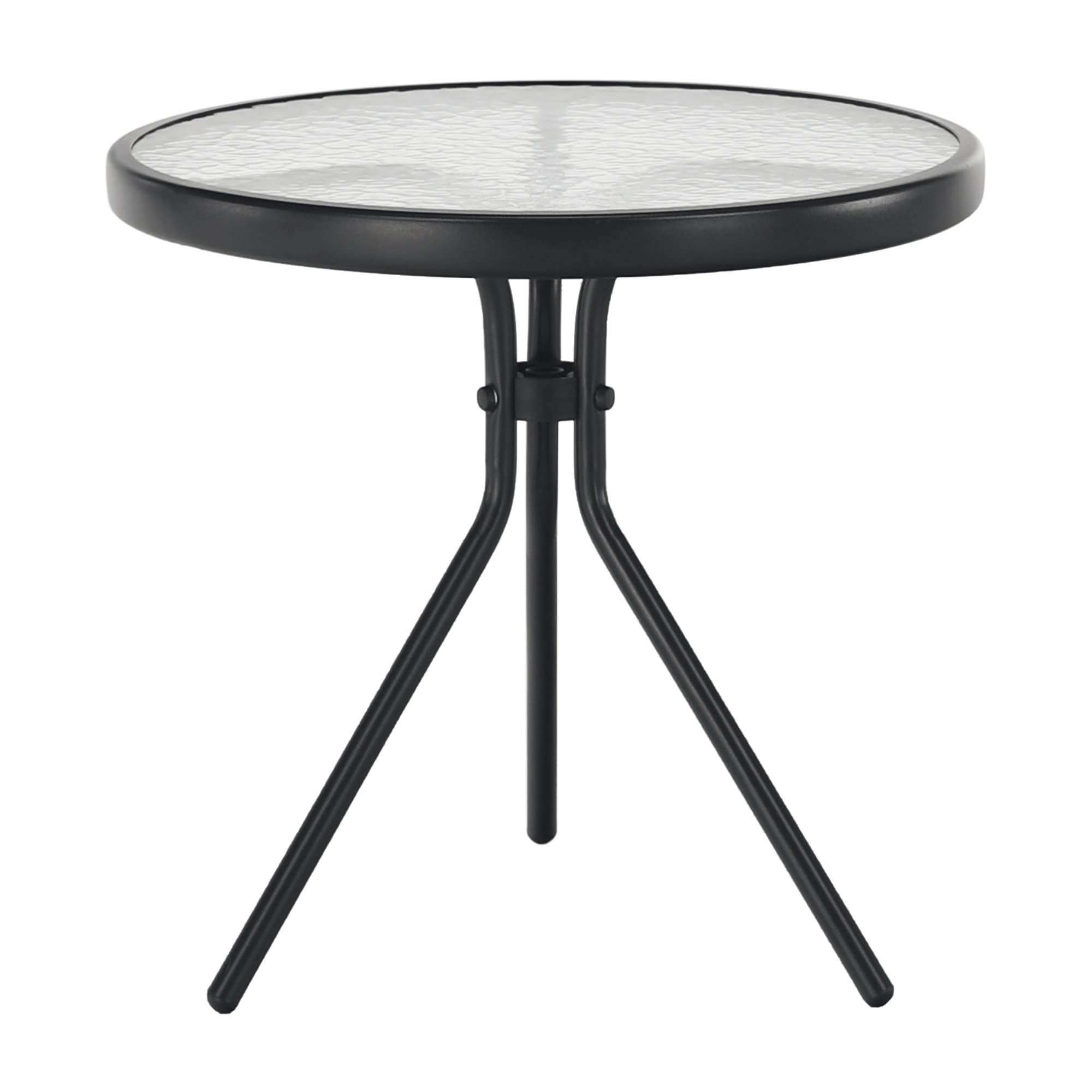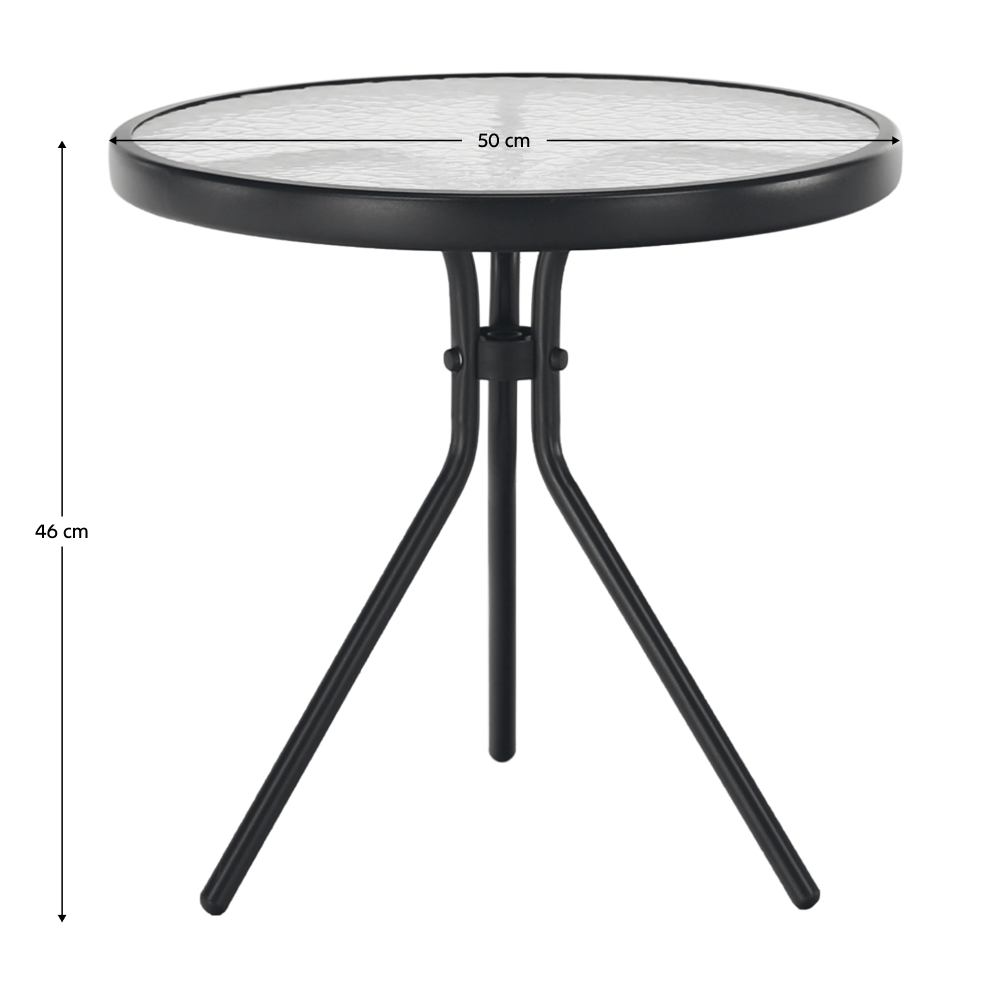 Záhradný príručný stolík, čierna oceľ/tvrdené číre sklo, HABIR