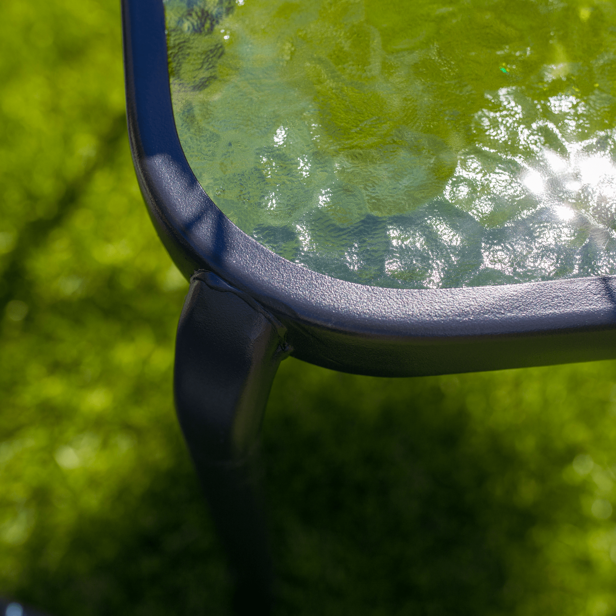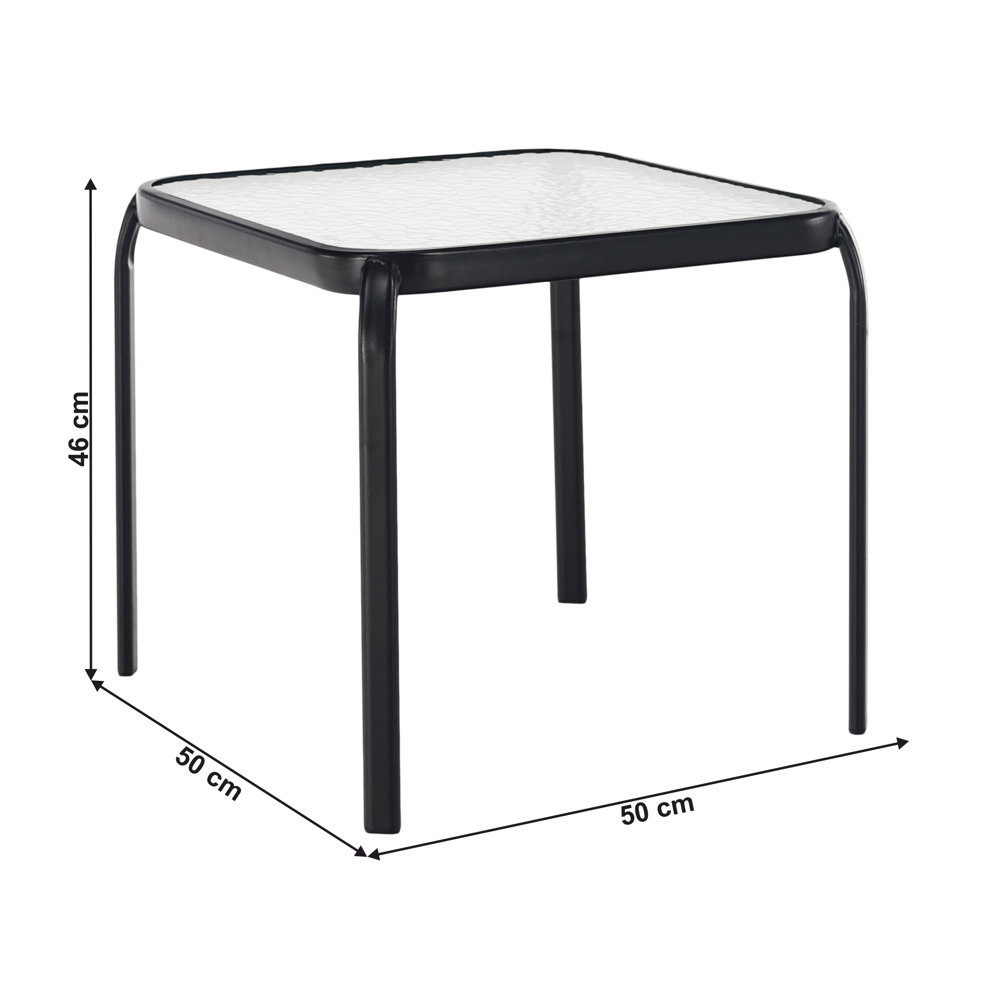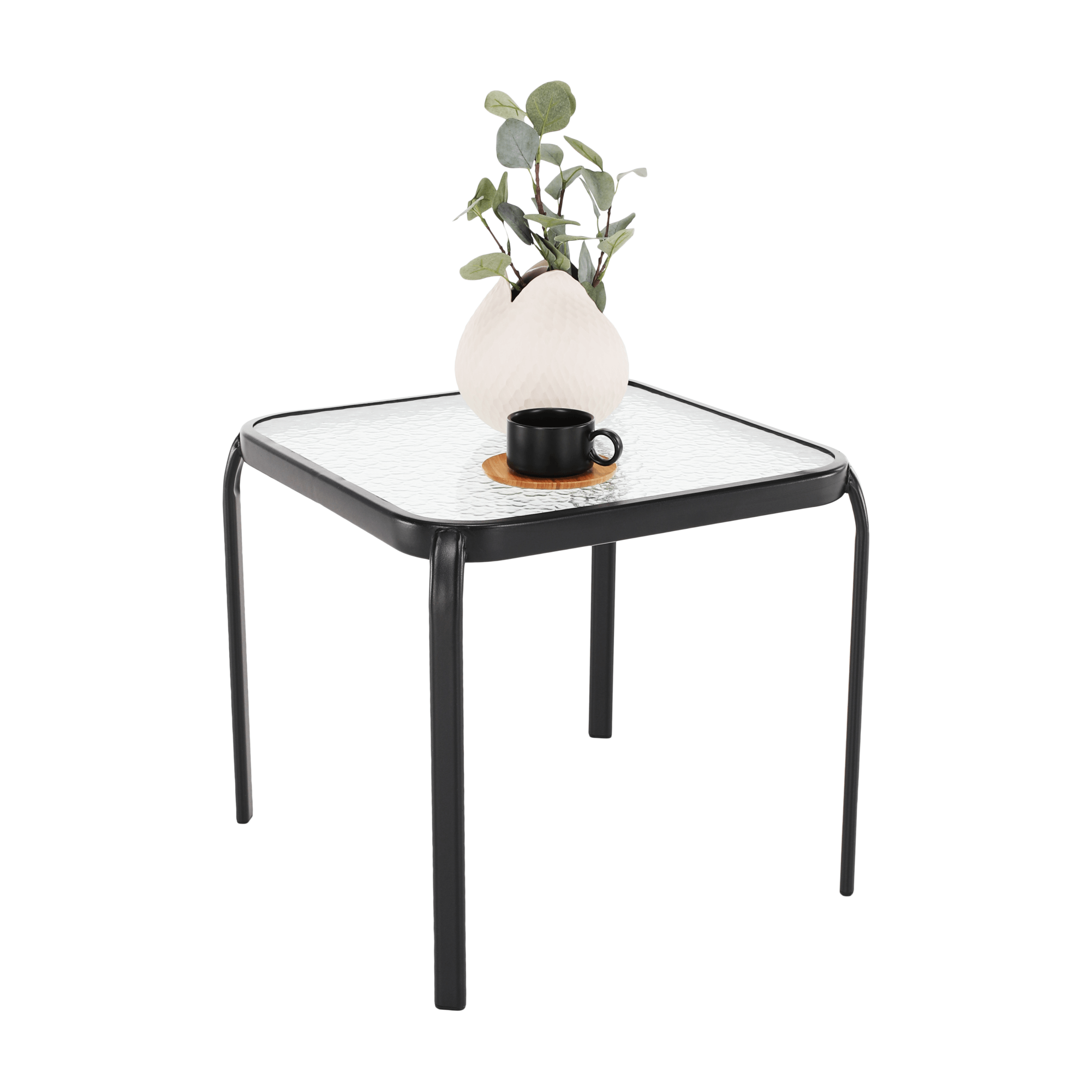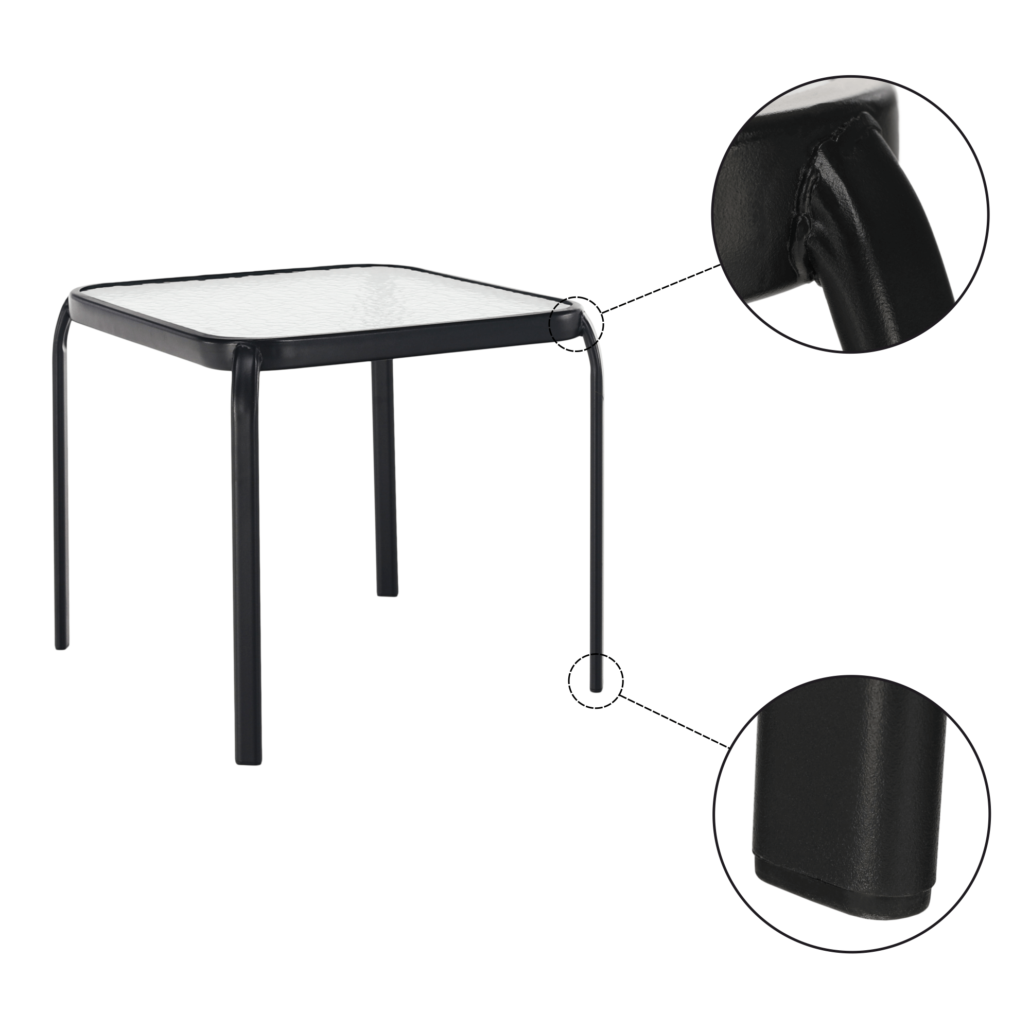 Záhradný príručný stolík, čiena oceľ/tvrdené sklo, RAMOL