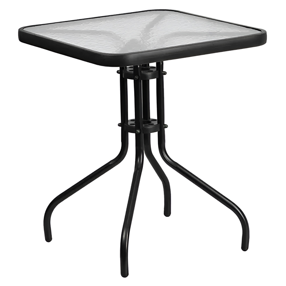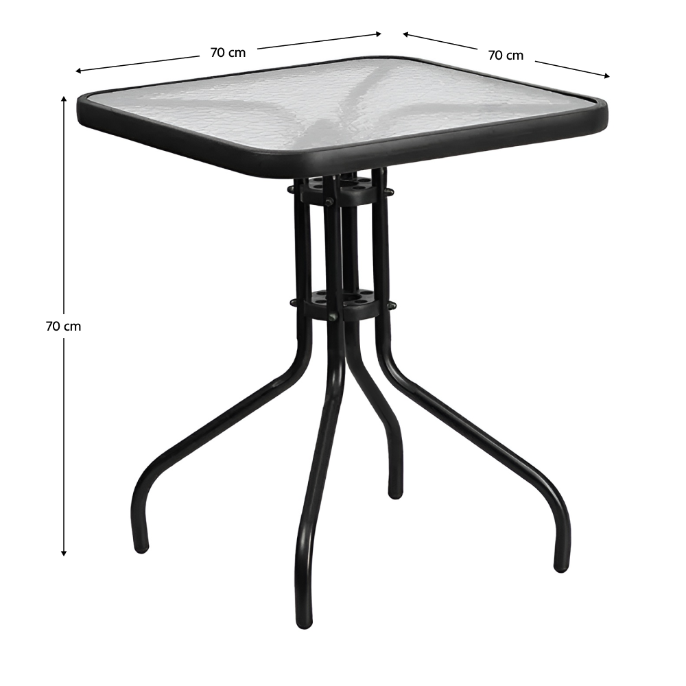 Záhradný stôl, čierna oceľ/tvrdené sklo, FRENY