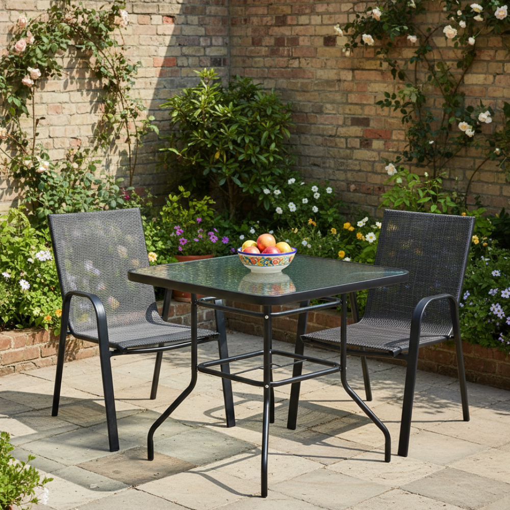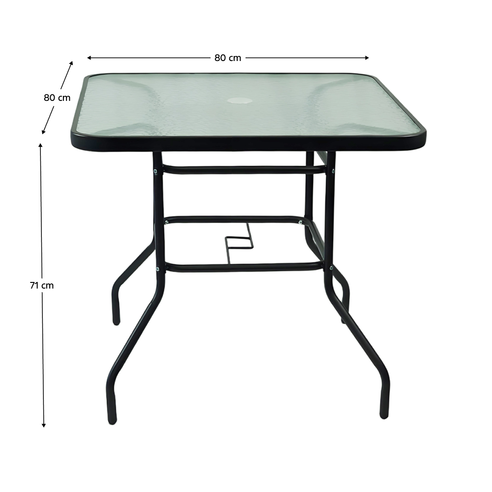 Jedálenský stôl, čierna oceľ/tvrdené sklo, DEMAT NEW TYP 2