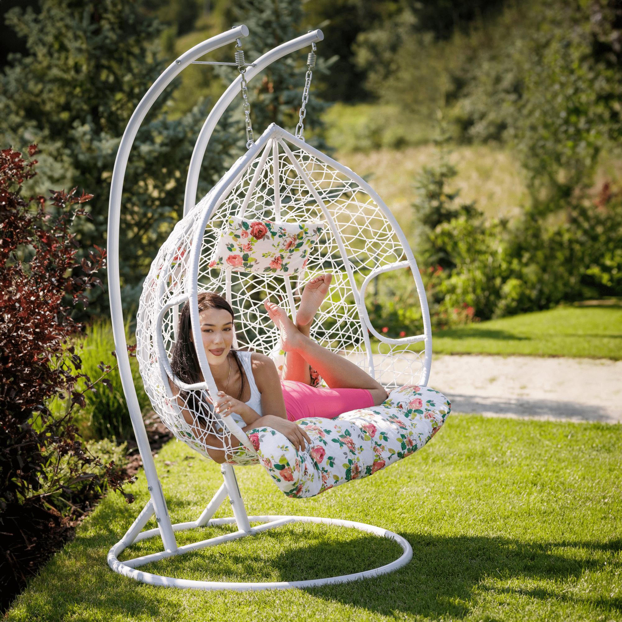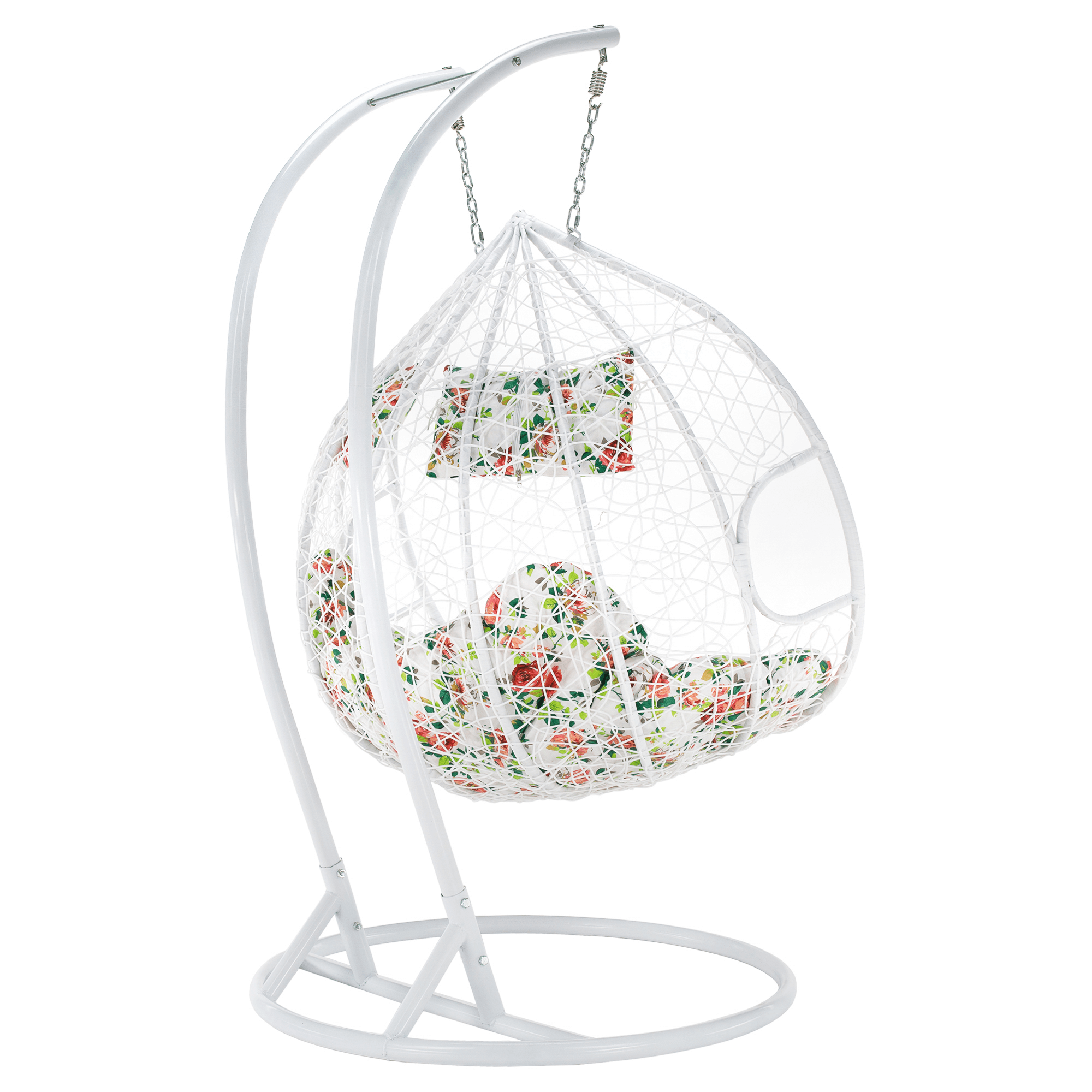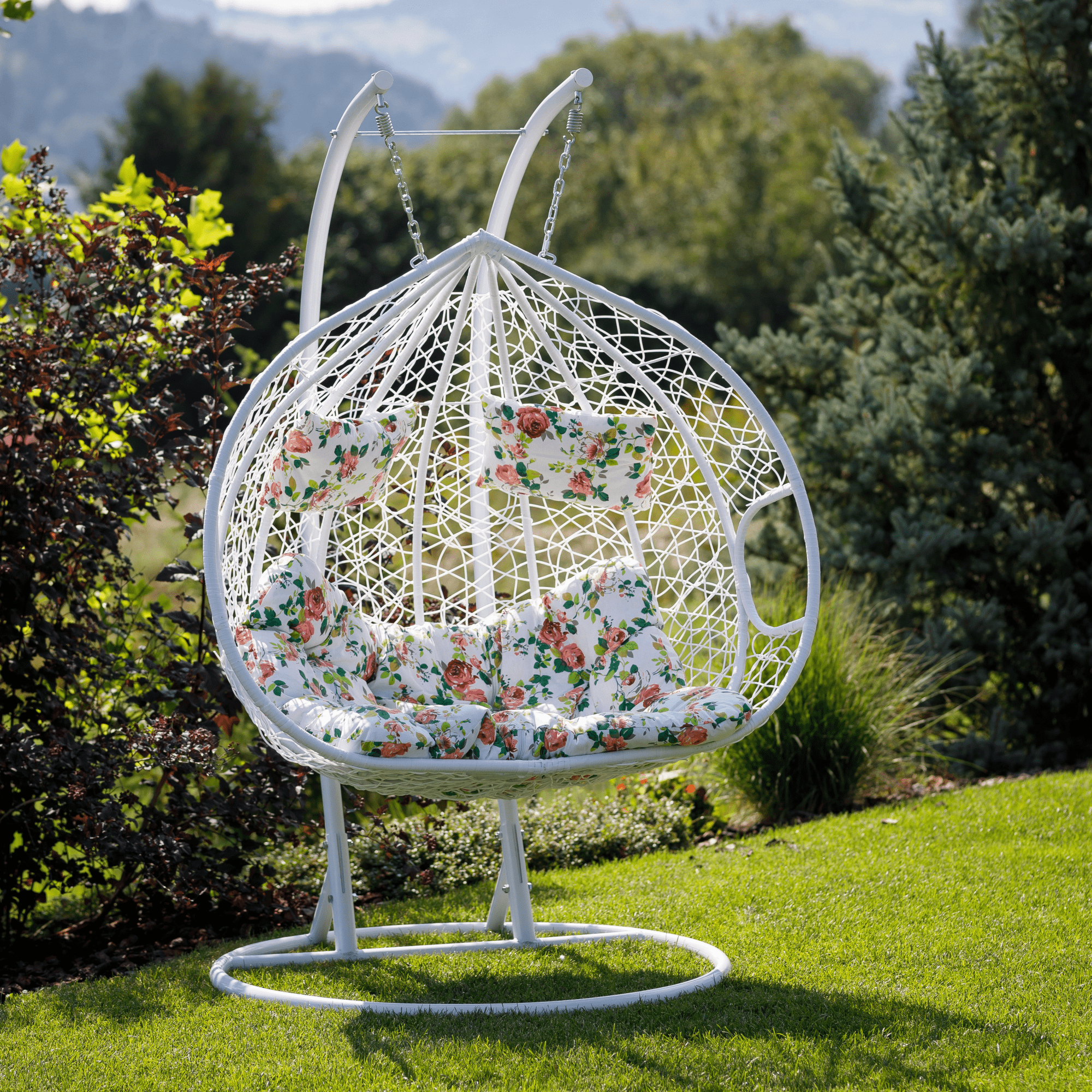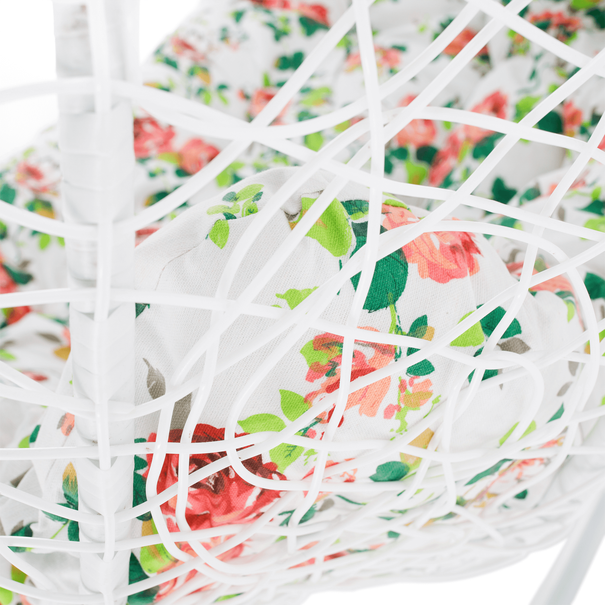 Závesné dvojkreslo, biela/vzor kvety, DALVEA 2 NEW
