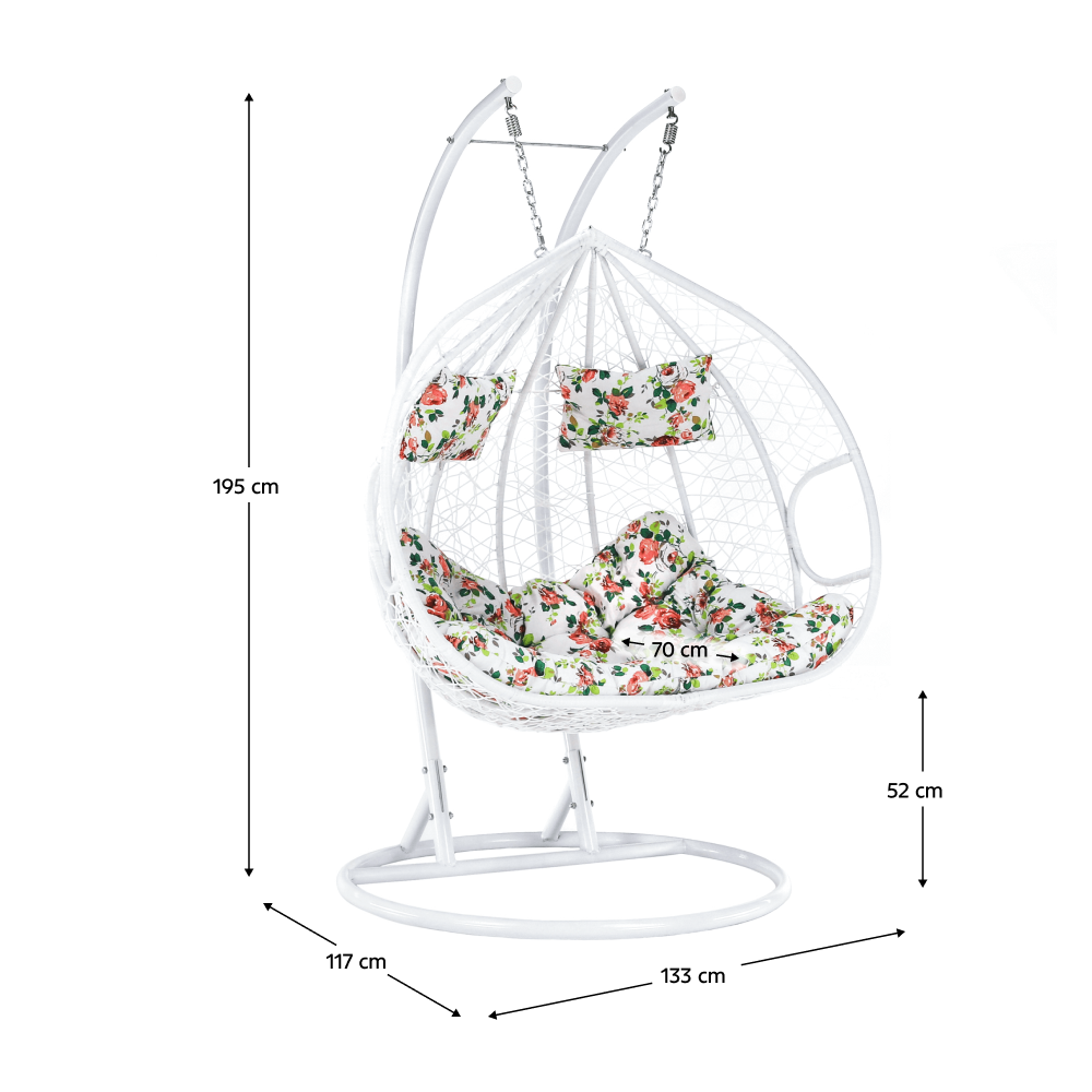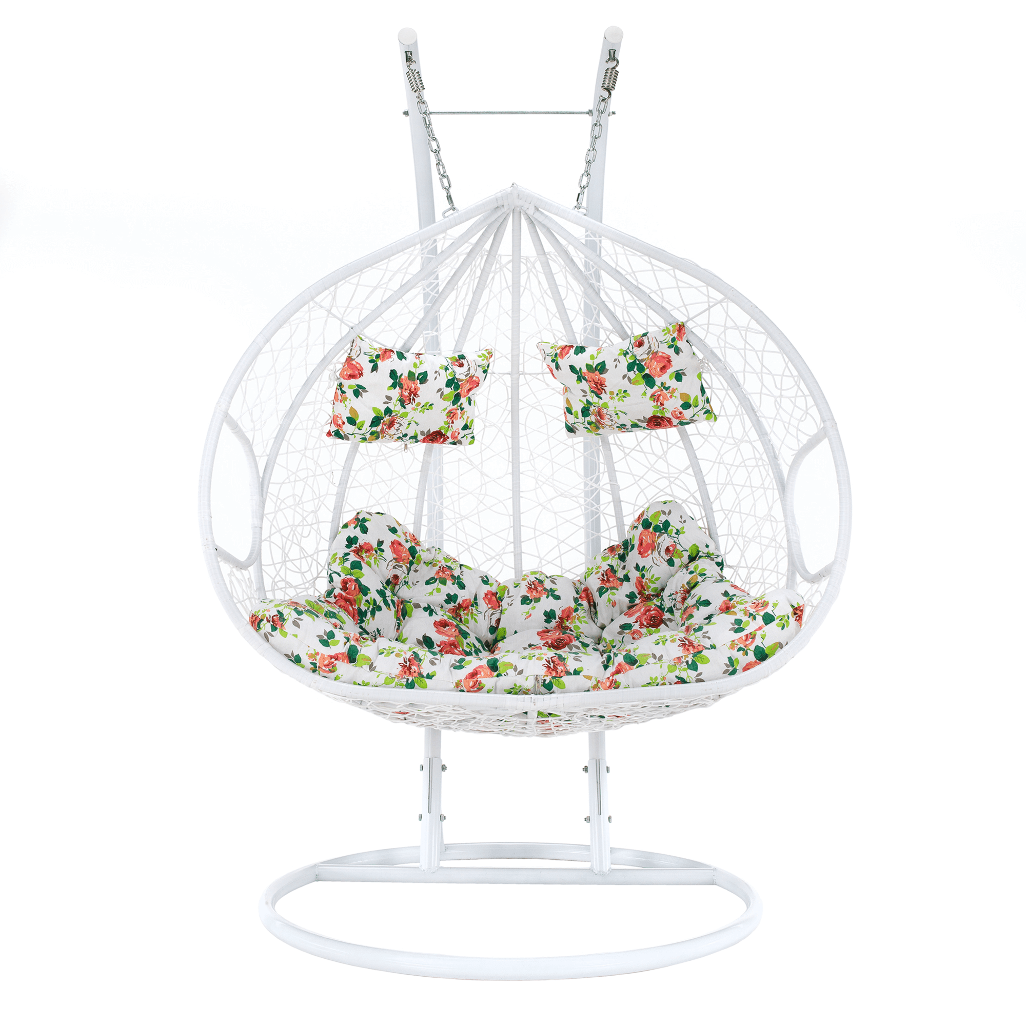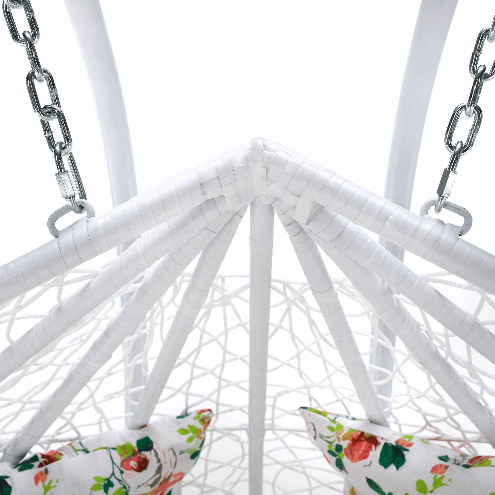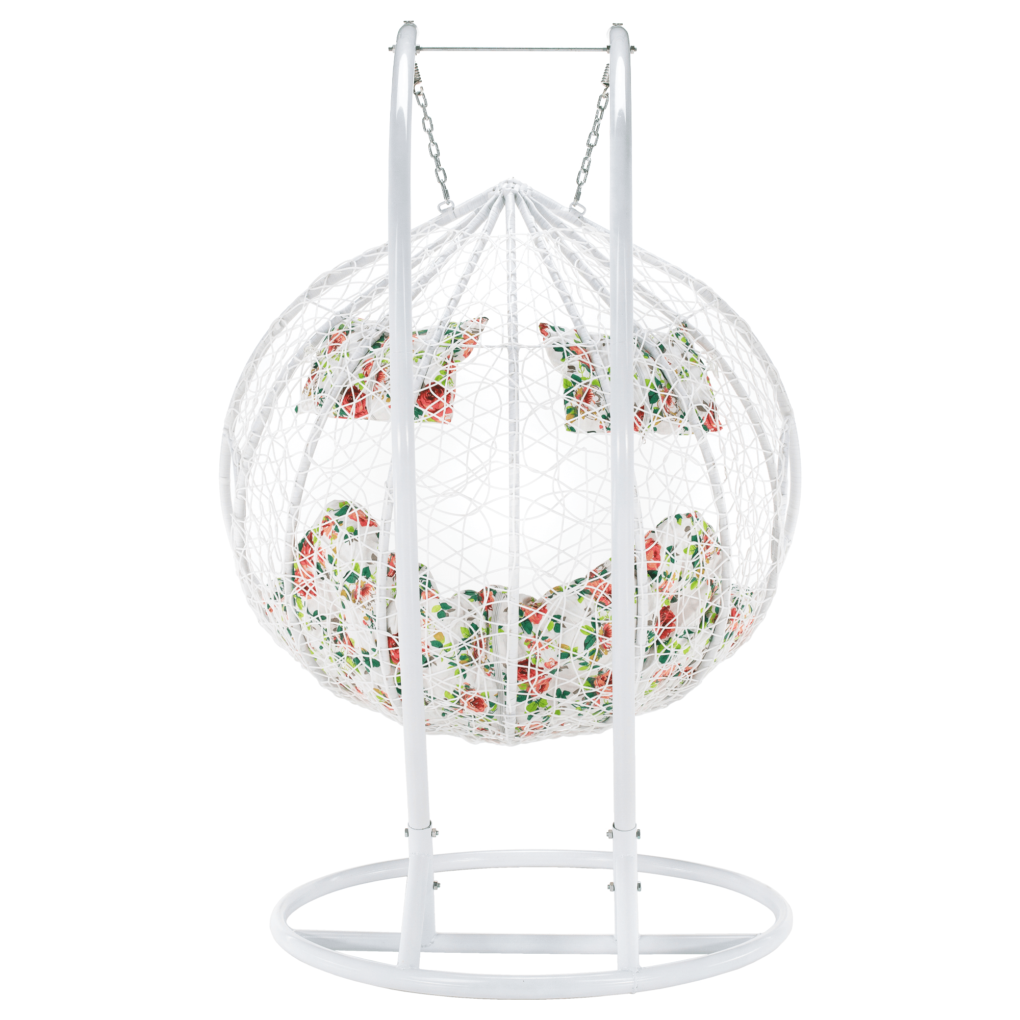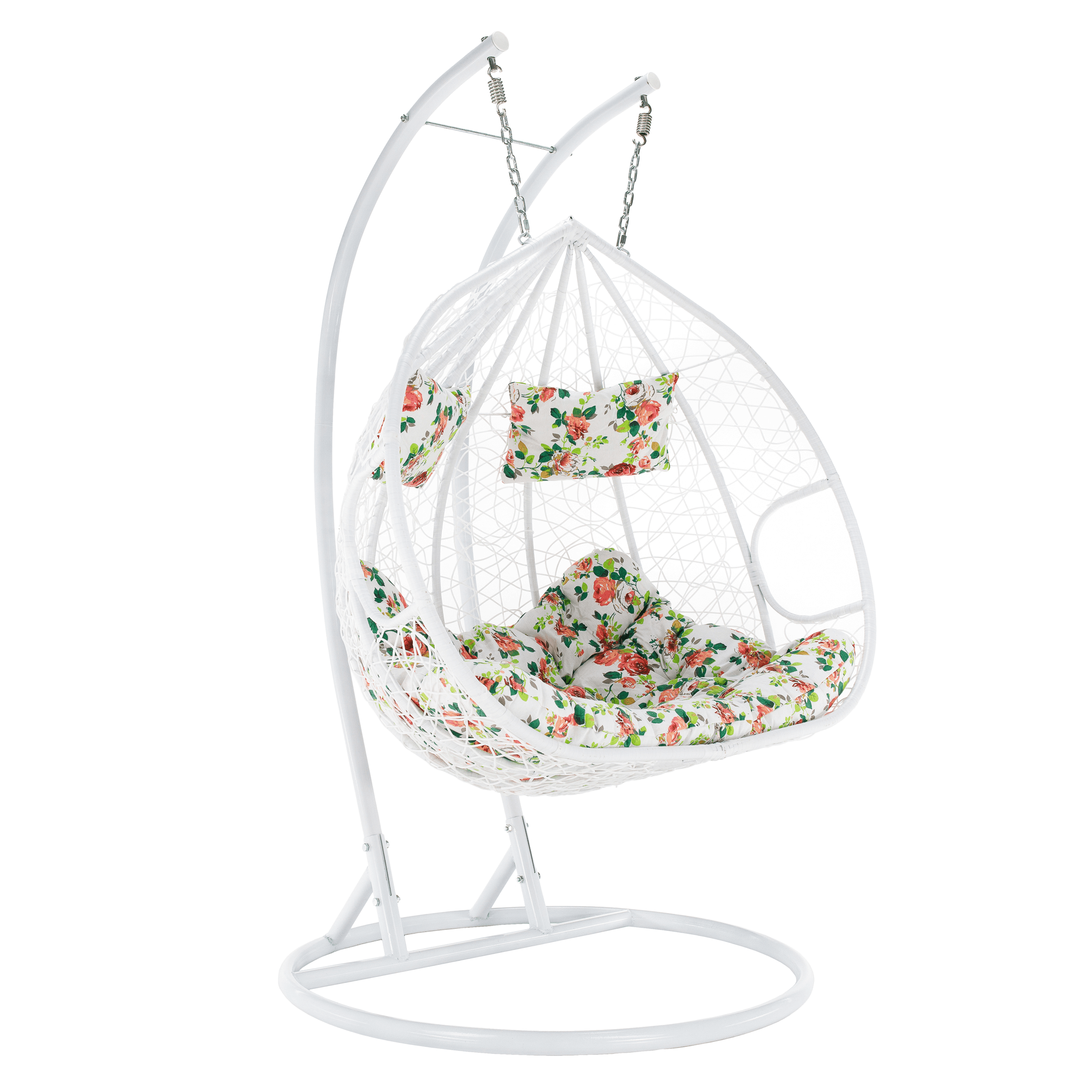 Závesné dvojkreslo, biela/vzor kvety, DALVEA 2 NEW