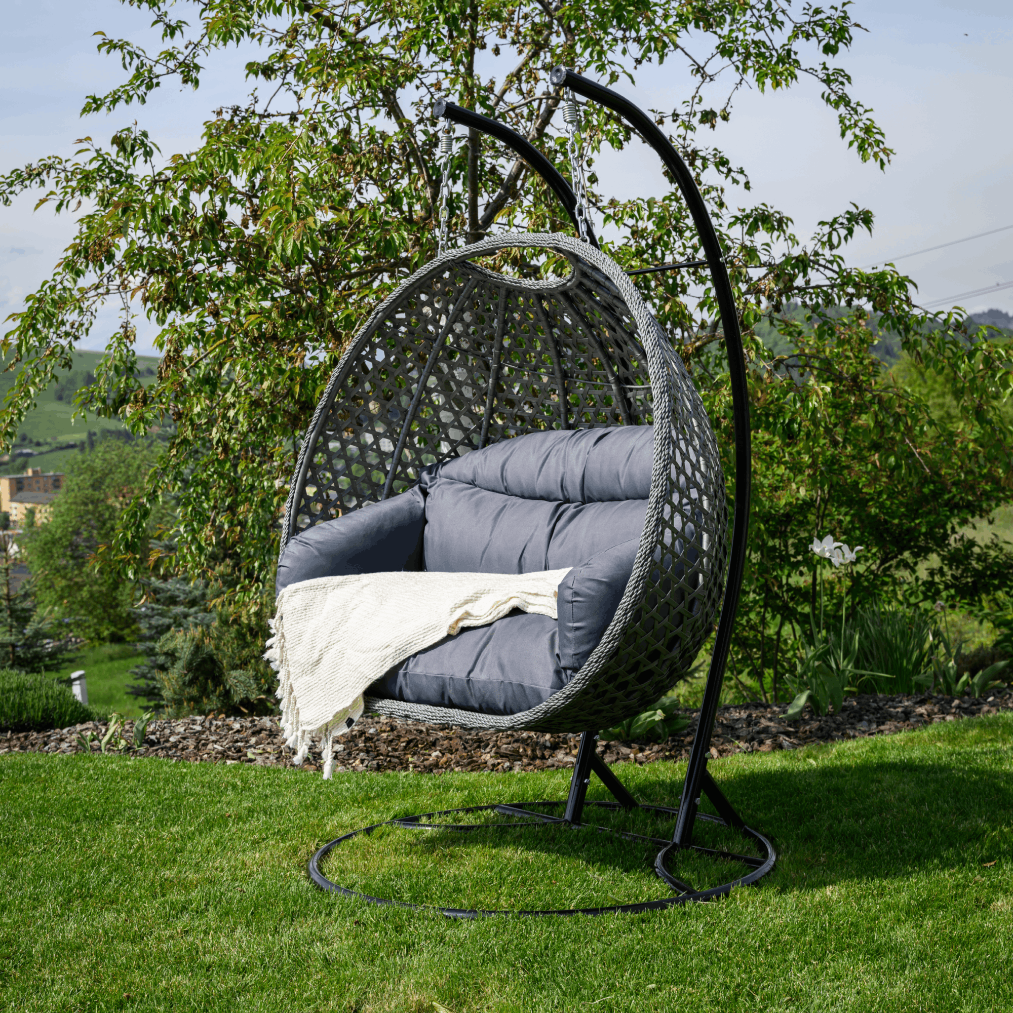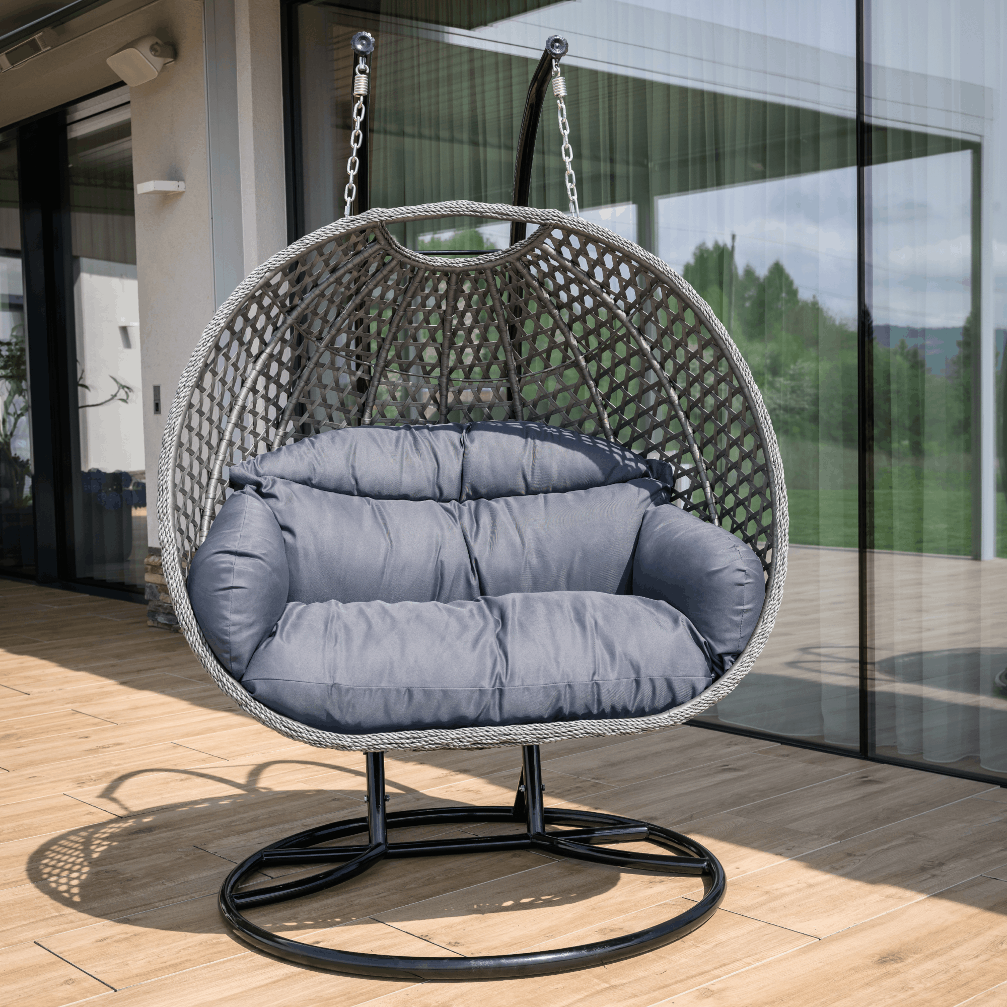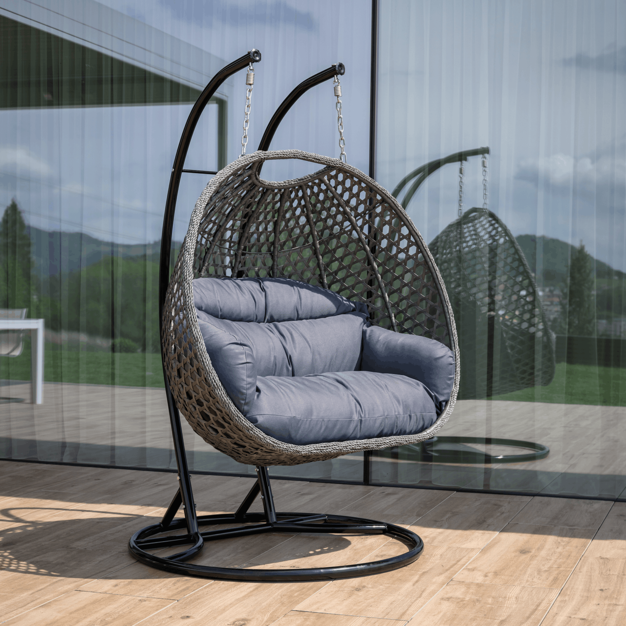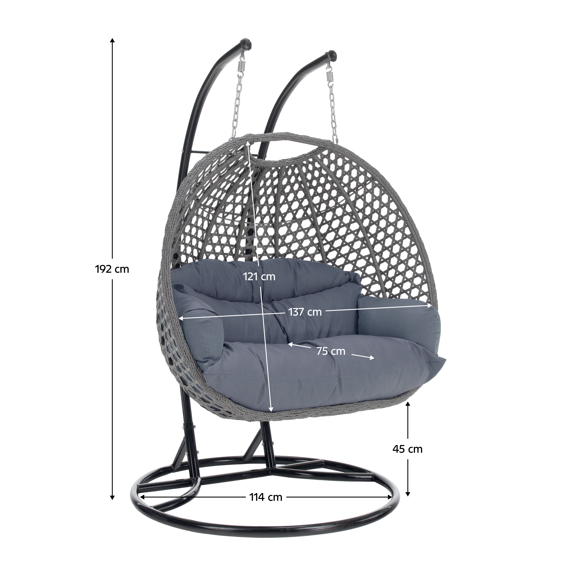 Závesné dvojkreslo, čierna/sivá/tmavosivá, DAKAN NEW