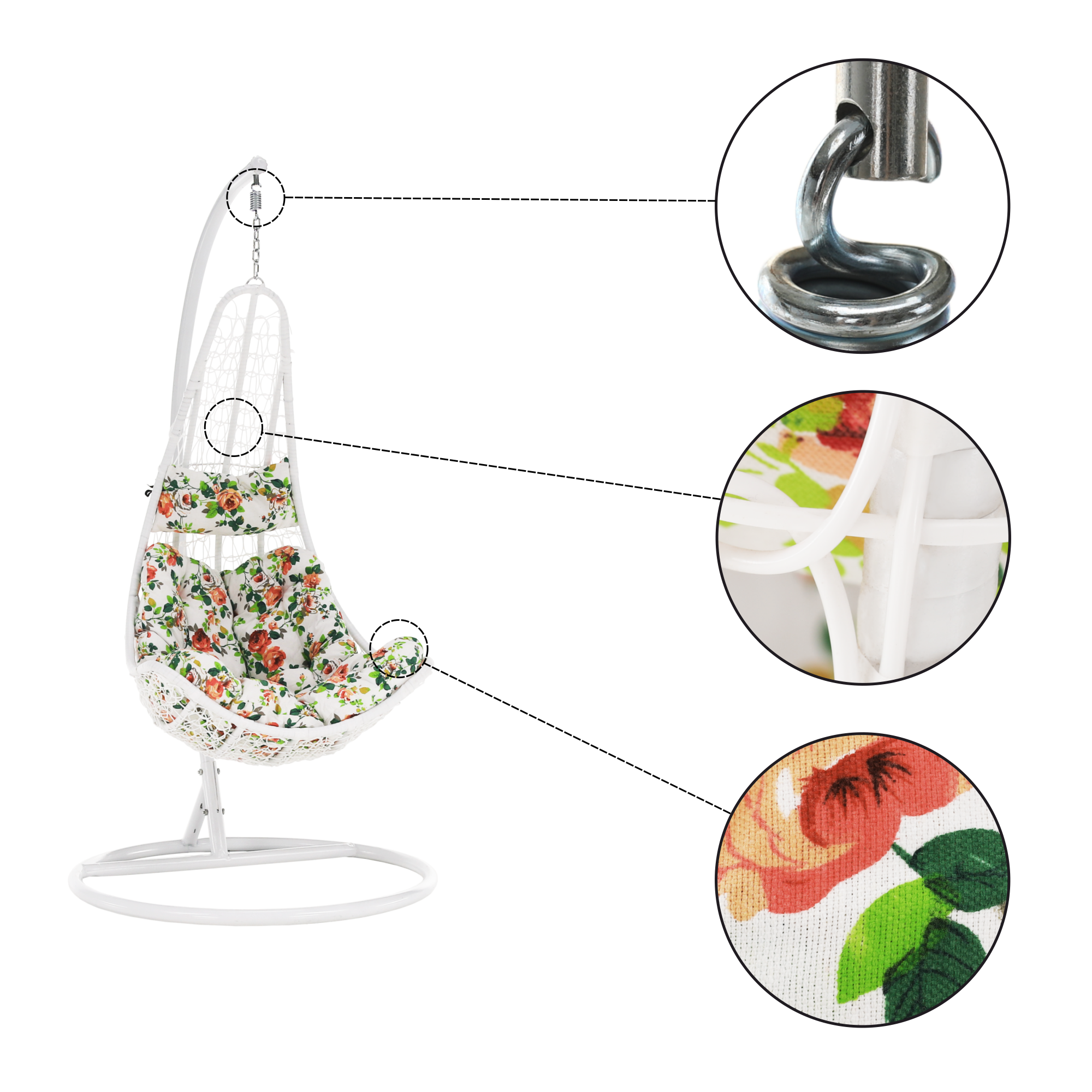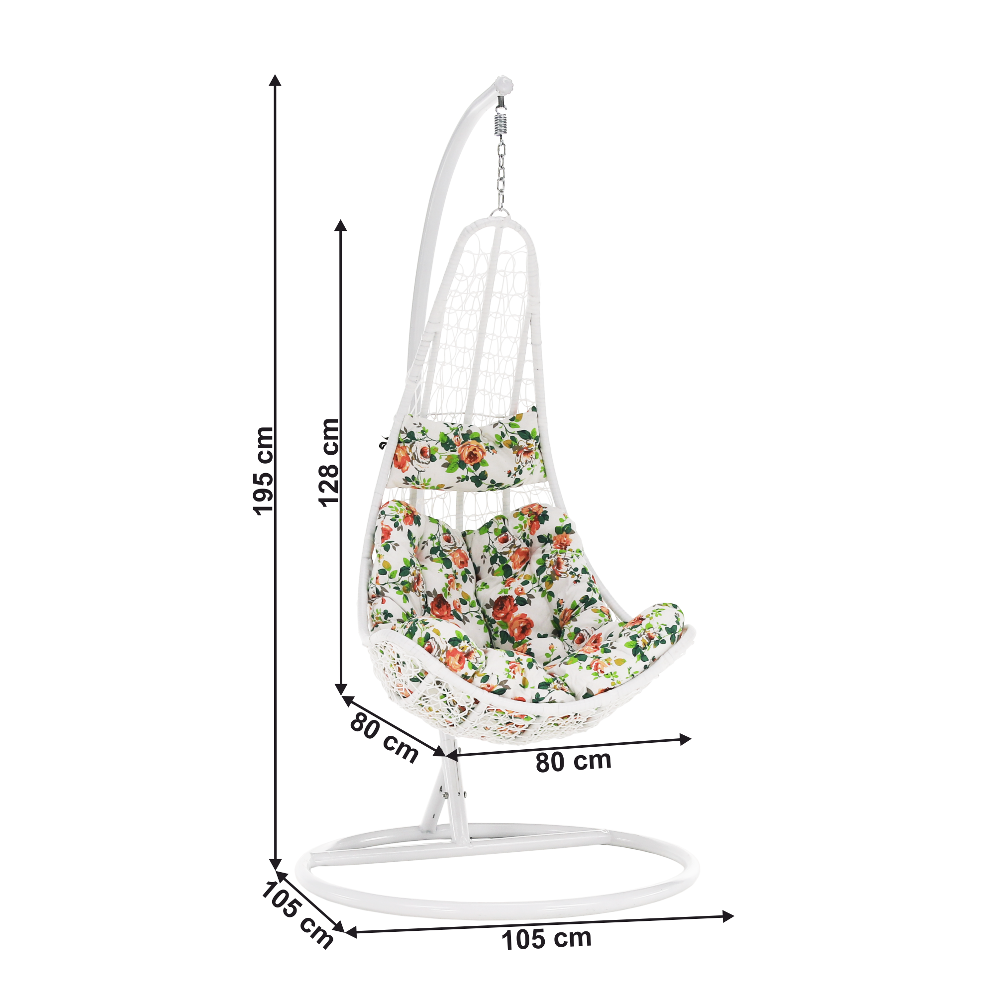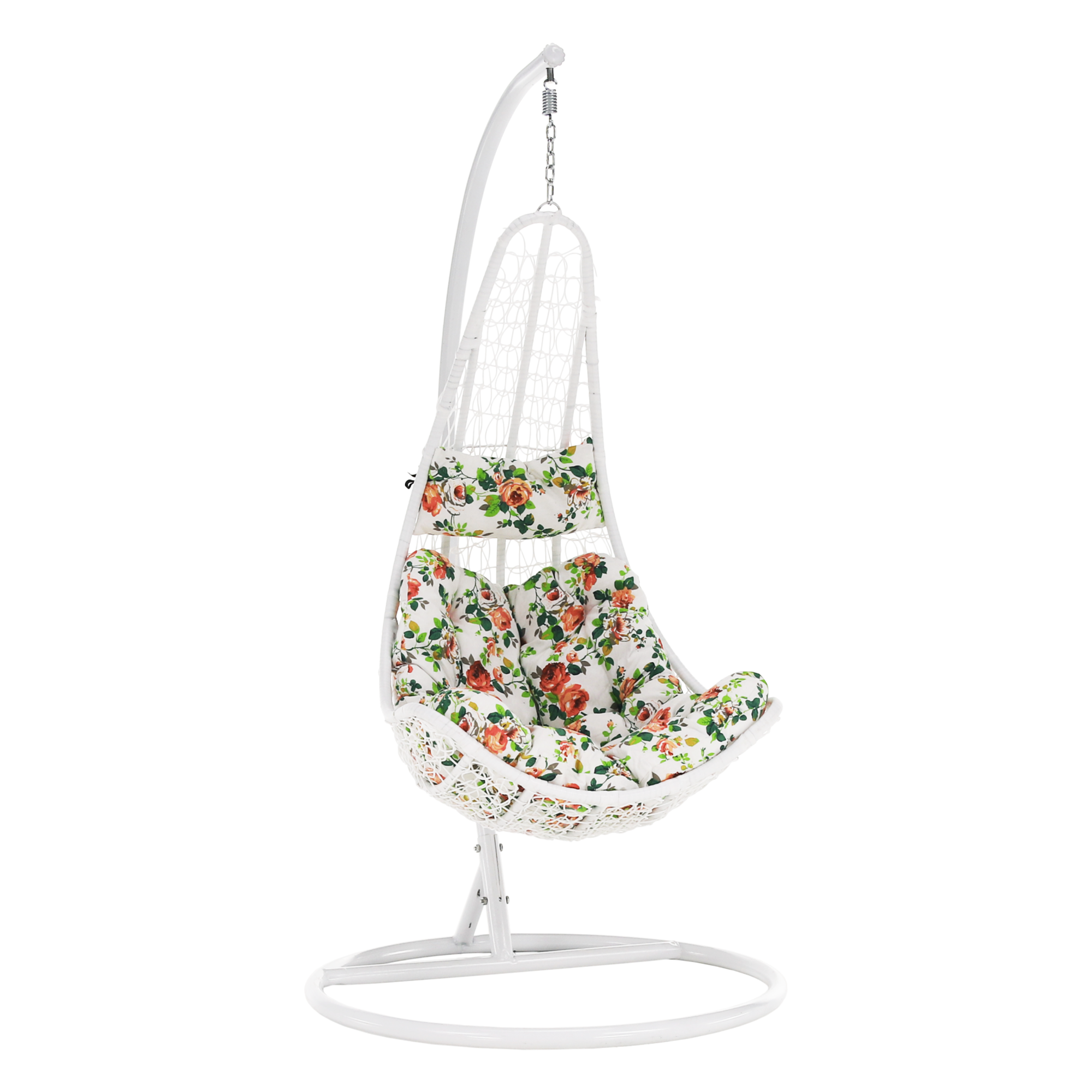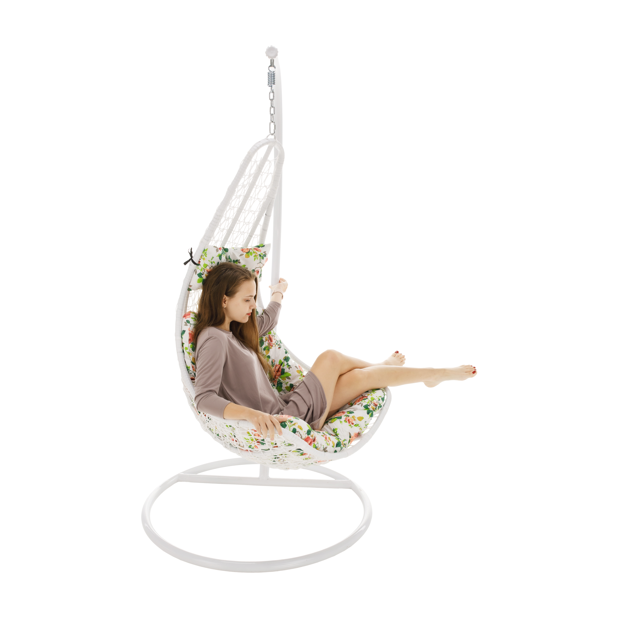 Závesné kreslo, biela/vzor kvety, KALEA 2 NEW
