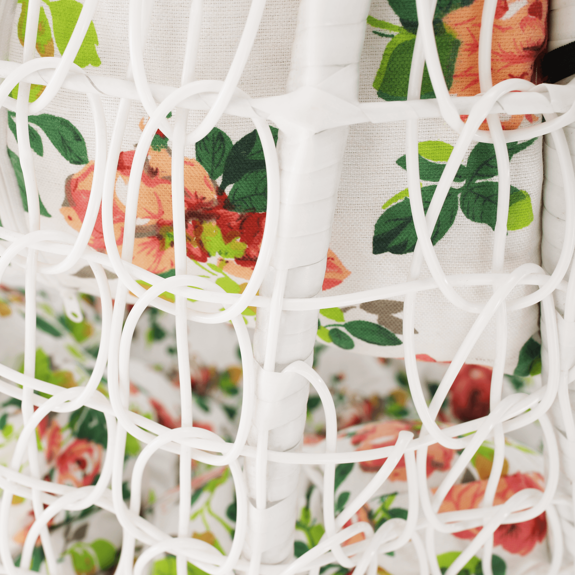 Farebné prevedenie: biely rám/biely ratan/vankúš vzor kvety