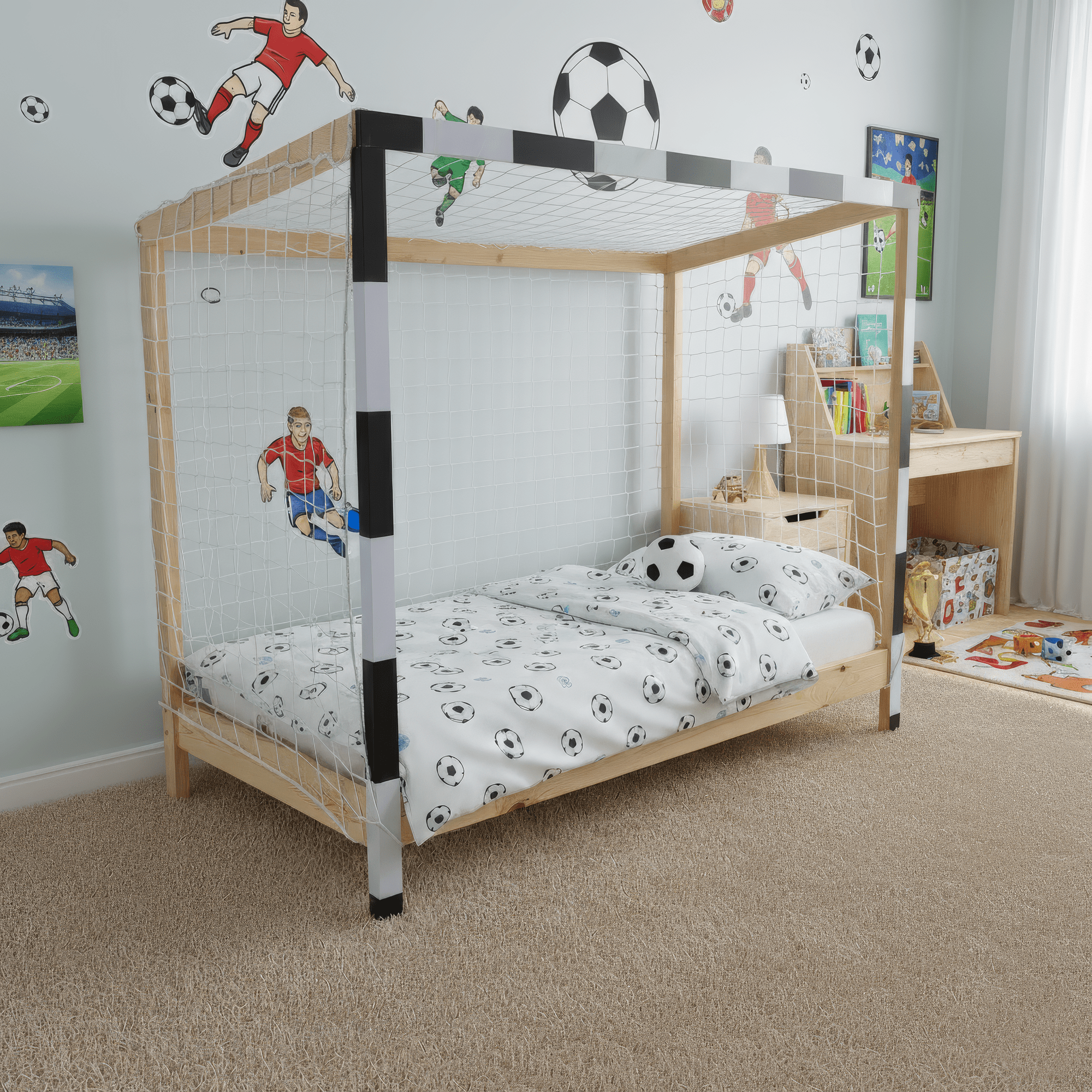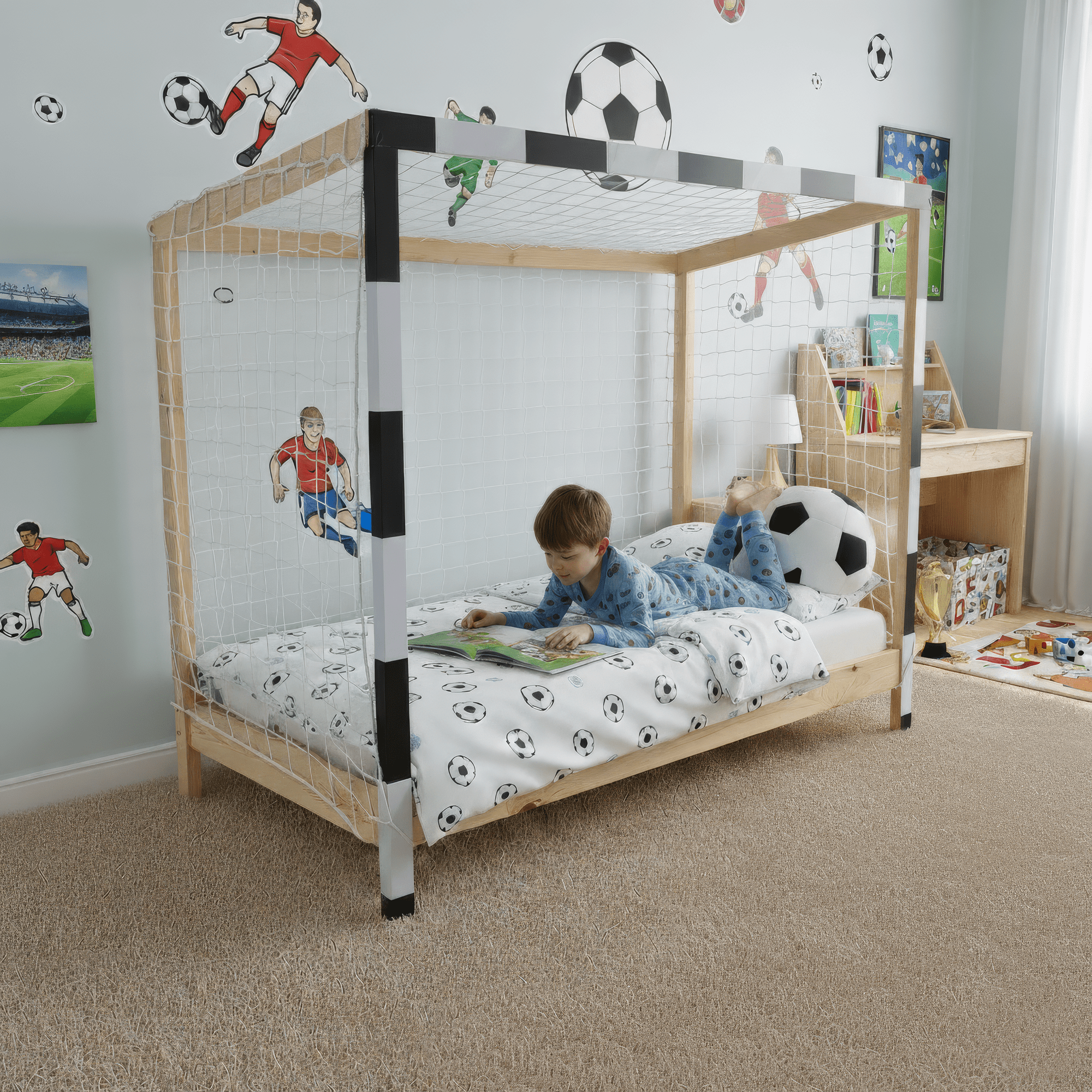 Posteľ v tvare futbalovej brány