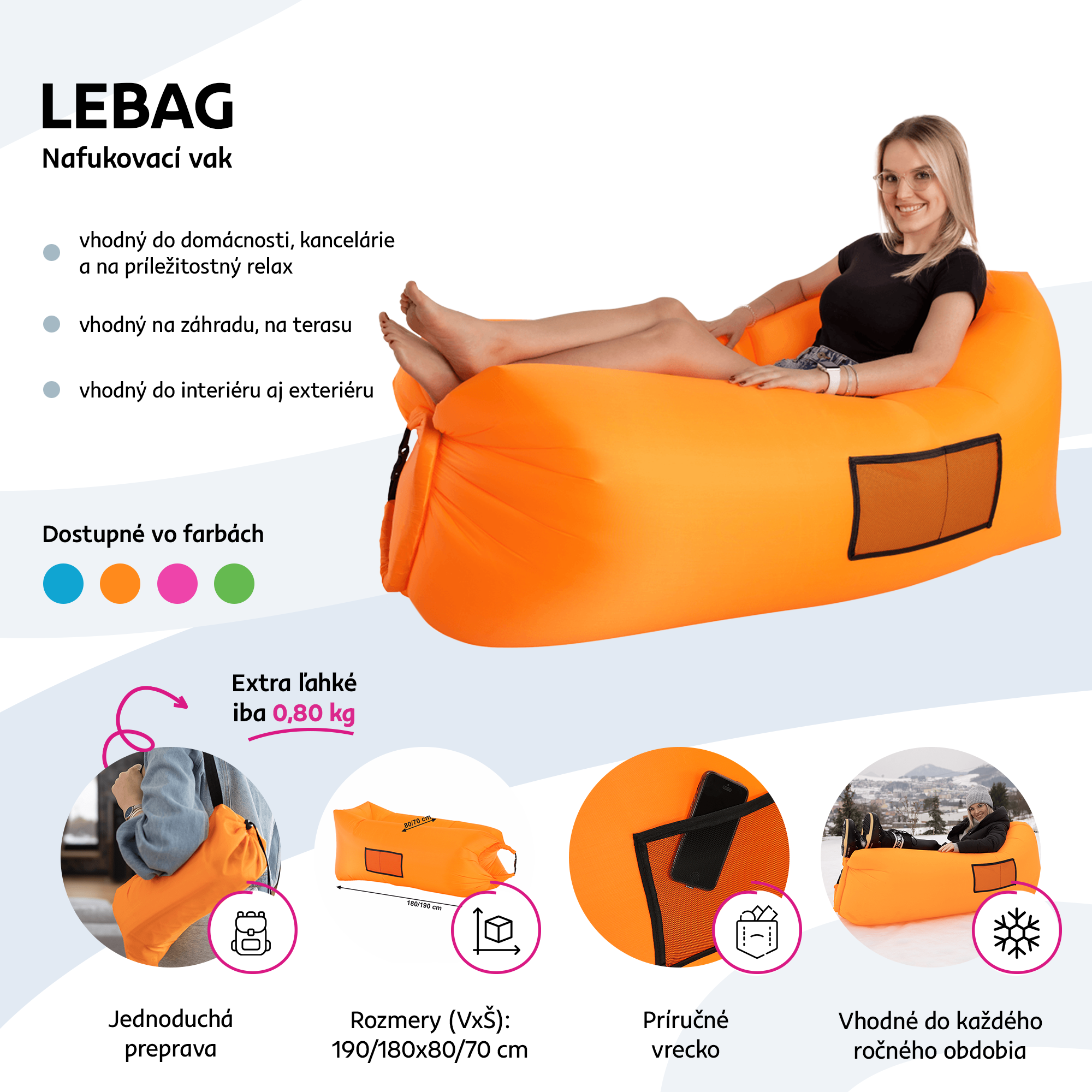 Nafúkaný stav: 70x180/190/240 cm