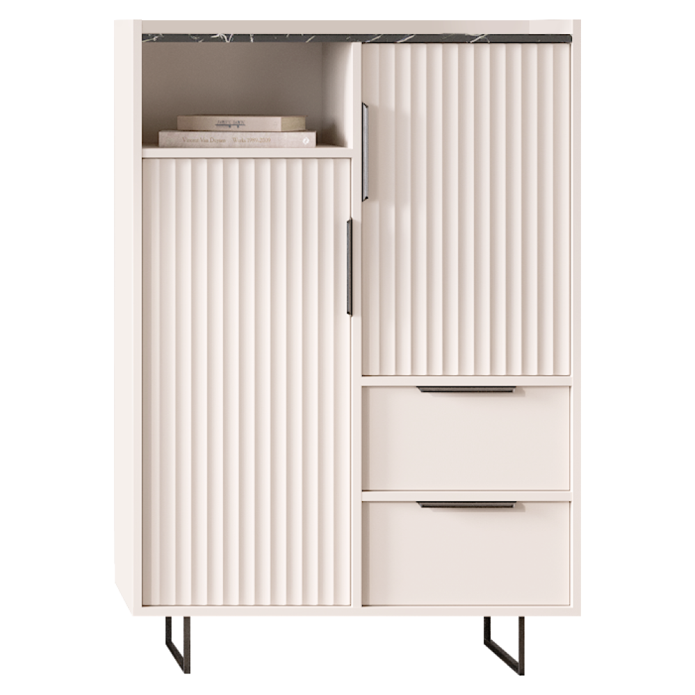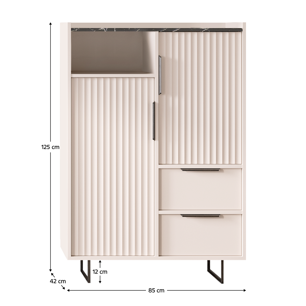 Komoda, kašmír/tmavý mramor, FRESIO KOM2D2S