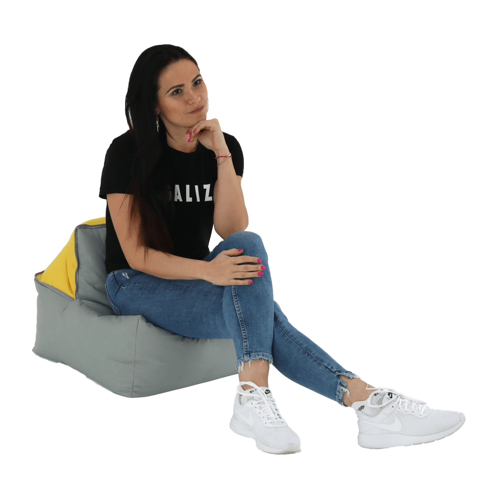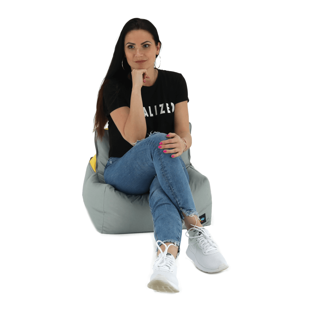 Sedací vak, sivá/zelená/žltá látka, ALIMOR