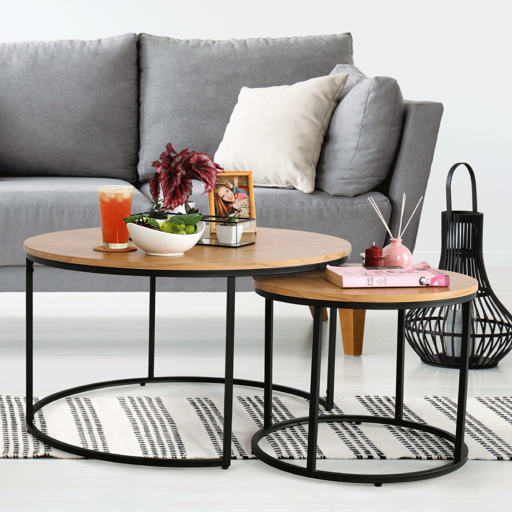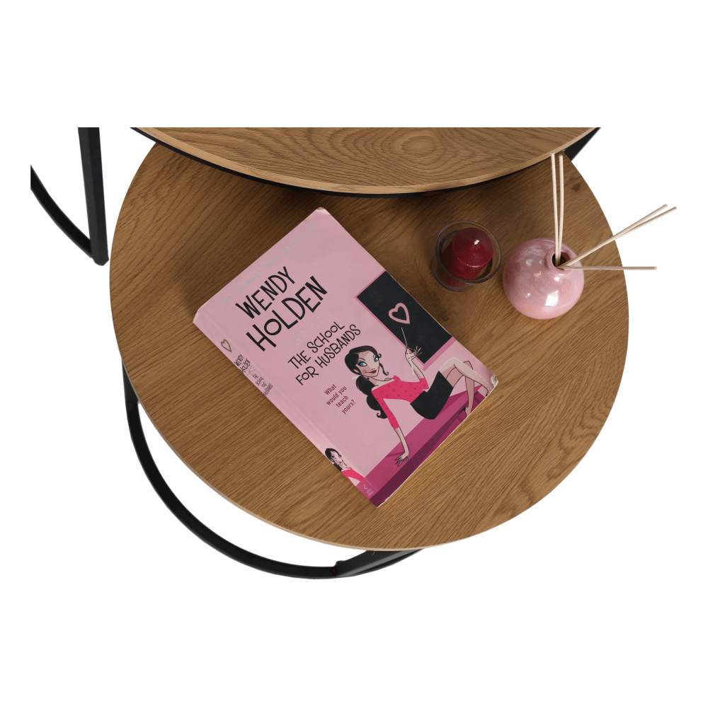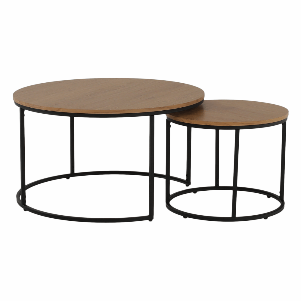 Konferenčné stolíky, set 2 ks, dub/čierna, IKLIN