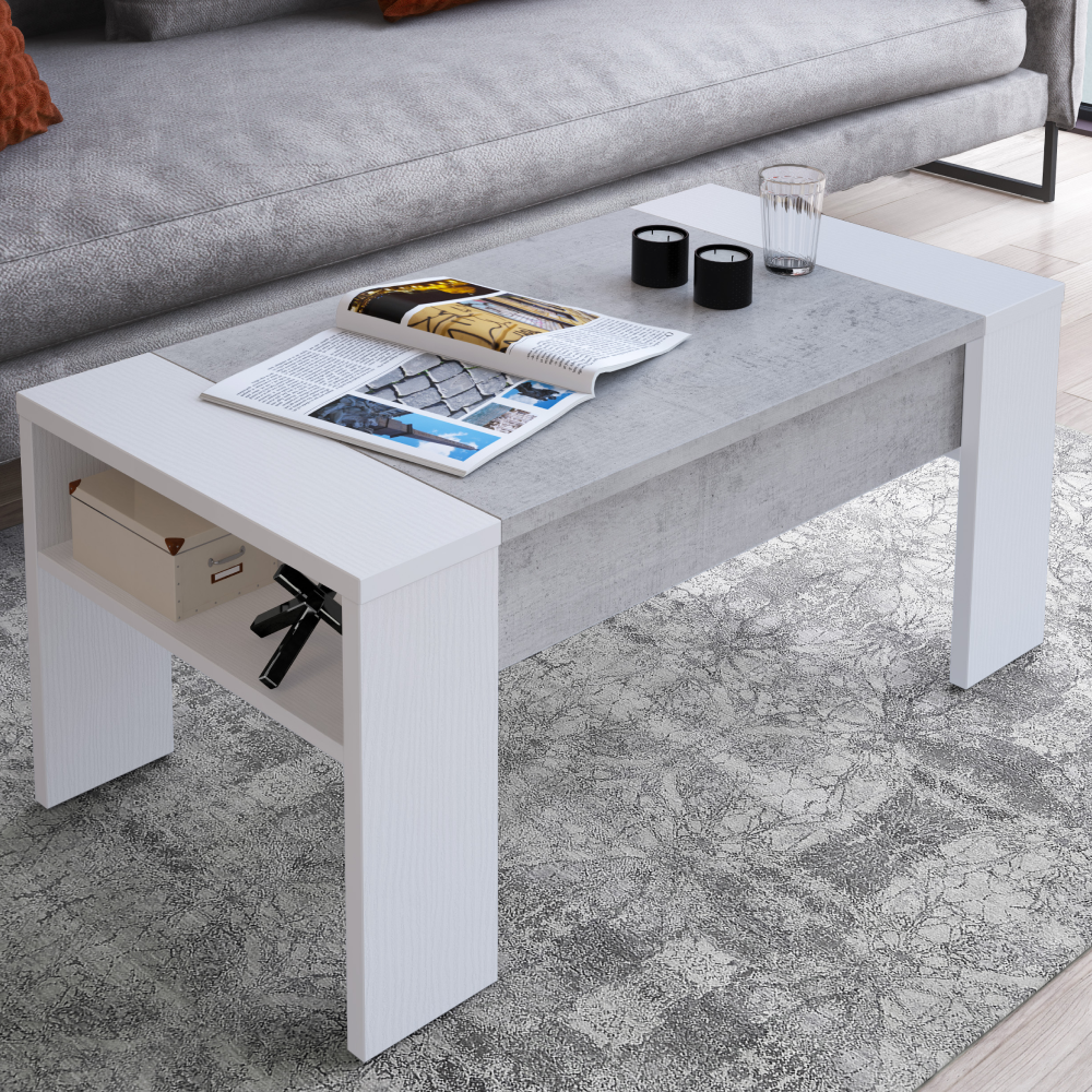 Konferenčný stolík, biela/betón, PULA