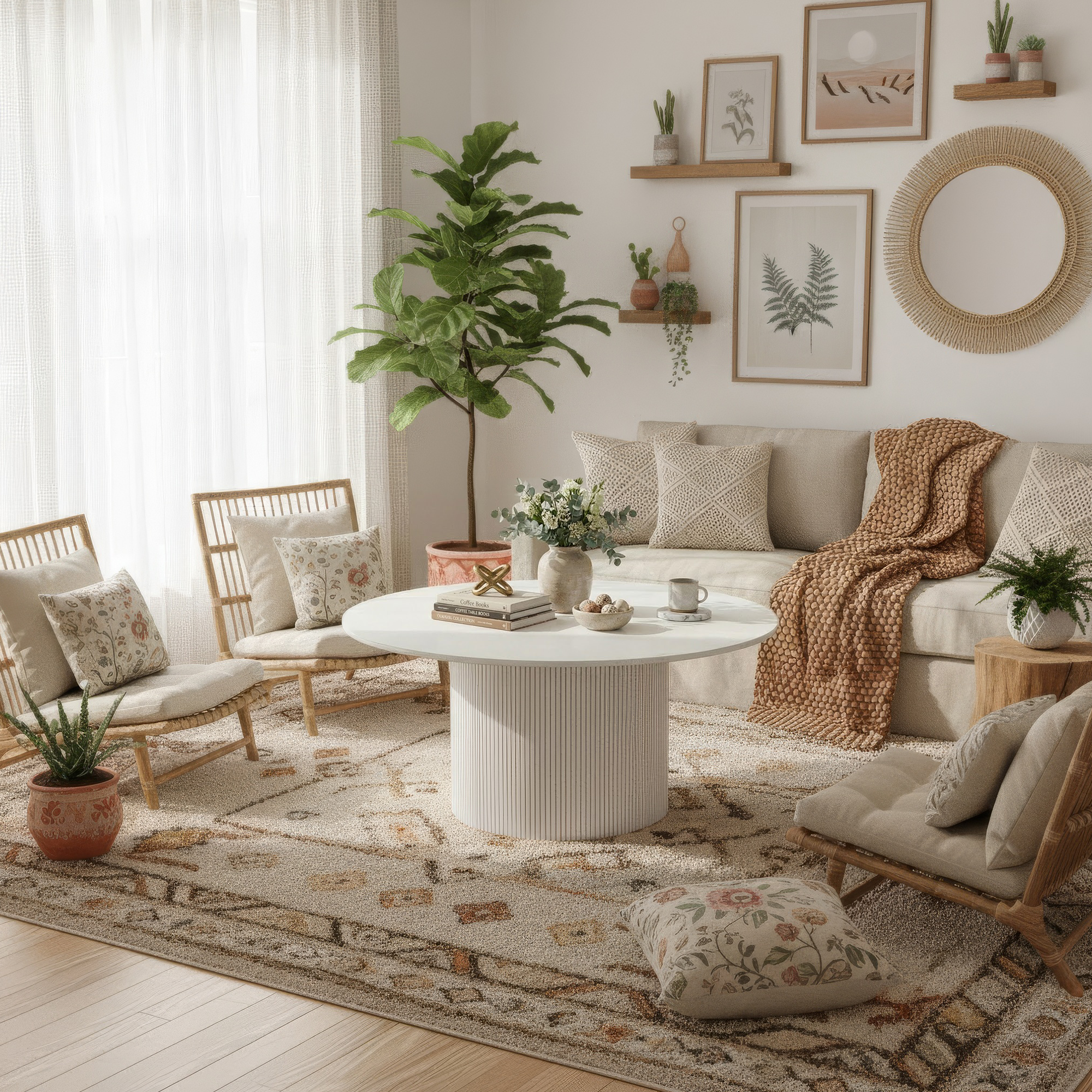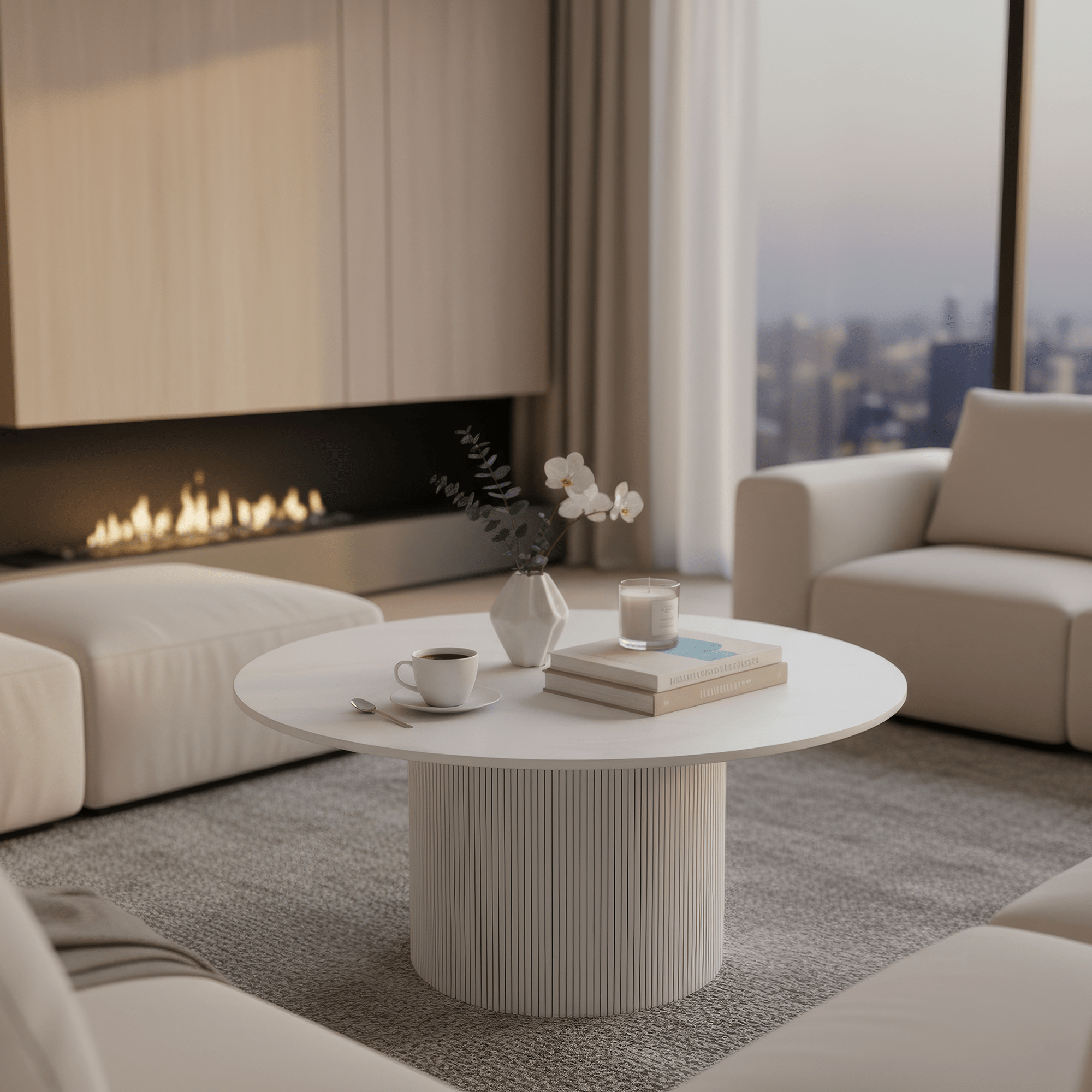 Konferenčný stolík, biely mramor/MDF, priemer 80 cm, MAHIR TYP 1