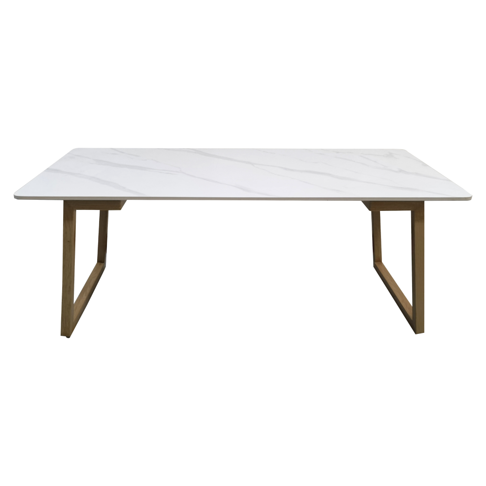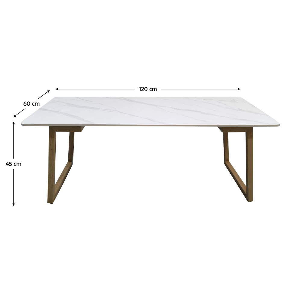 Konferenčný stolík, biely mramor/buk, DEMIAN