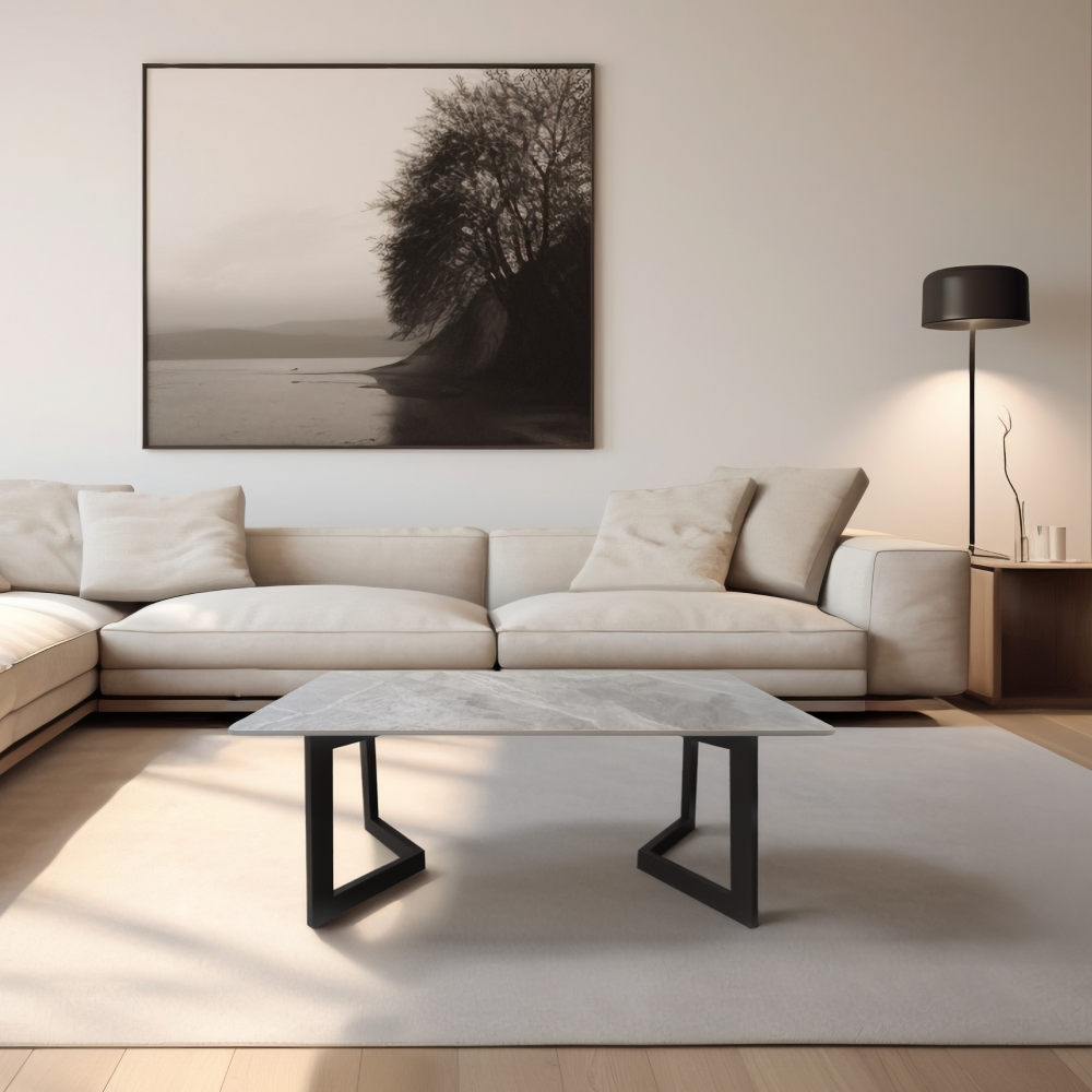 Konferenčný stolík, sivý mramor/čierna, SOFIAN