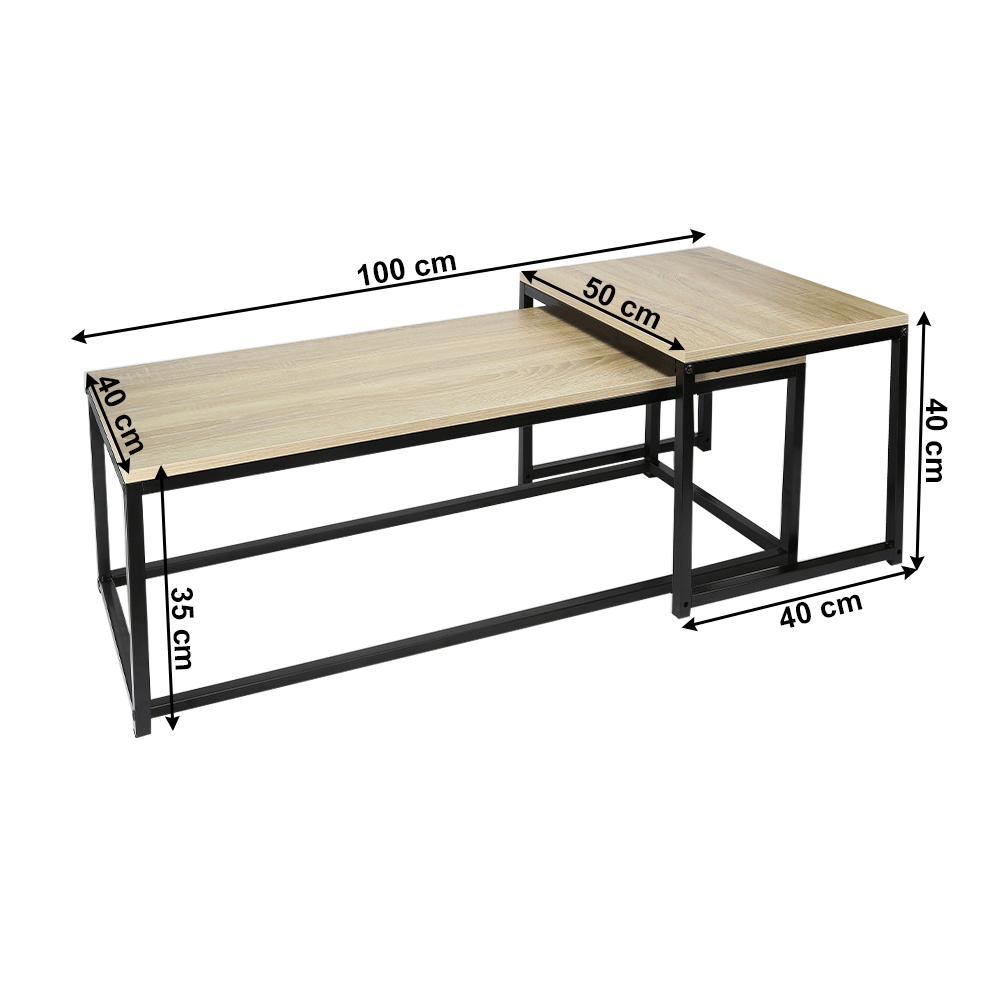 Set 2 konferenčných stolíkov, dub sonoma/čierna, KASTLER NEW TYP 2