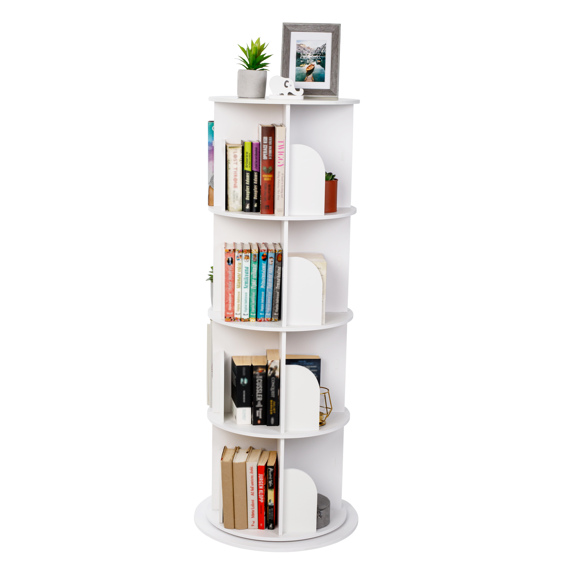 Otočný regál, 4 police, biela, ERION TYP 1 + darček