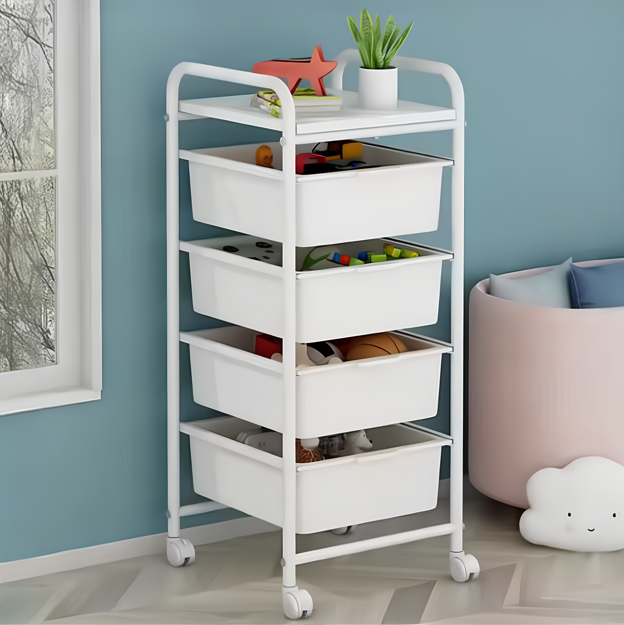 Pojazdný regál, biela, SUFIK