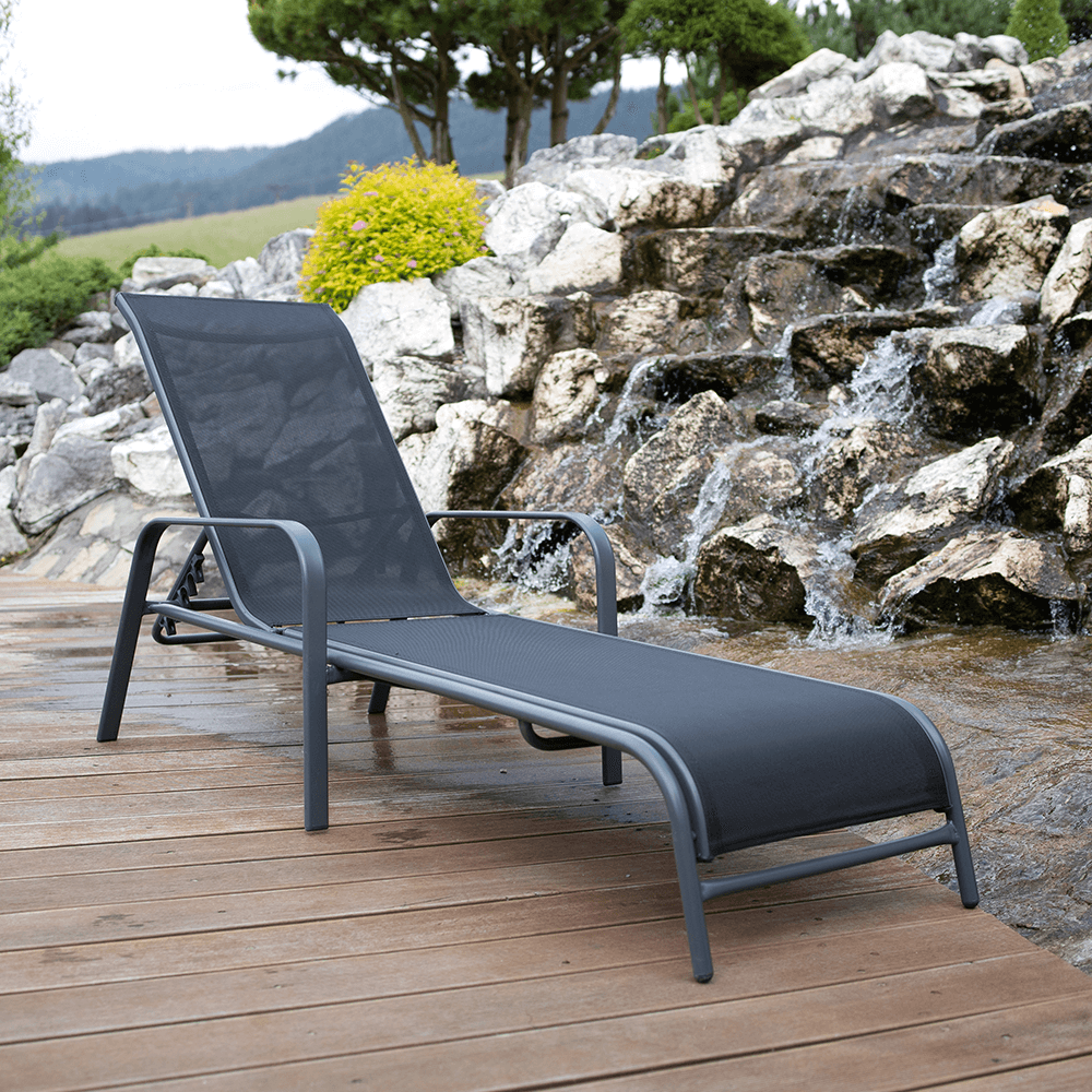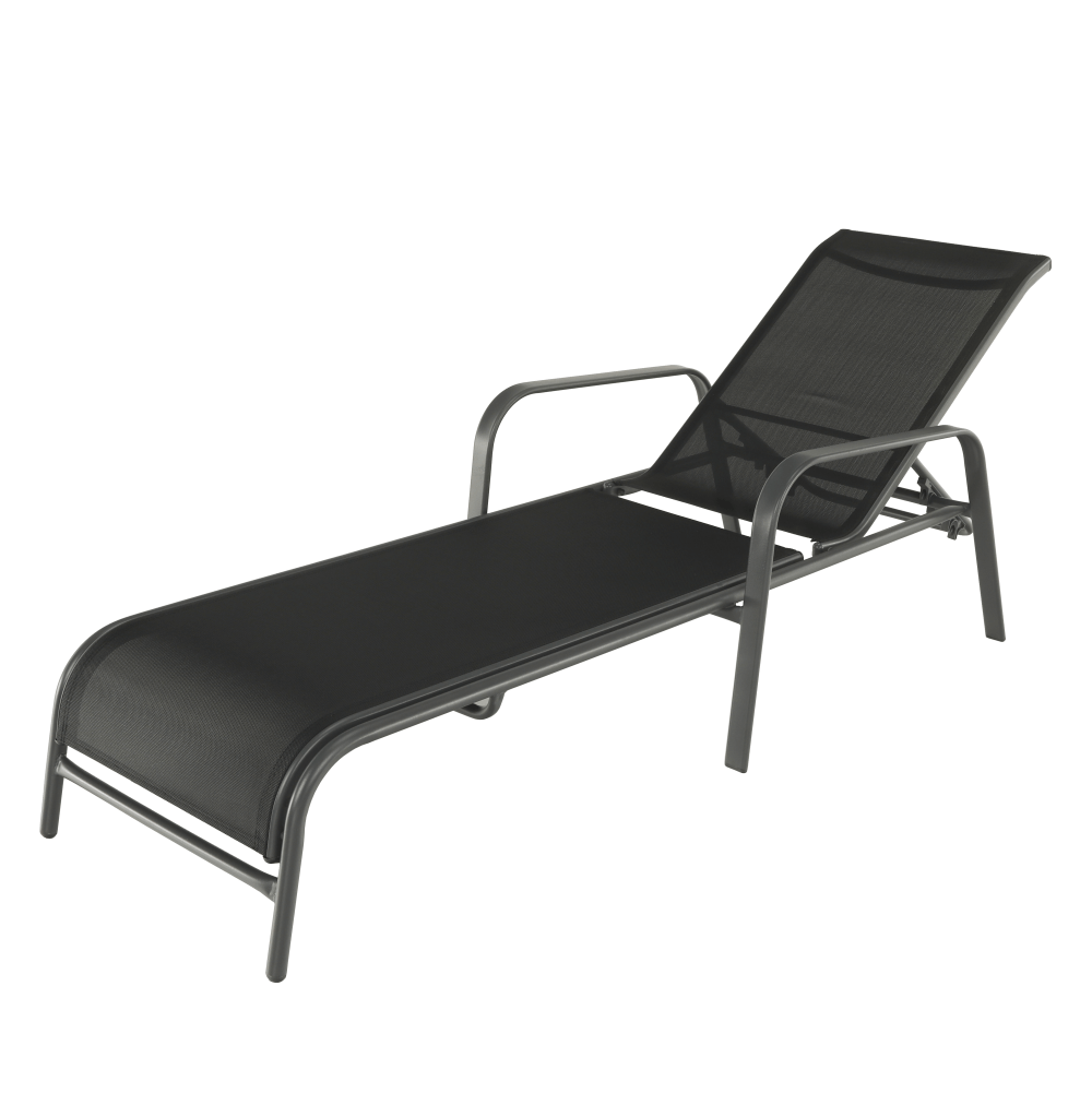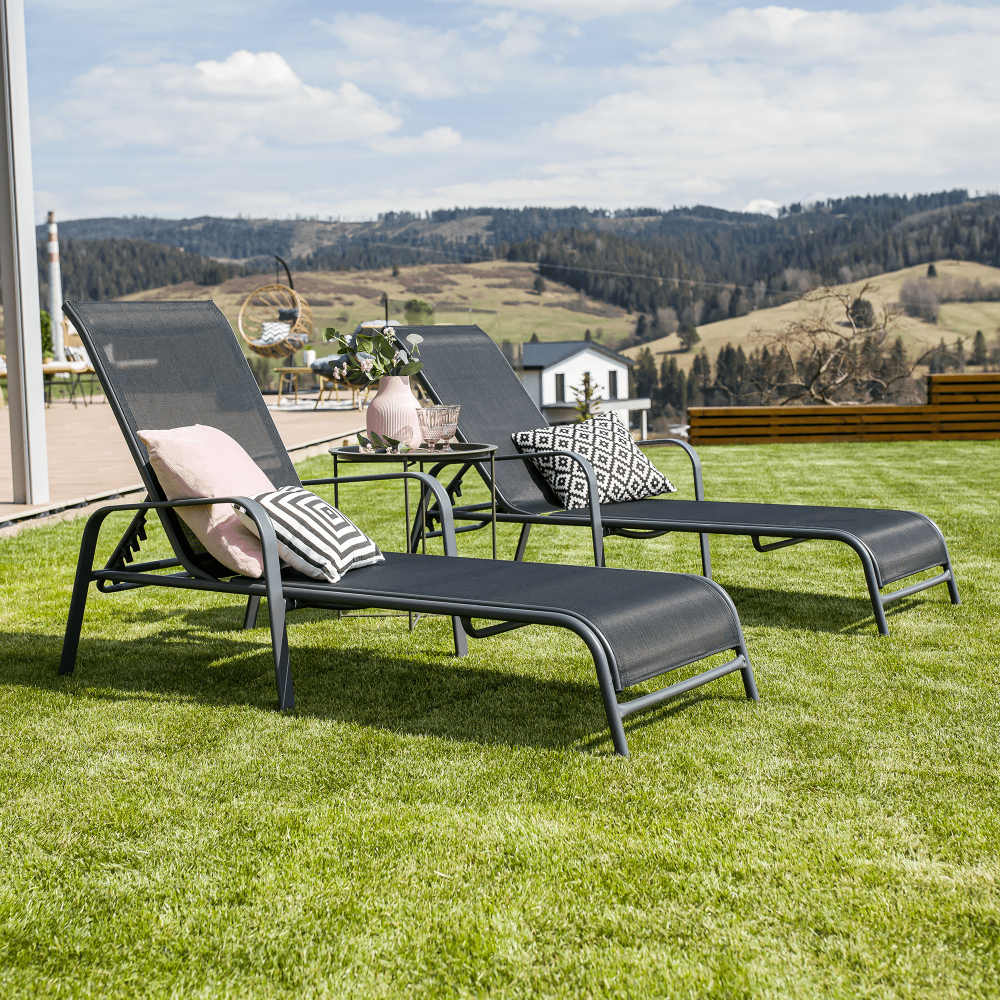 Stohovateľné polohovacie záhradné lehátko, čierna/sivá, ATREO