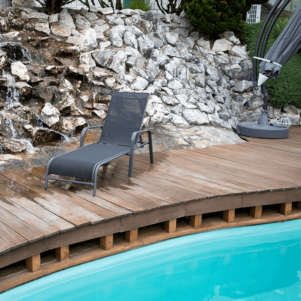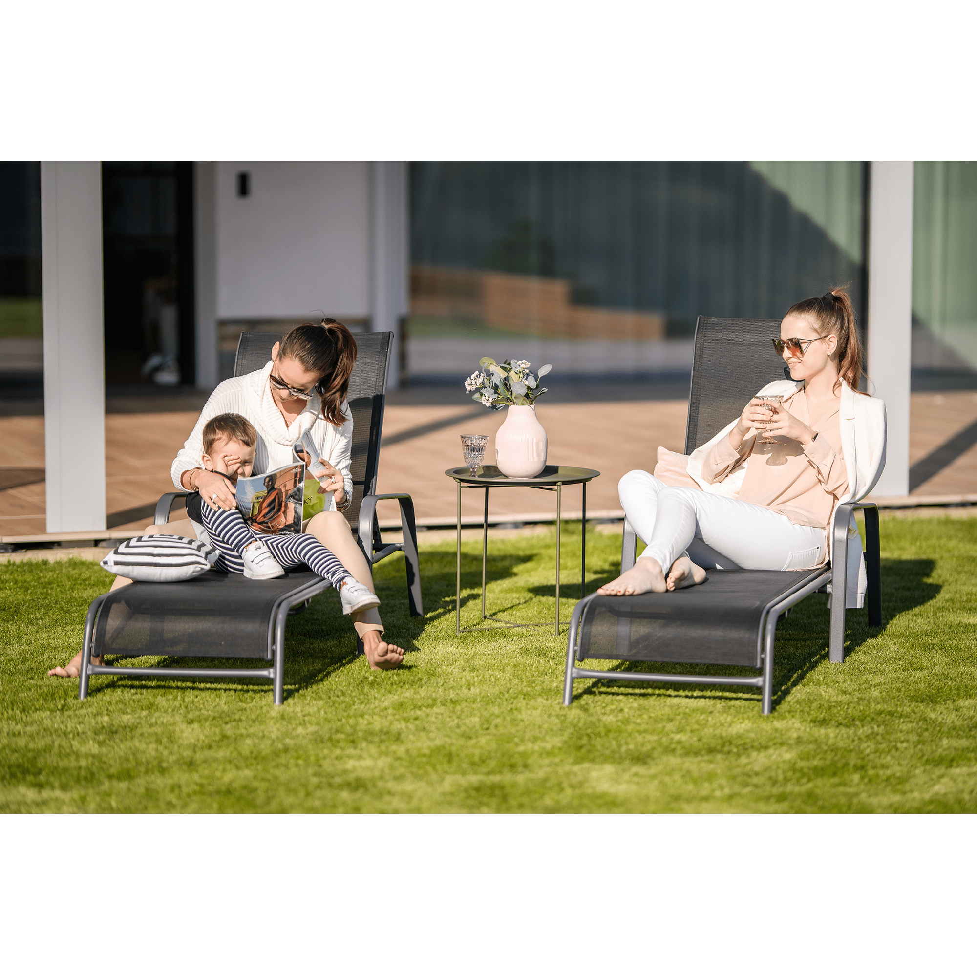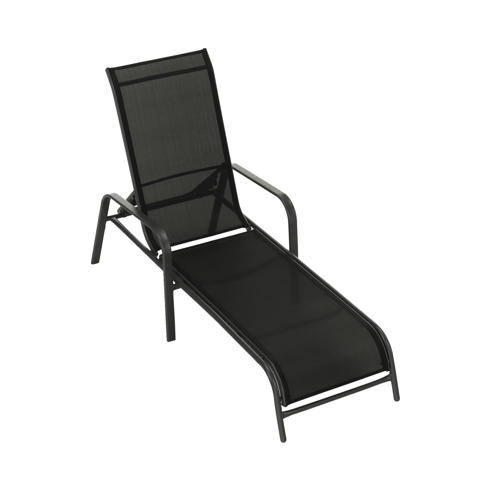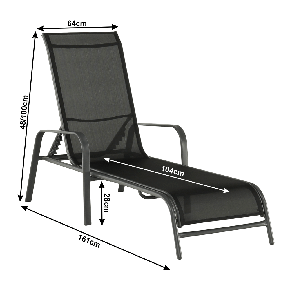 Stohovateľné polohovacie záhradné lehátko, čierna/sivá, ATREO