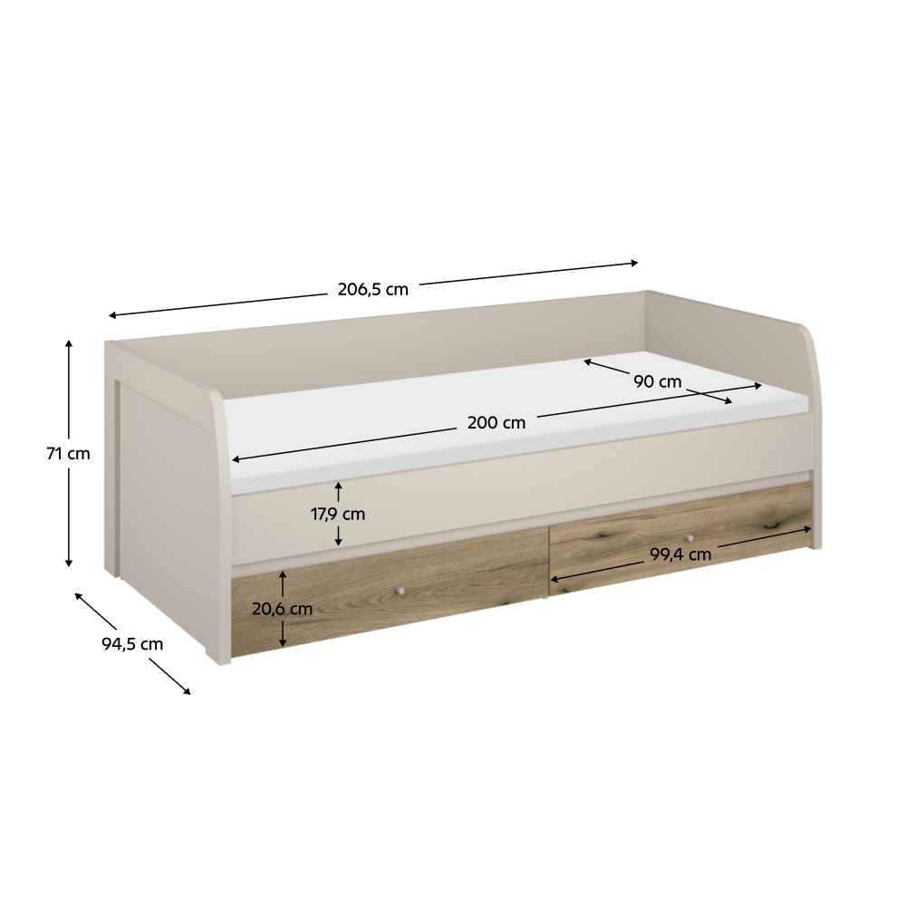 Posteľ, 90x200, kašmír/dub evoke, KAROS 2S