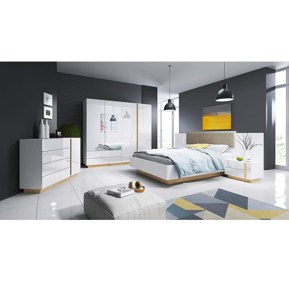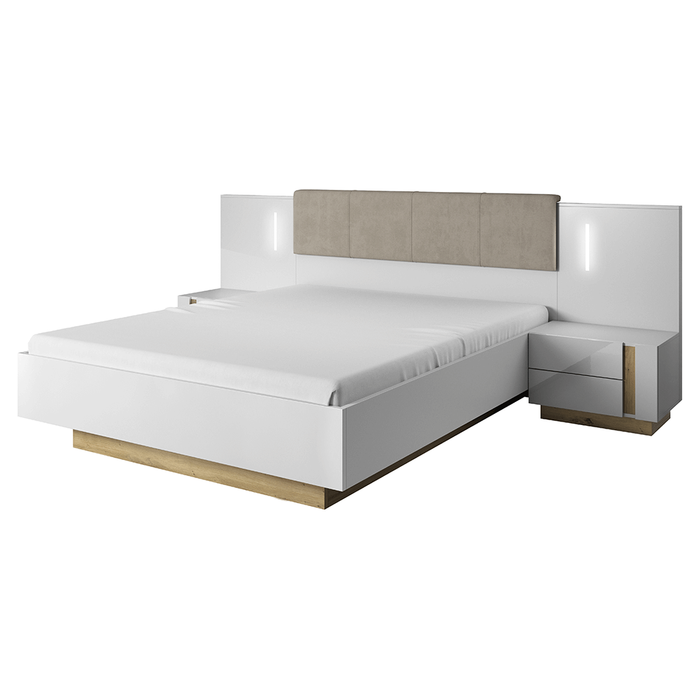 Posteľ s úložným priestorom, biela/dub grandson/biely lesk, CITY