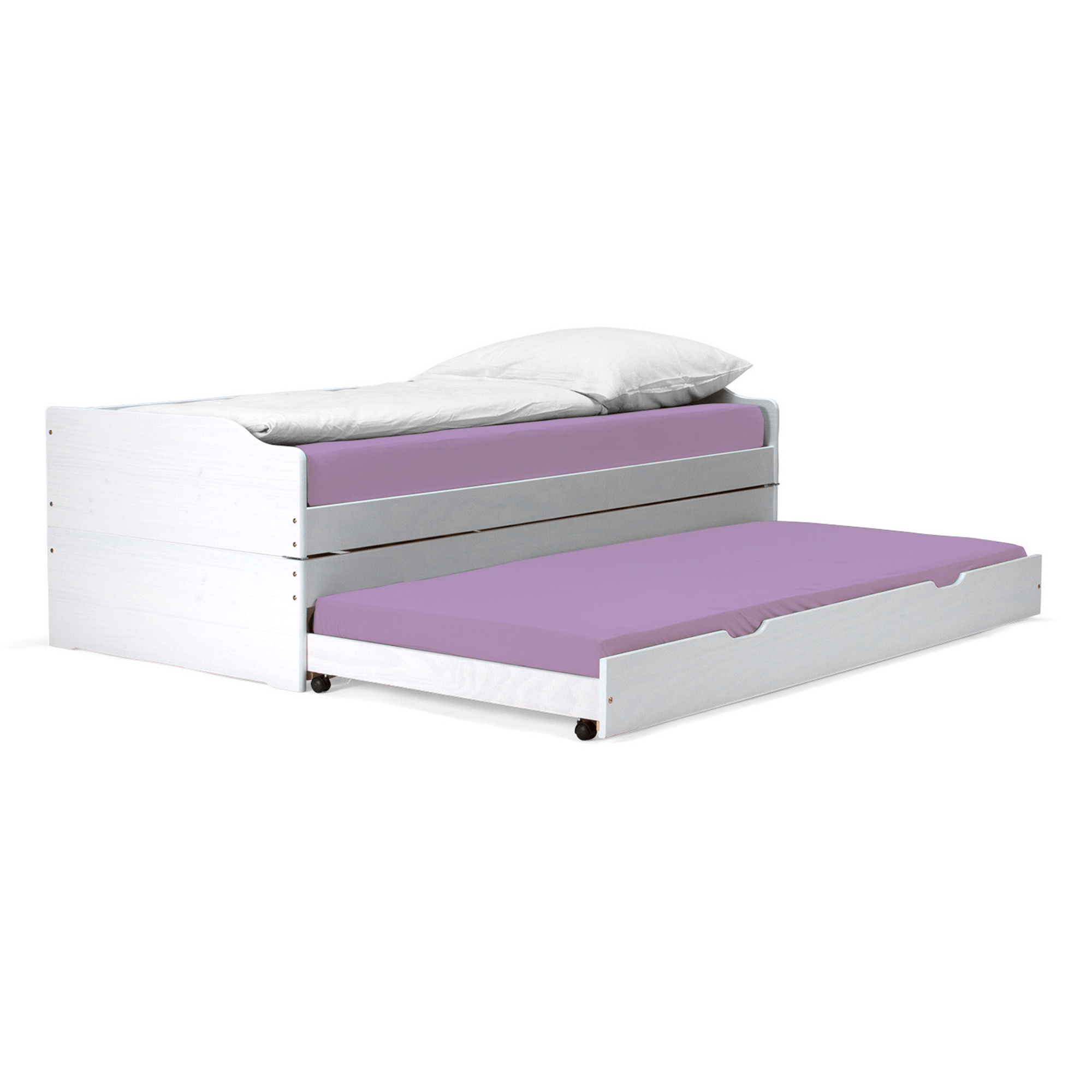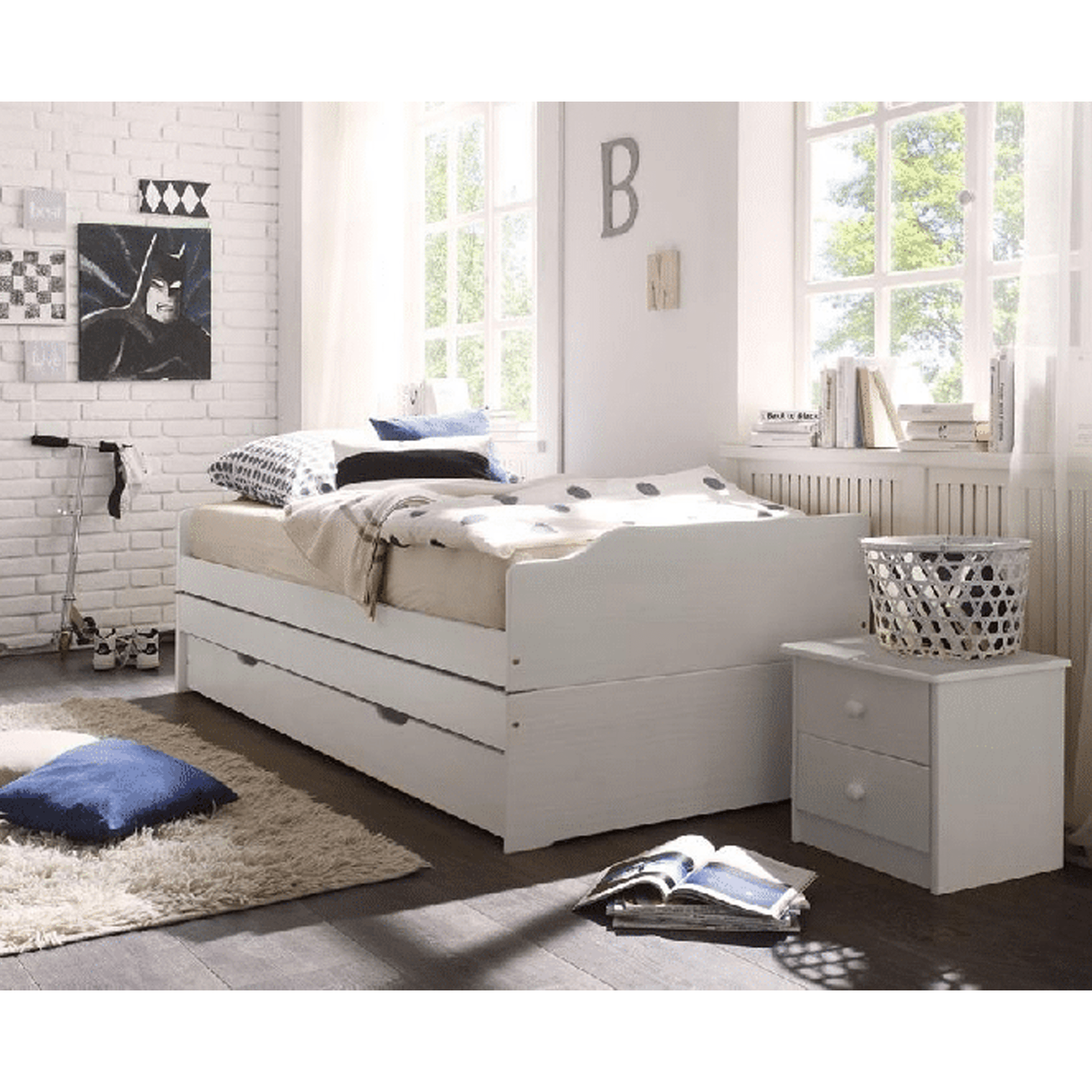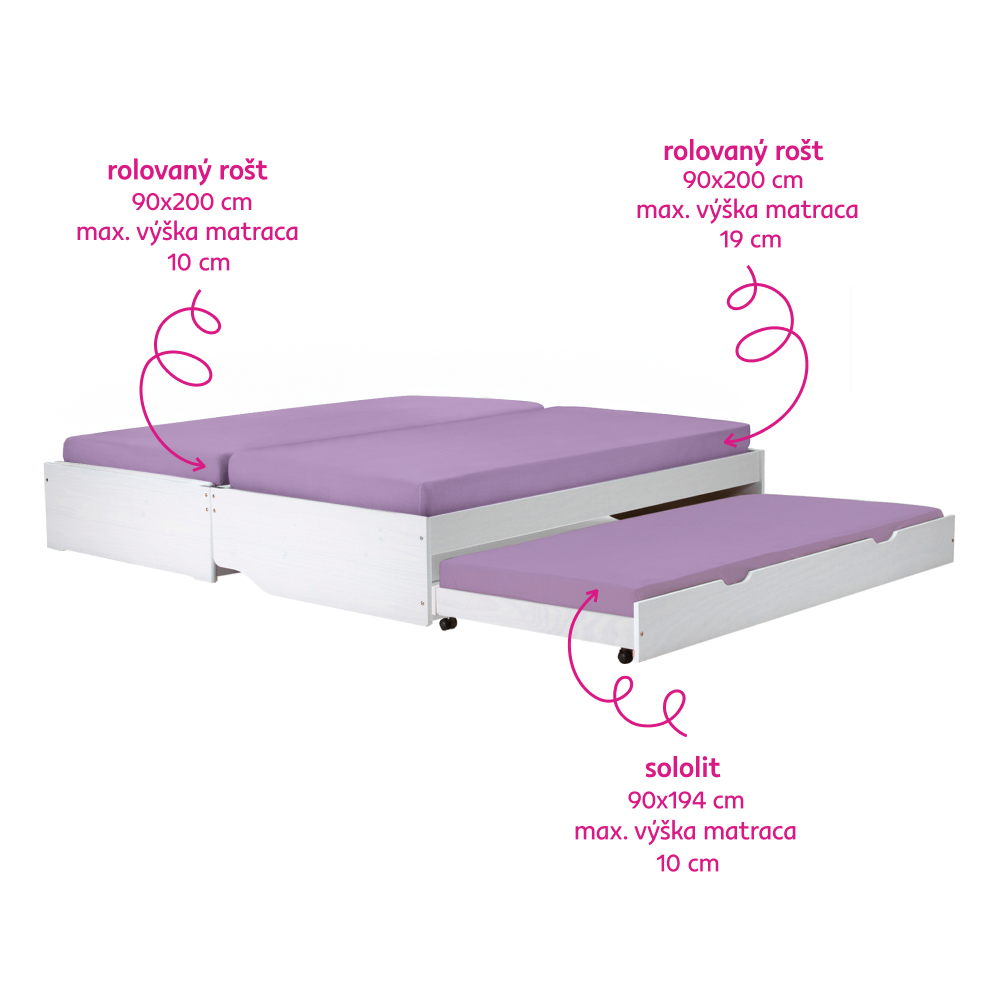 Posteľ s výsuvnými prístelkami, biela, masív, 90x200, FLOPY
