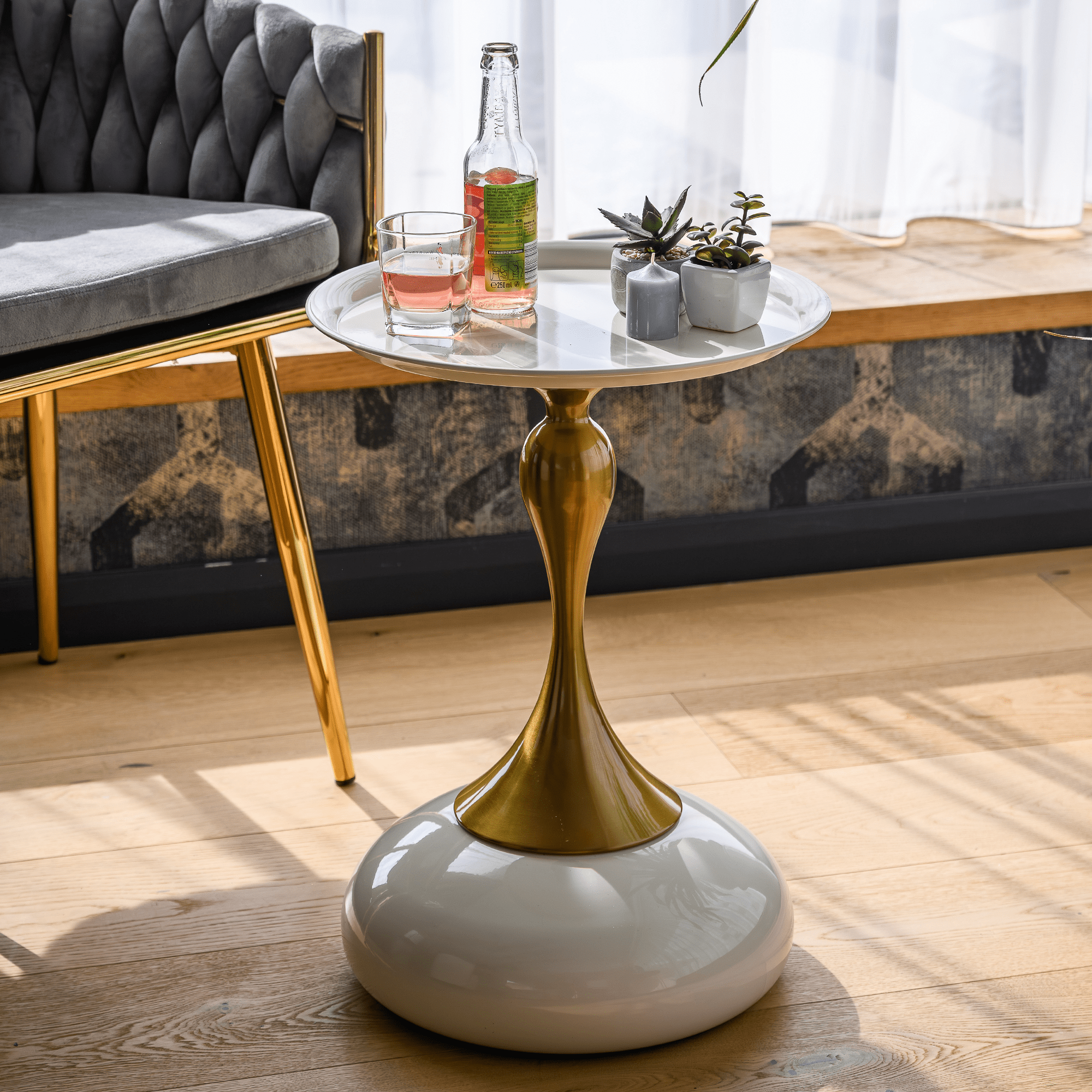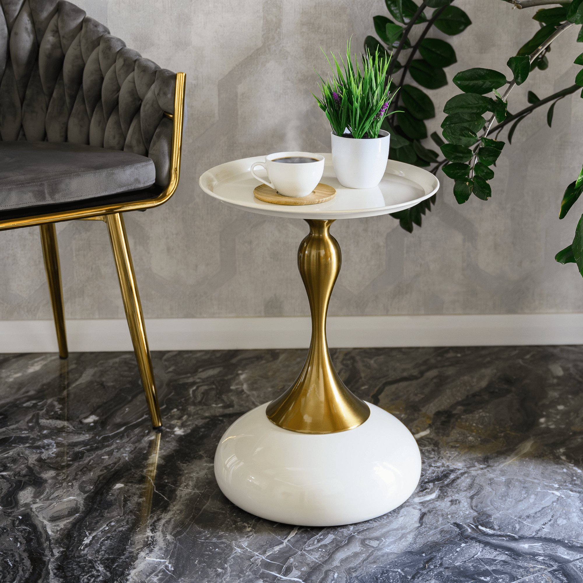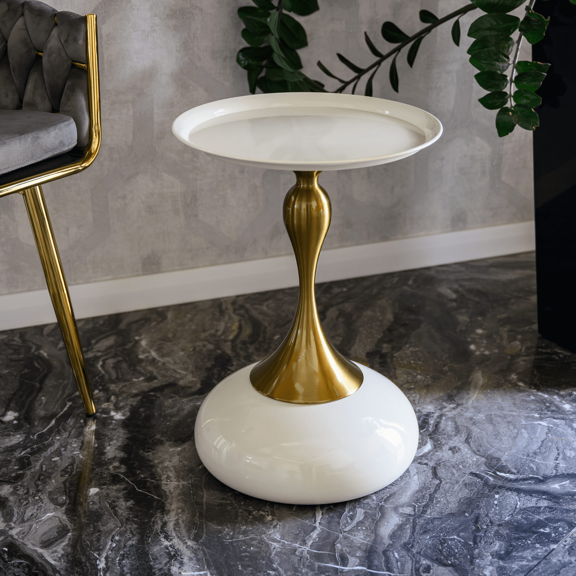 Príručný stolík, biela Ivory/zlatá, FEJ