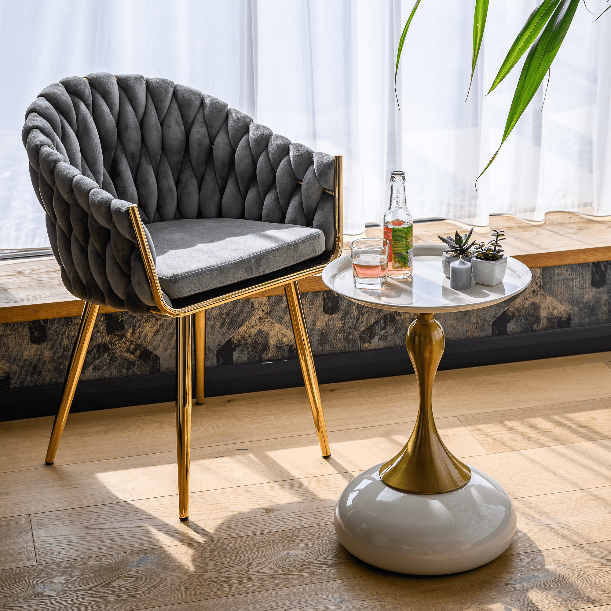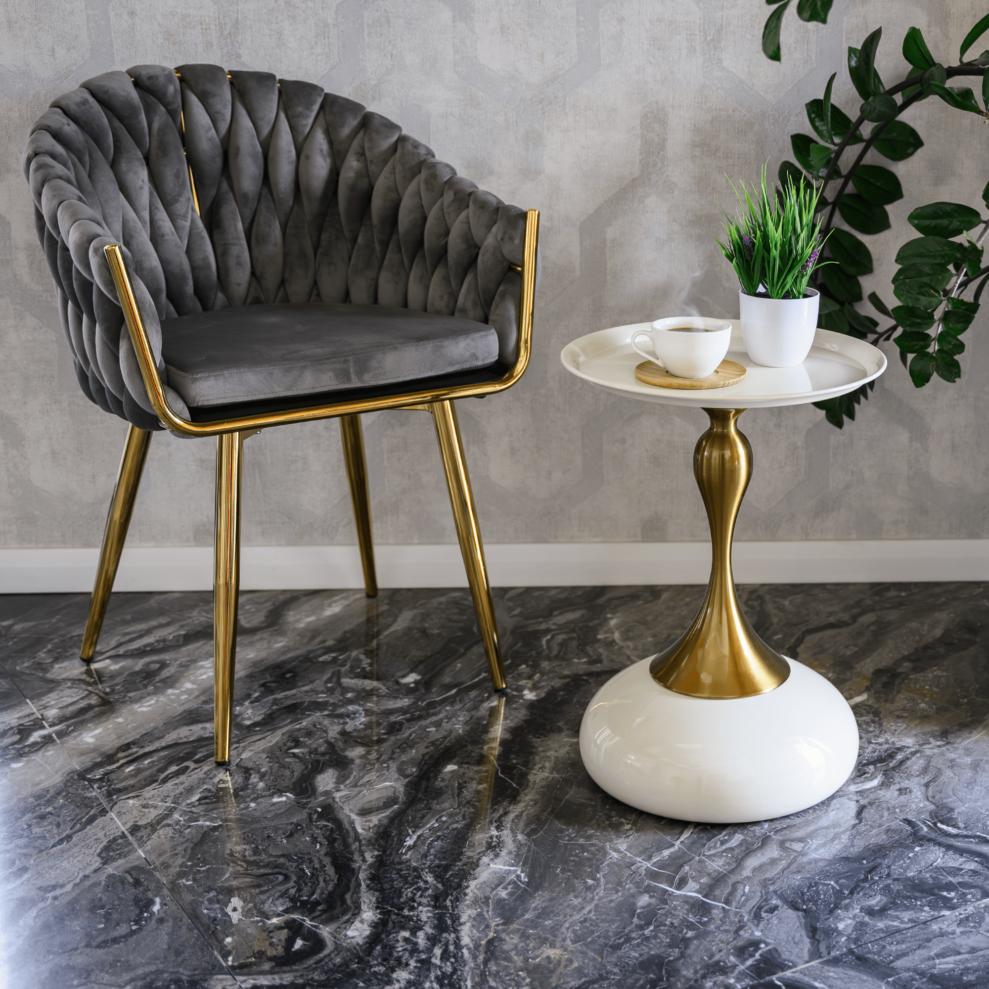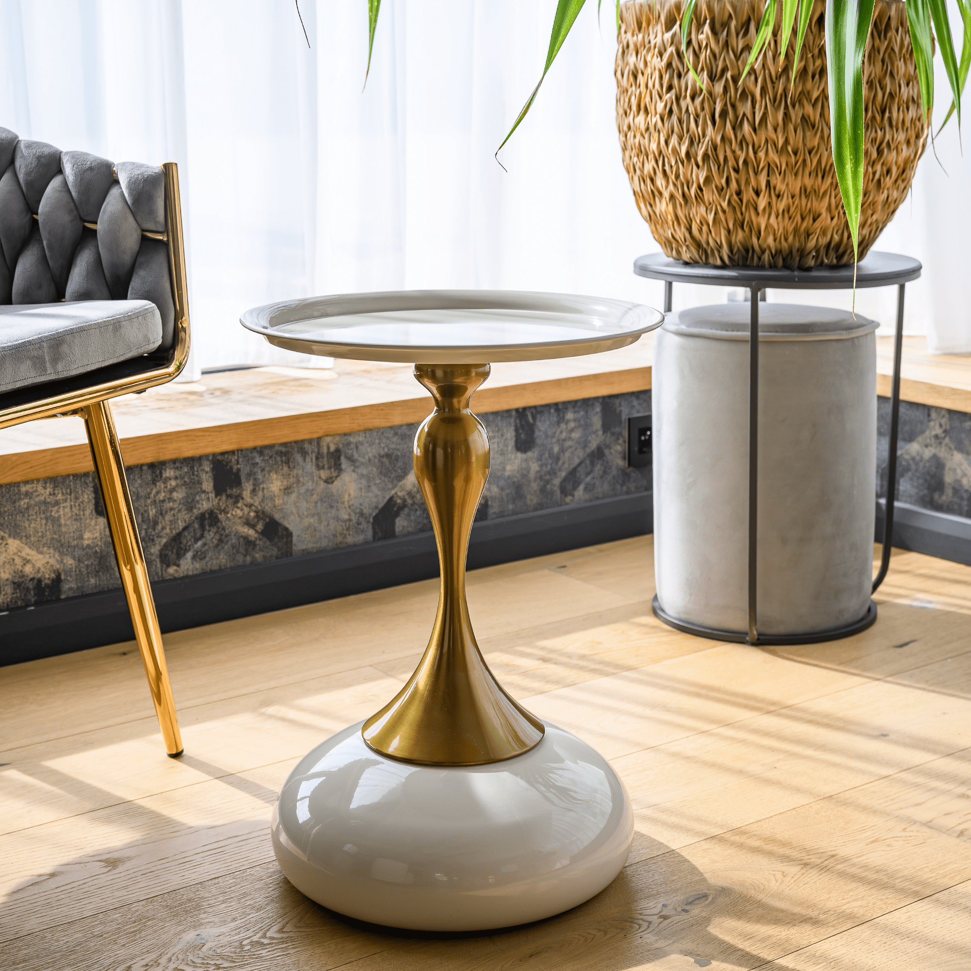 Príručný stolík, biela Ivory/zlatá, FEJ