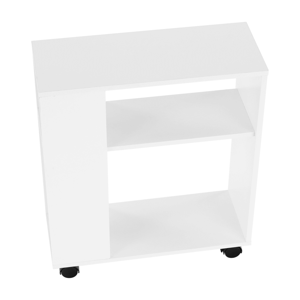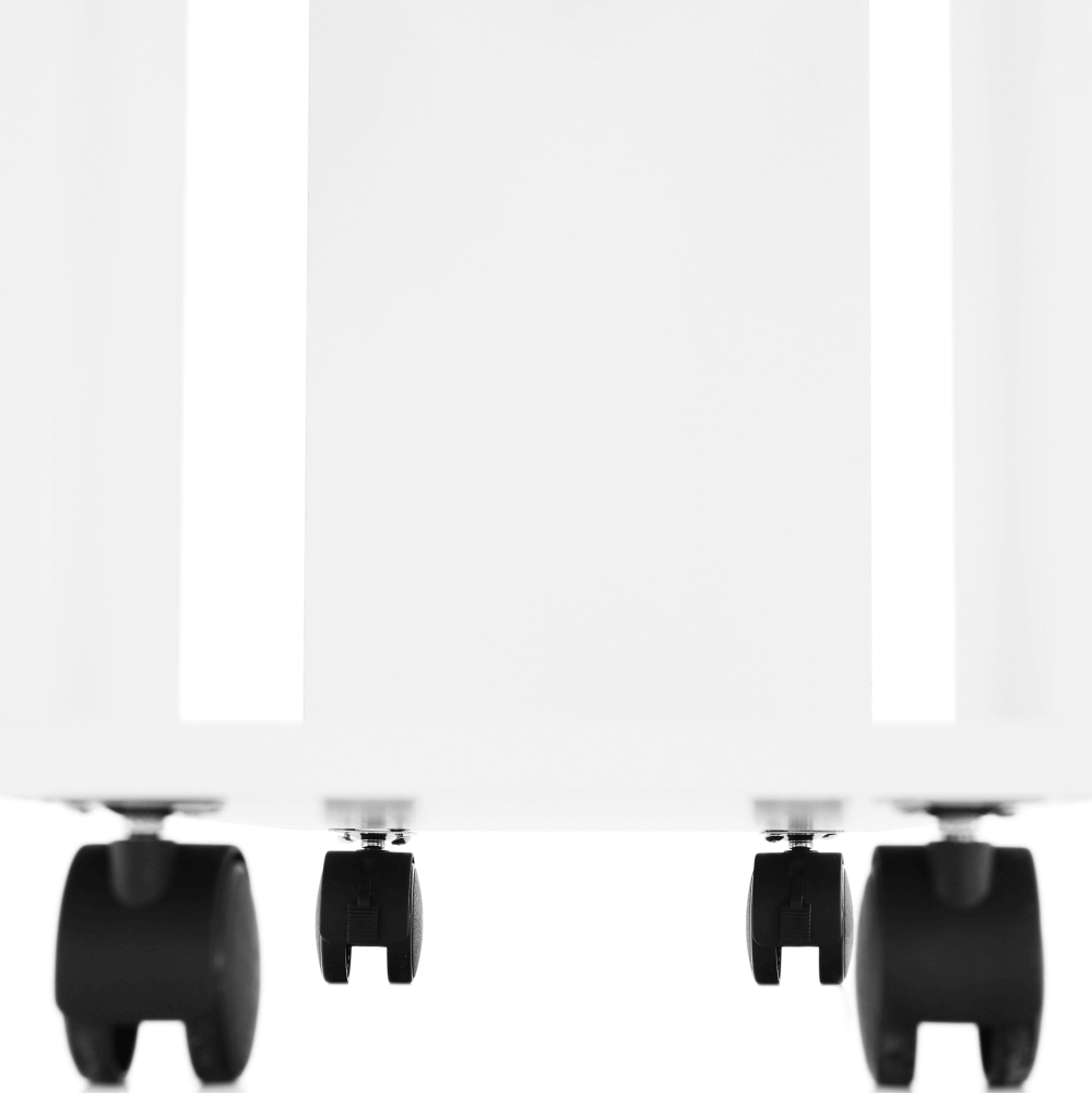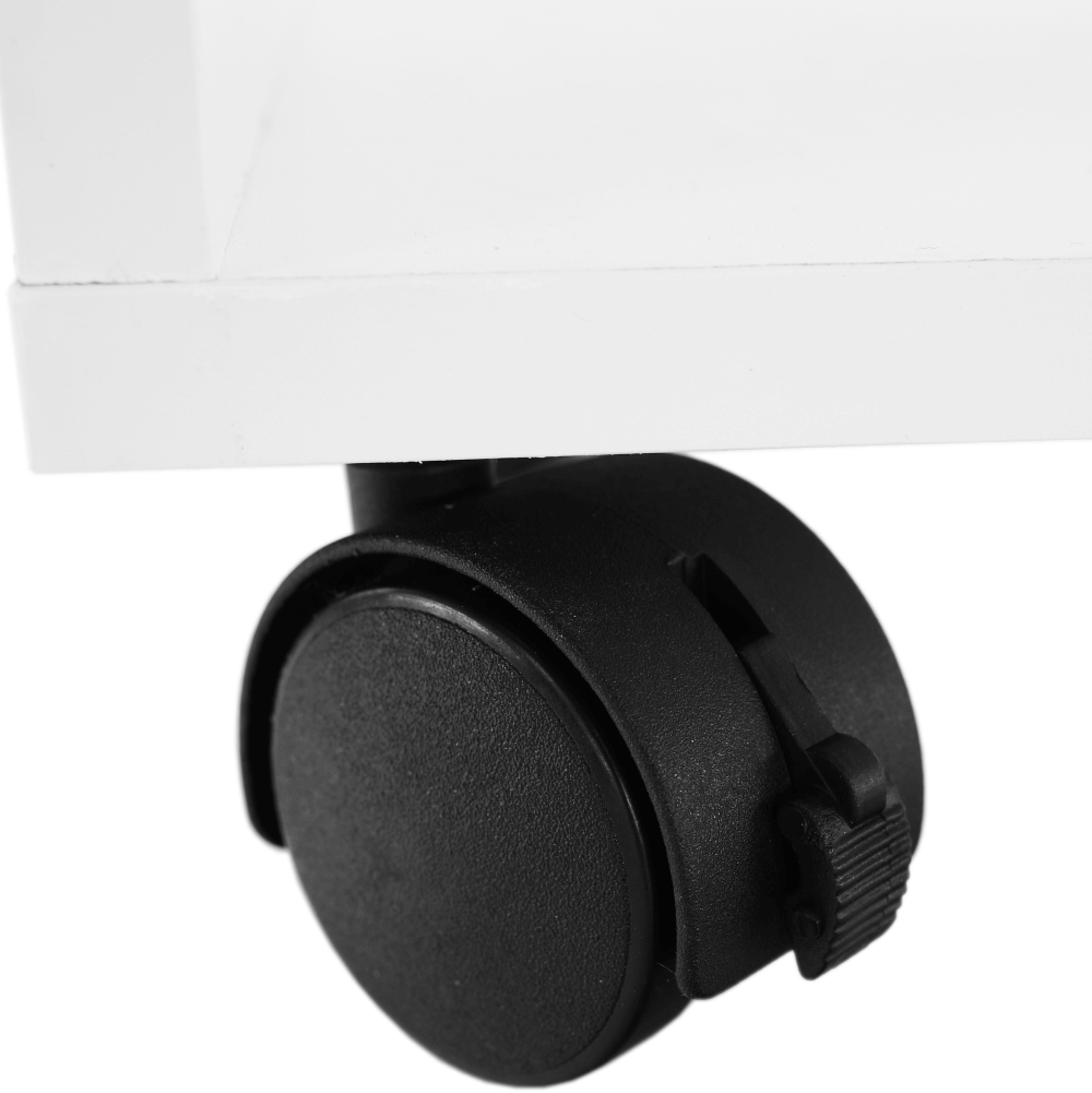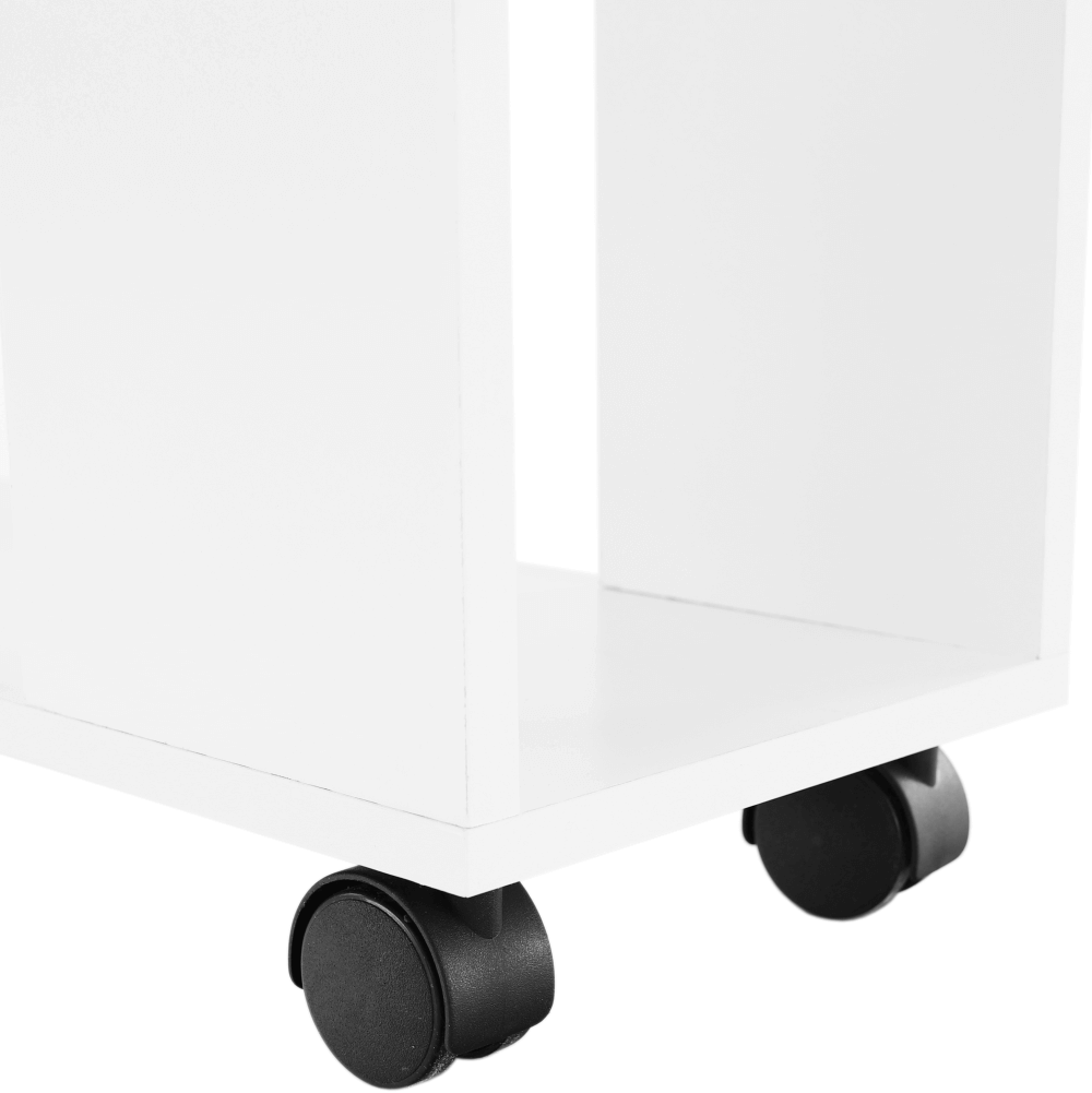 Príručný stolík s kolieskami v bielej farbe.