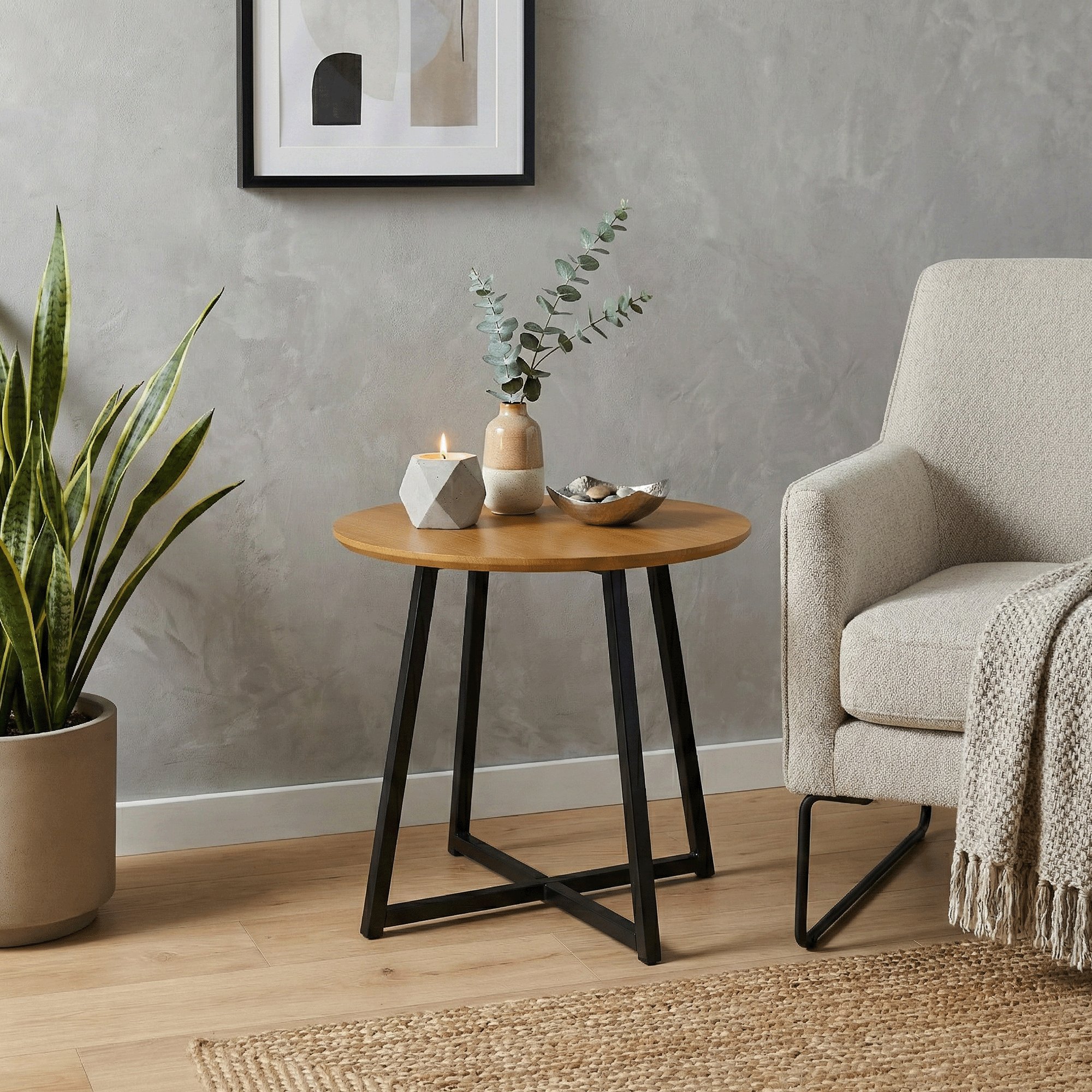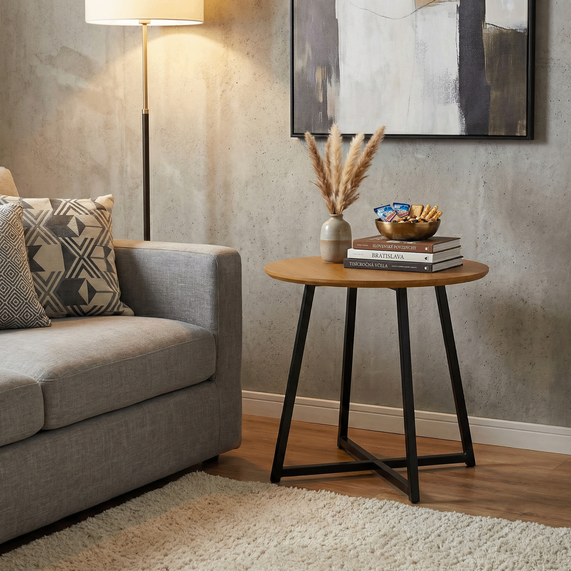Príručný stolík, dub/čierna, DELIK