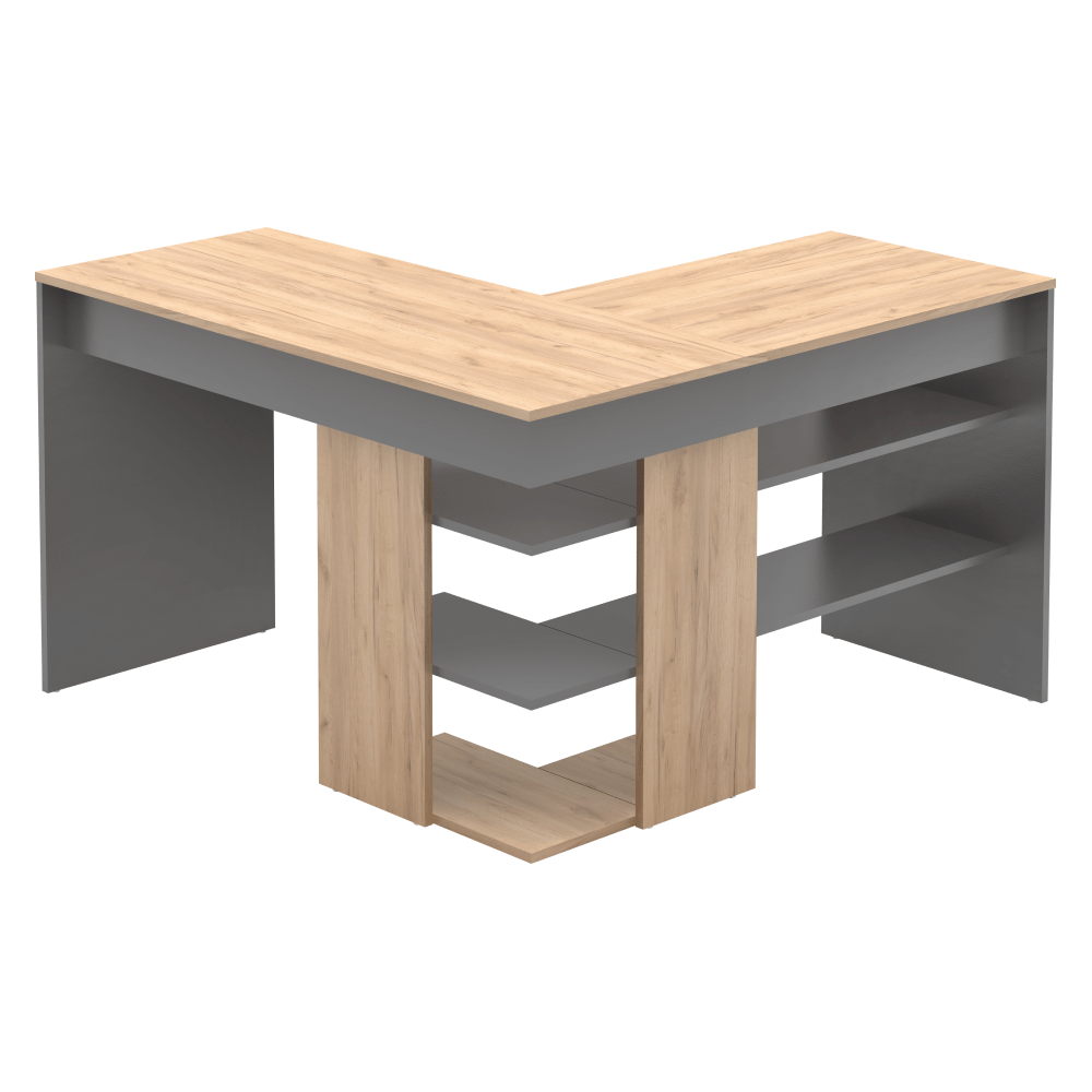 Rohový PC stôl, dub artisan/grafit, TAMARI