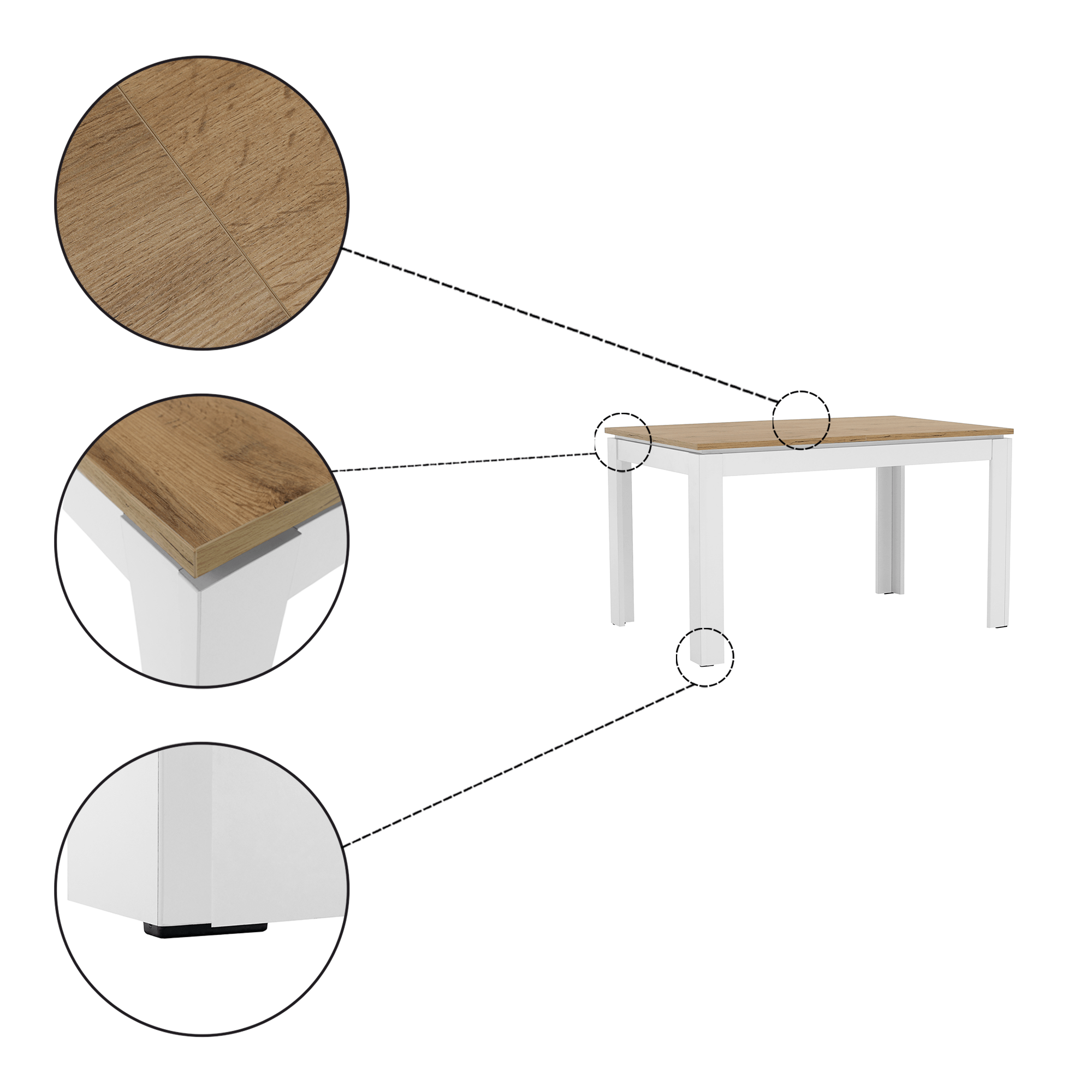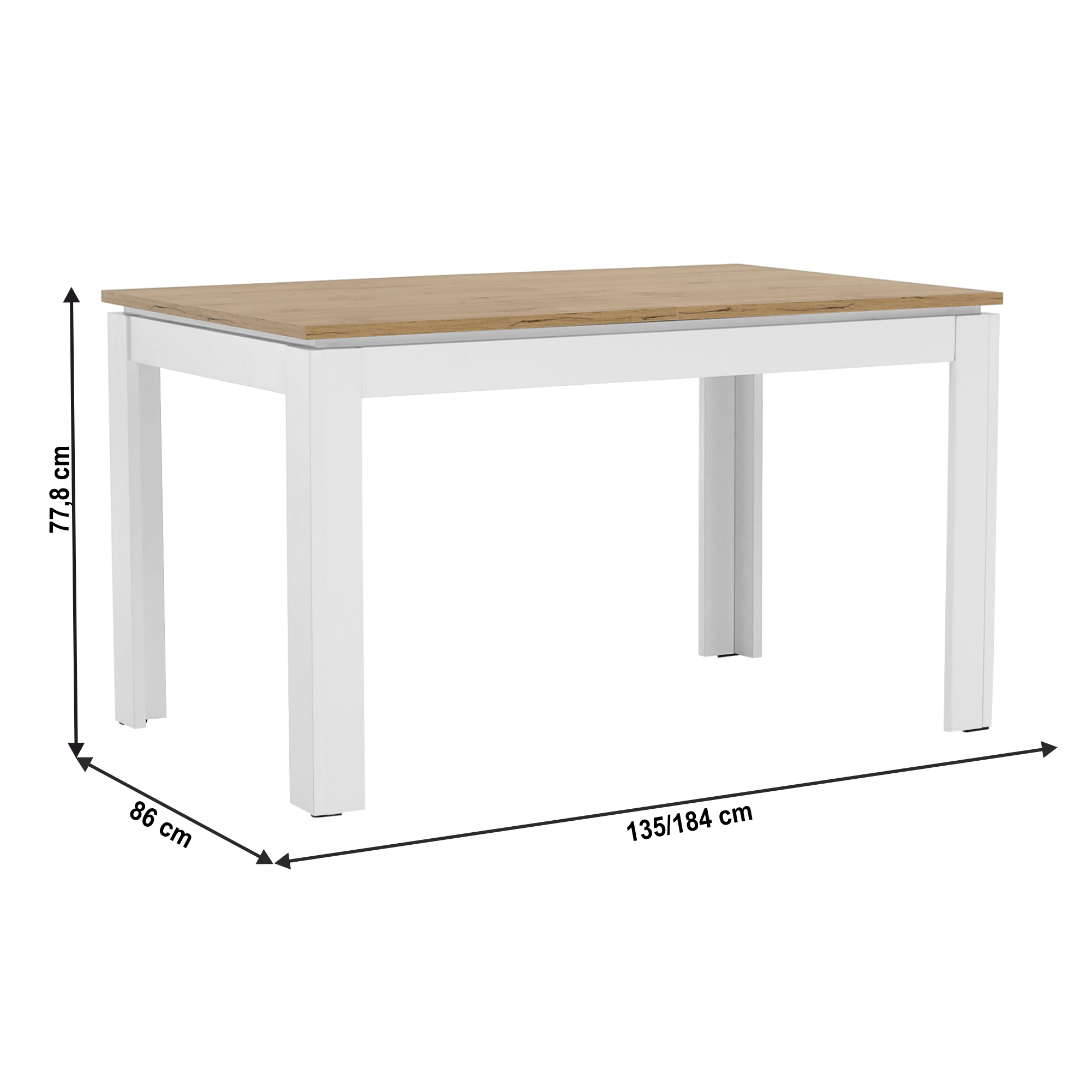 Rozkladací stôl, biela/dub wotan 135-184x86 cm, VILGO
