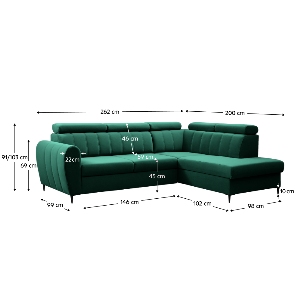 Rozkladacia sedacia súprava, smaragdová, pravá, KORIO L