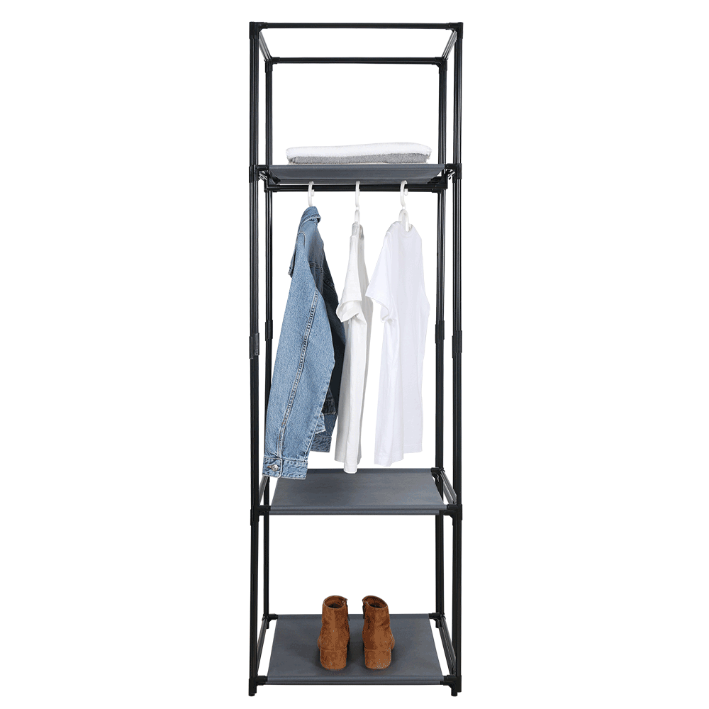 Šatníkový regál, kov/látka, čierna, ALBUS