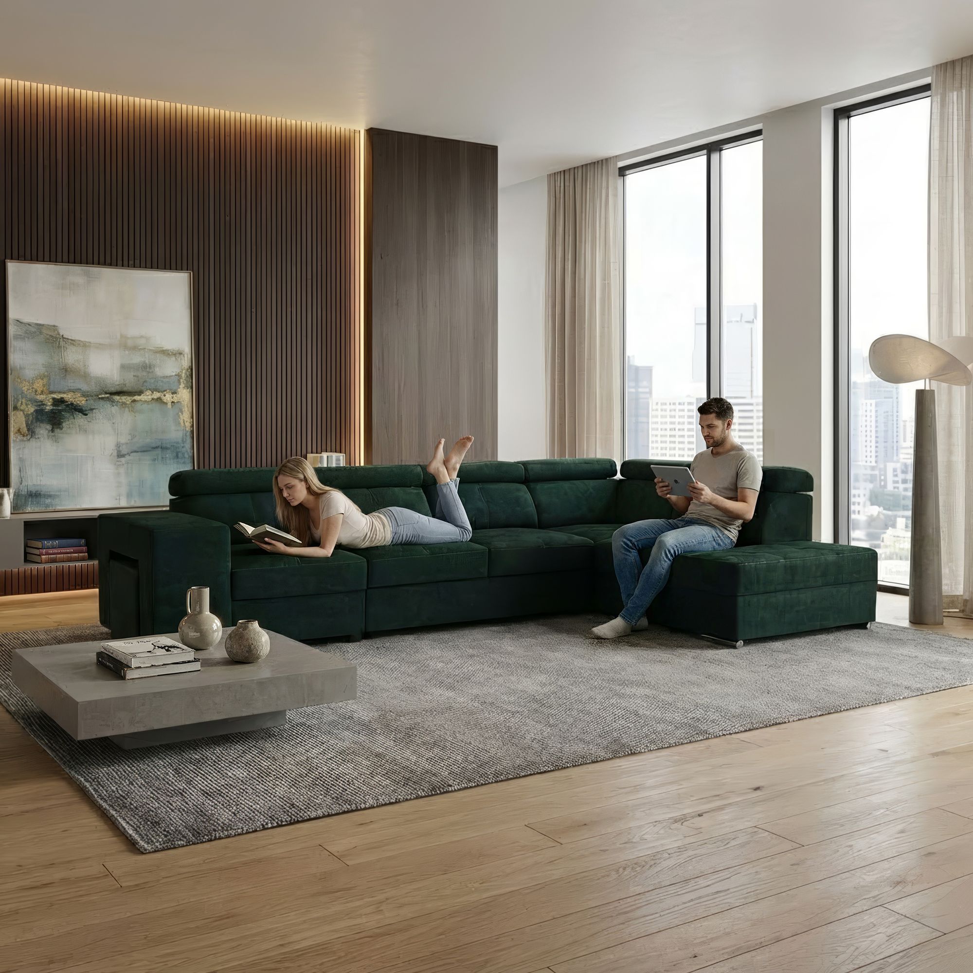 Sedacia súprava, smaragdová, pravá, MALAGA BIG