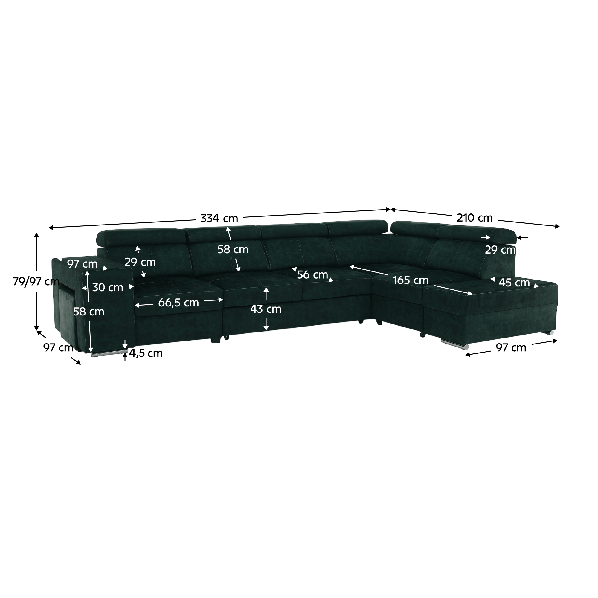 Rozmery (ŠxHxV): 334x210x79/97 cm