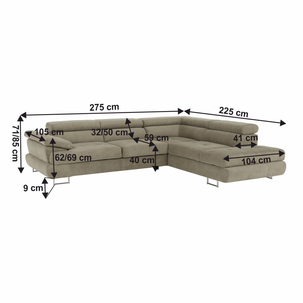 Rozmery (ŠxHxV): 275x225x71/85 cm.