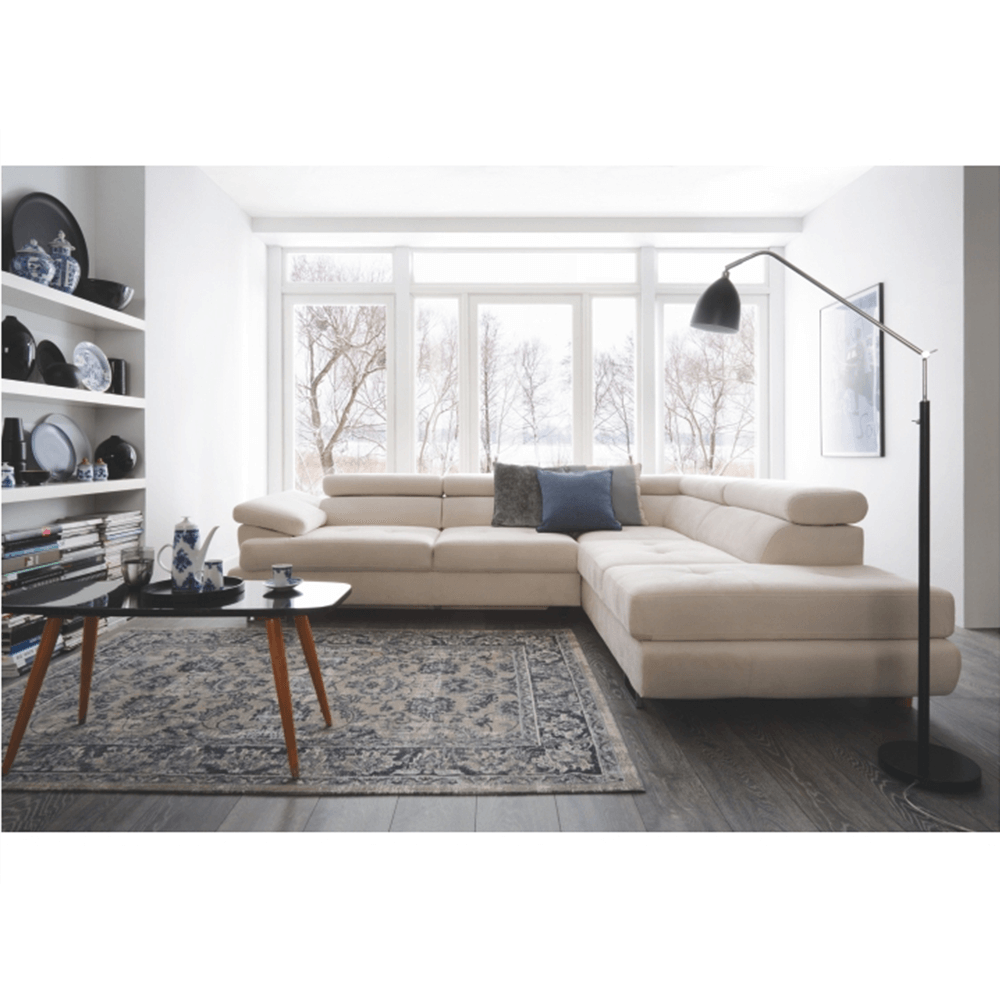 Sedacia súprava, svetlosivá, látka, pravá, BUTON P