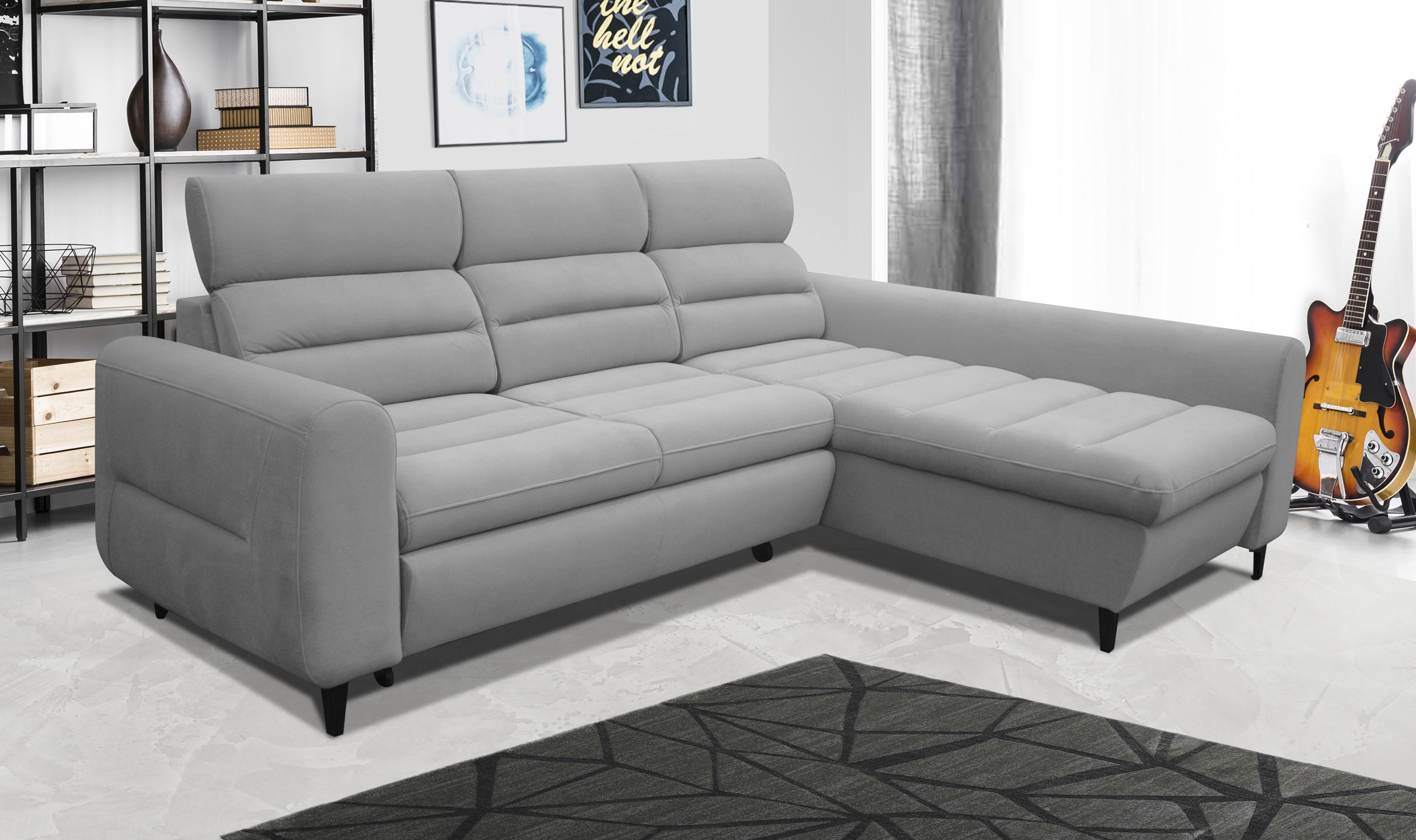 Luxusná sedacia súprava HUGO MINI je rohová sedacia súprava s vynikajúcou kvalitou spracovania. Sedacia súprava poskytuje komfort počas celej doby sedenia, ktoré zabezpečujú polohovateľné opierky hlavy. Úložný priestor a funkcia rozkladu je pri tejto sedacej súprave samozrejmosťou. Rozložením Vám vznikne plocha pre príležitostné spanie s rozmerom 120×210 cm. Vnútro sedacej súpravy je vyrobene z pružiny Falista a HR peny. Vďaka tejto výplni bude Vaše sedenie komfortnejšie a taktiež životnosť sedacej súpravy je oveľa dlhšia. Konštrukcia sedacej súpravy je vyrobená z masívu. Sedaciu súpravu je možné umiestniť aj do priestoru pretože je očalunená aj zo zadnej strany. Možnosť výberu pravého alebo ľavého prevedenia.