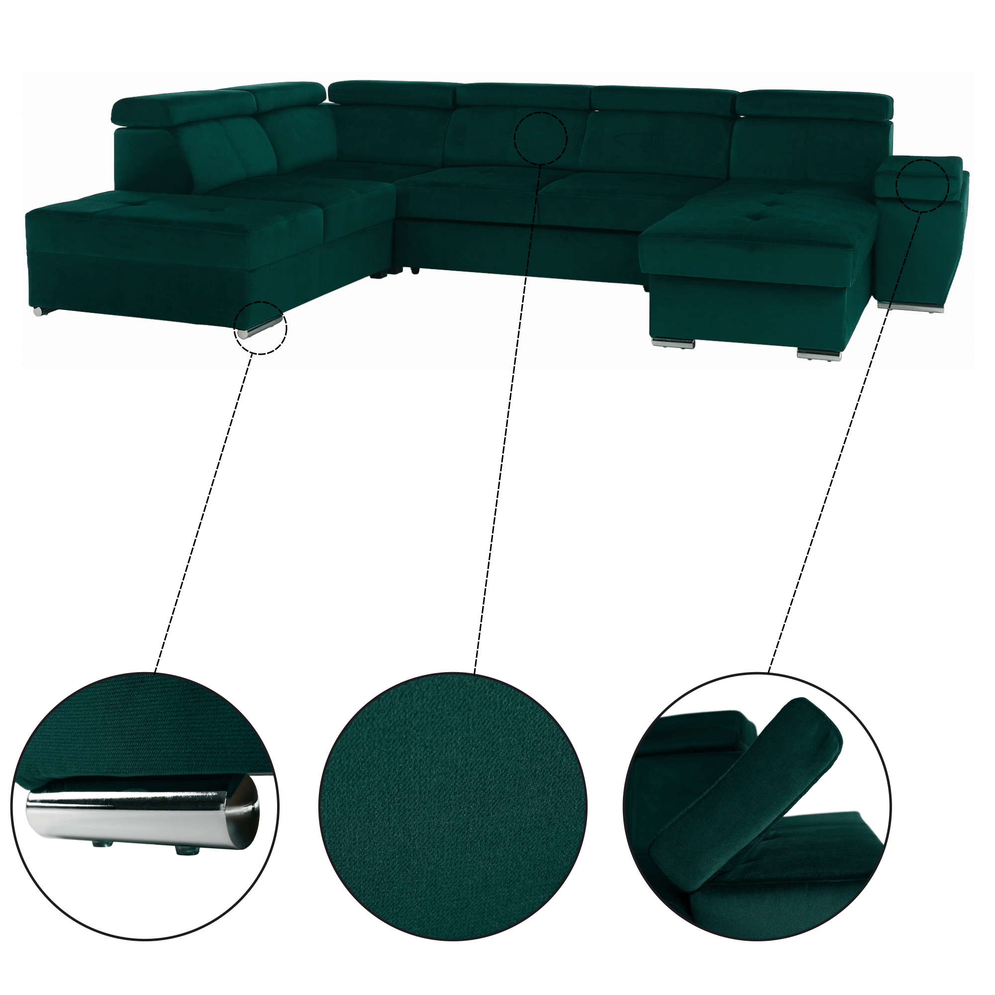 Sedacia súprava, smaragdová, pravá, LAMORA U