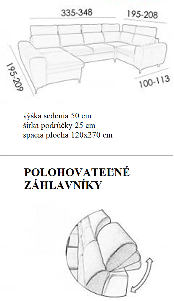 Luxusná sedacia súprava VEGAS PREMIUM je sedacia súprava v tvare U s vynikajúcou kvalitou spracovania. Sedacia súprava poskytuje komfort počas celej doby sedenia, ktoré zabezpečujú polohovateľné opierky hlavy. Úložný priestor a funkcia rozkladu je pri tejto sedacej súprave samozrejmosťou. Rozložením Vám vznikne plocha pre príležitostné spanie s rozmerom 120×200 cm. Vnútro sedacej súpravy je vyrobene z pružiny Falista a HR peny. Vďaka tejto výplni bude Vaše sedenie komfortnejšie a taktiež životnosť sedacej súpravy je oveľa dlhšia. Konštrukcia sedacej súpravy je vyrobená z masívu. Sedaciu súpravu je možné umiestniť aj do priestoru pretože je očalunená aj zo zadnej strany. Možnosť výberu pravého alebo ľavého prevedenia.
