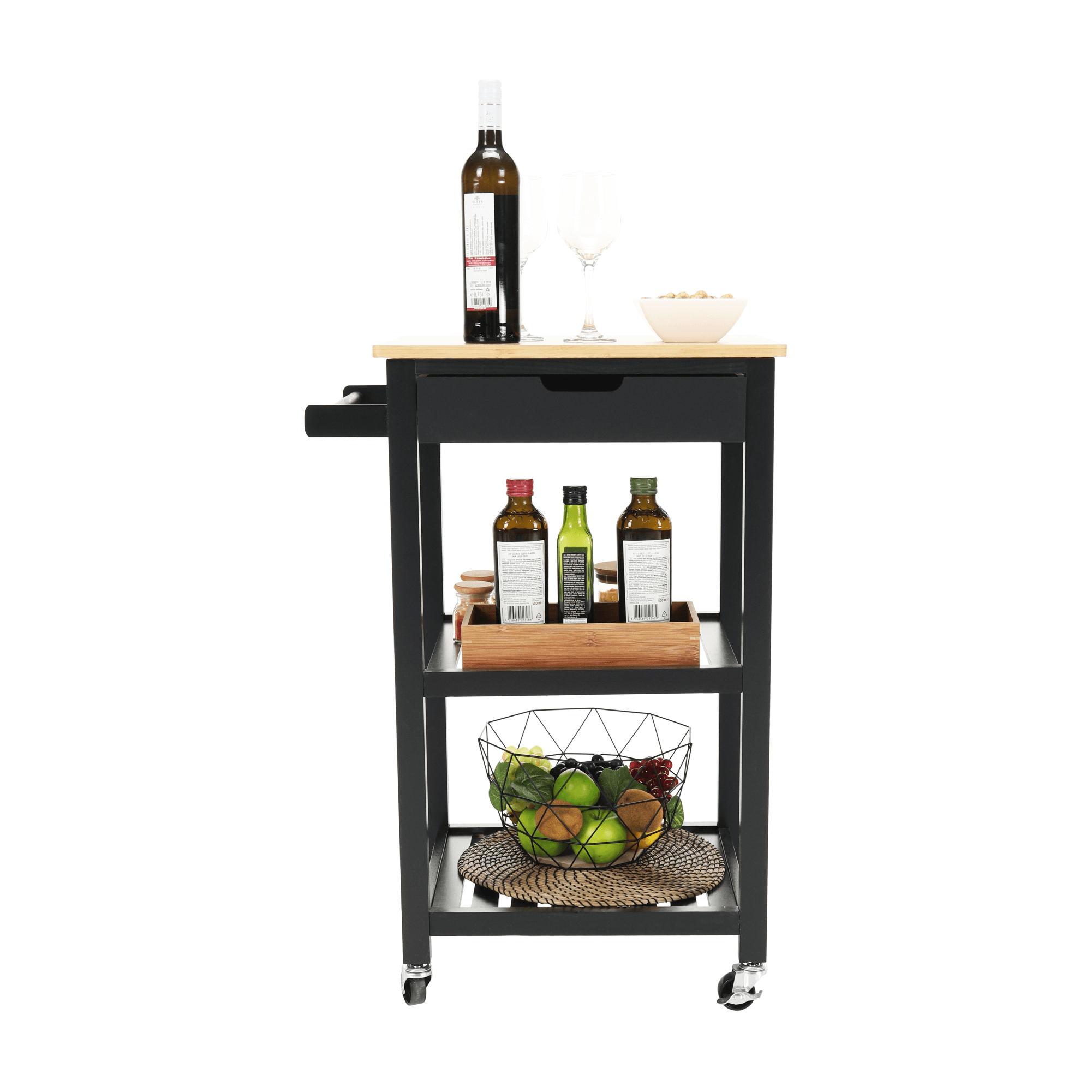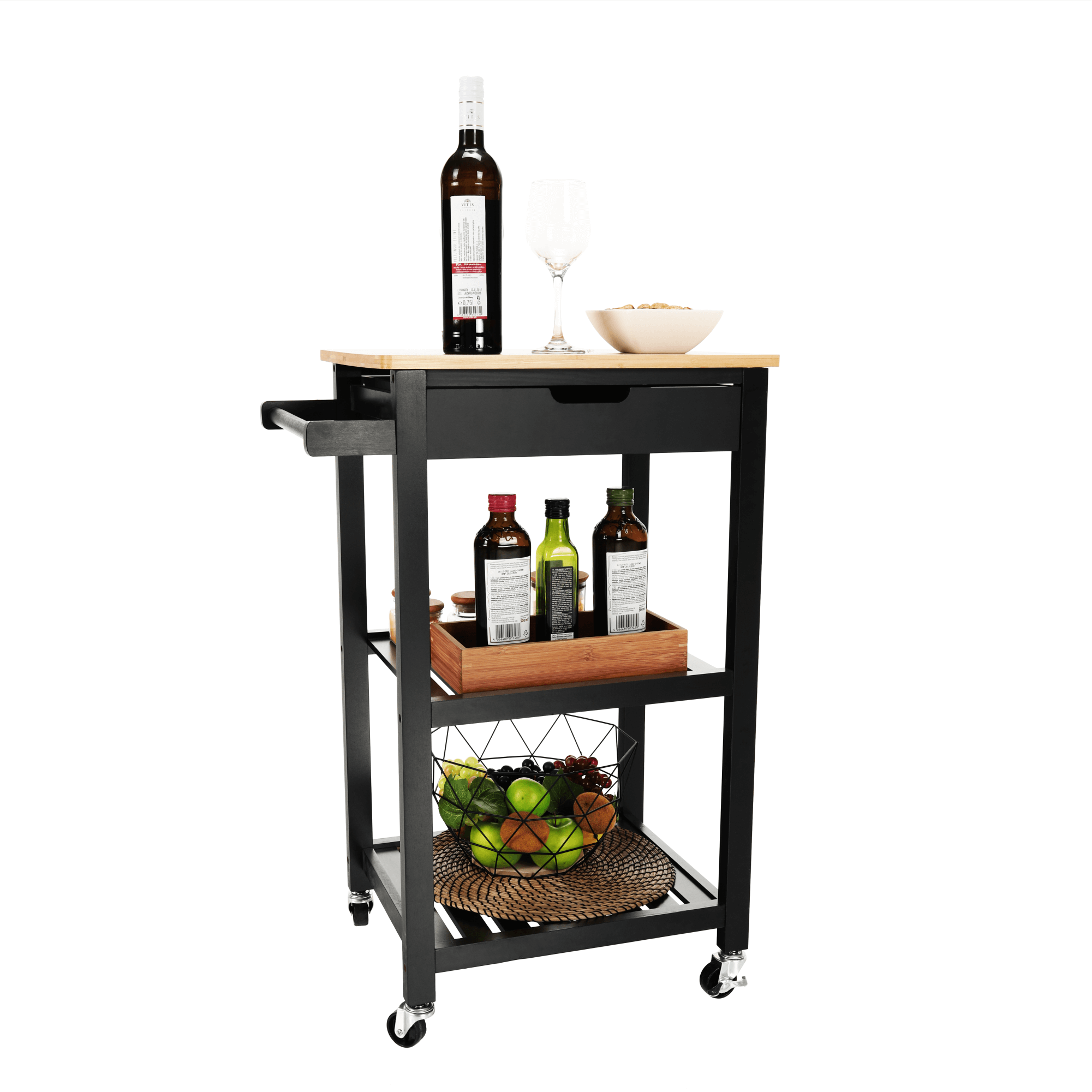 Servírovací vozík, prírodná/čierna, ARETE