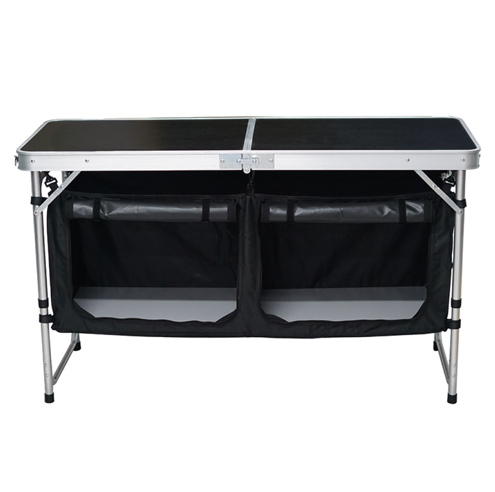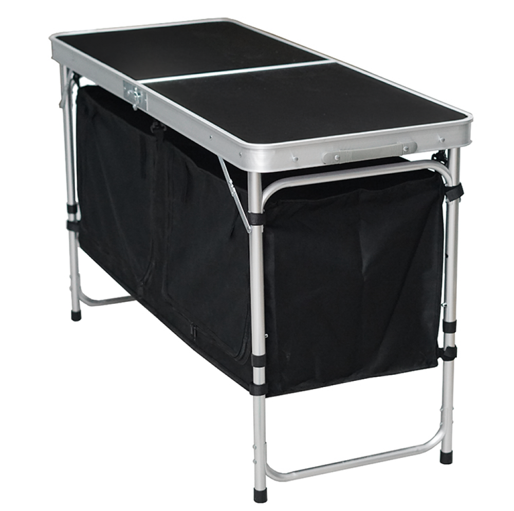 Skladací kempingový stôl s organizérom, 120 cm, hliník/MDF, KEPI TYP 3