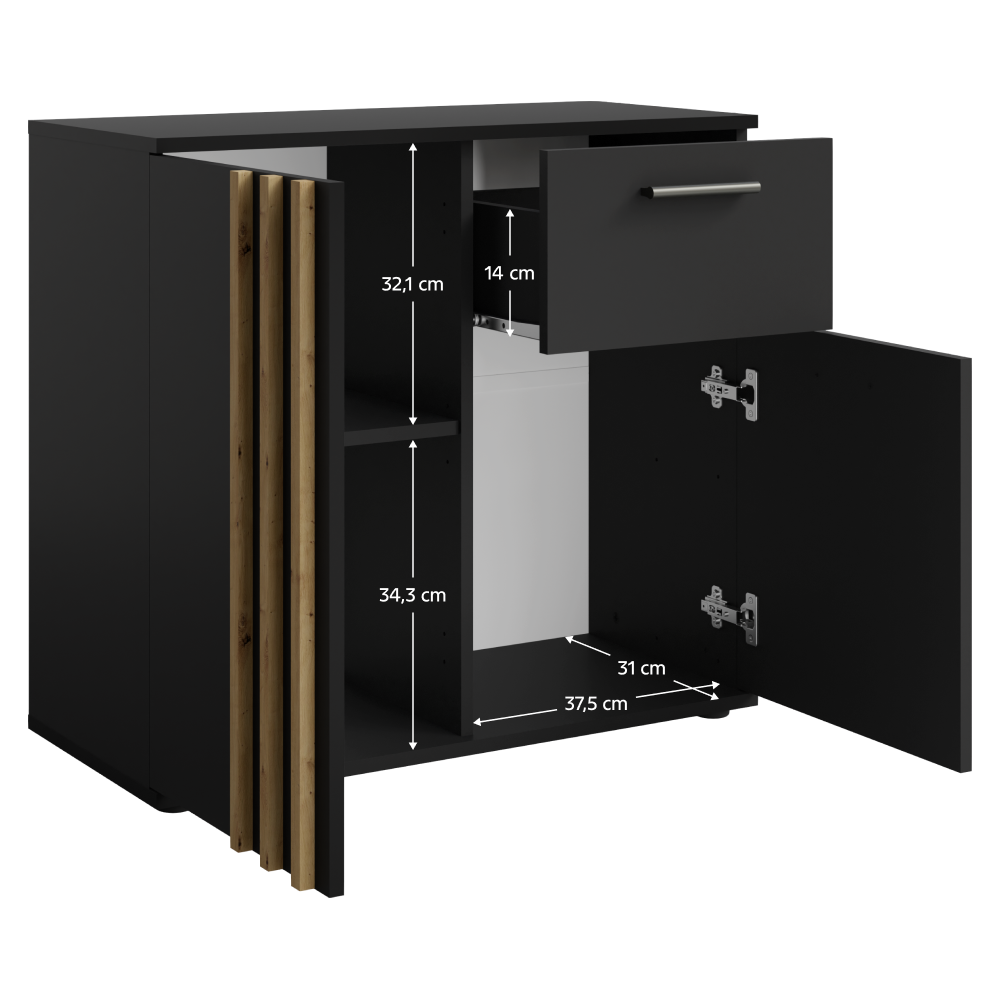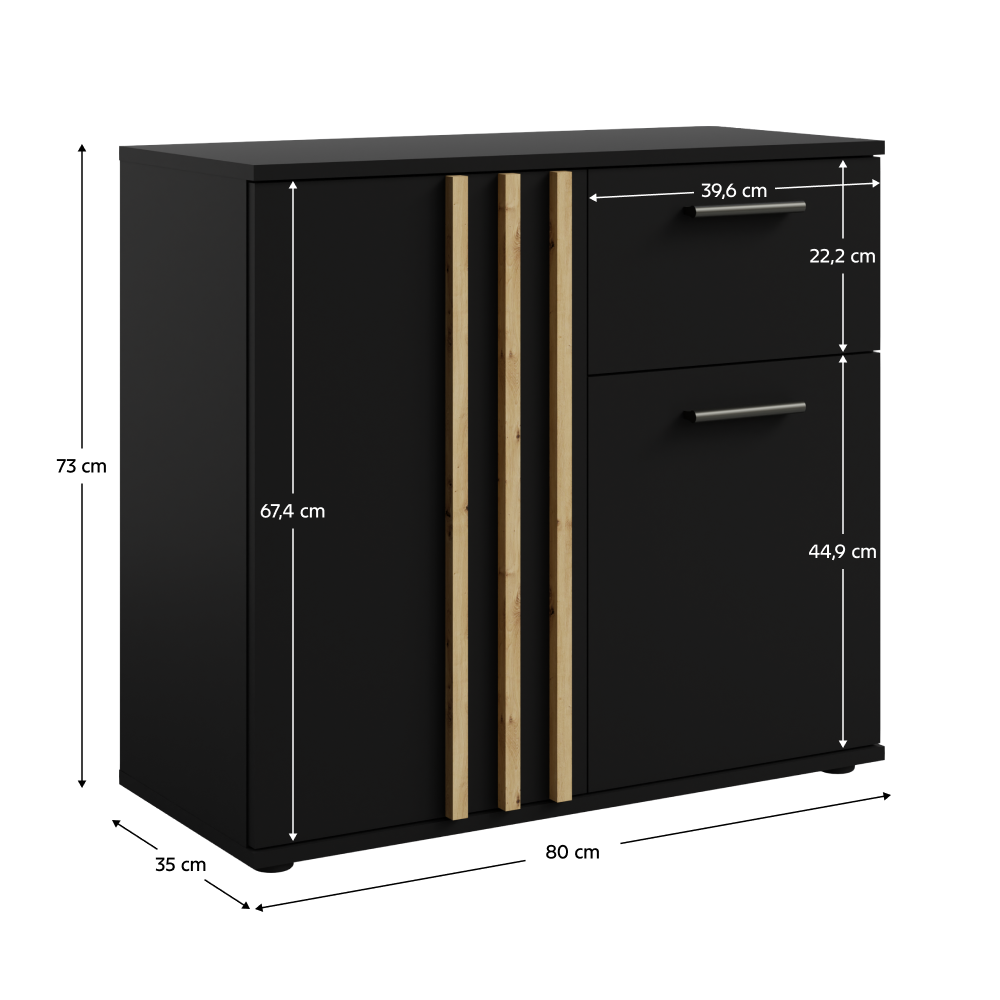 Komoda, 2D1S, čierna/dub artisan, TOLIS TYP 4